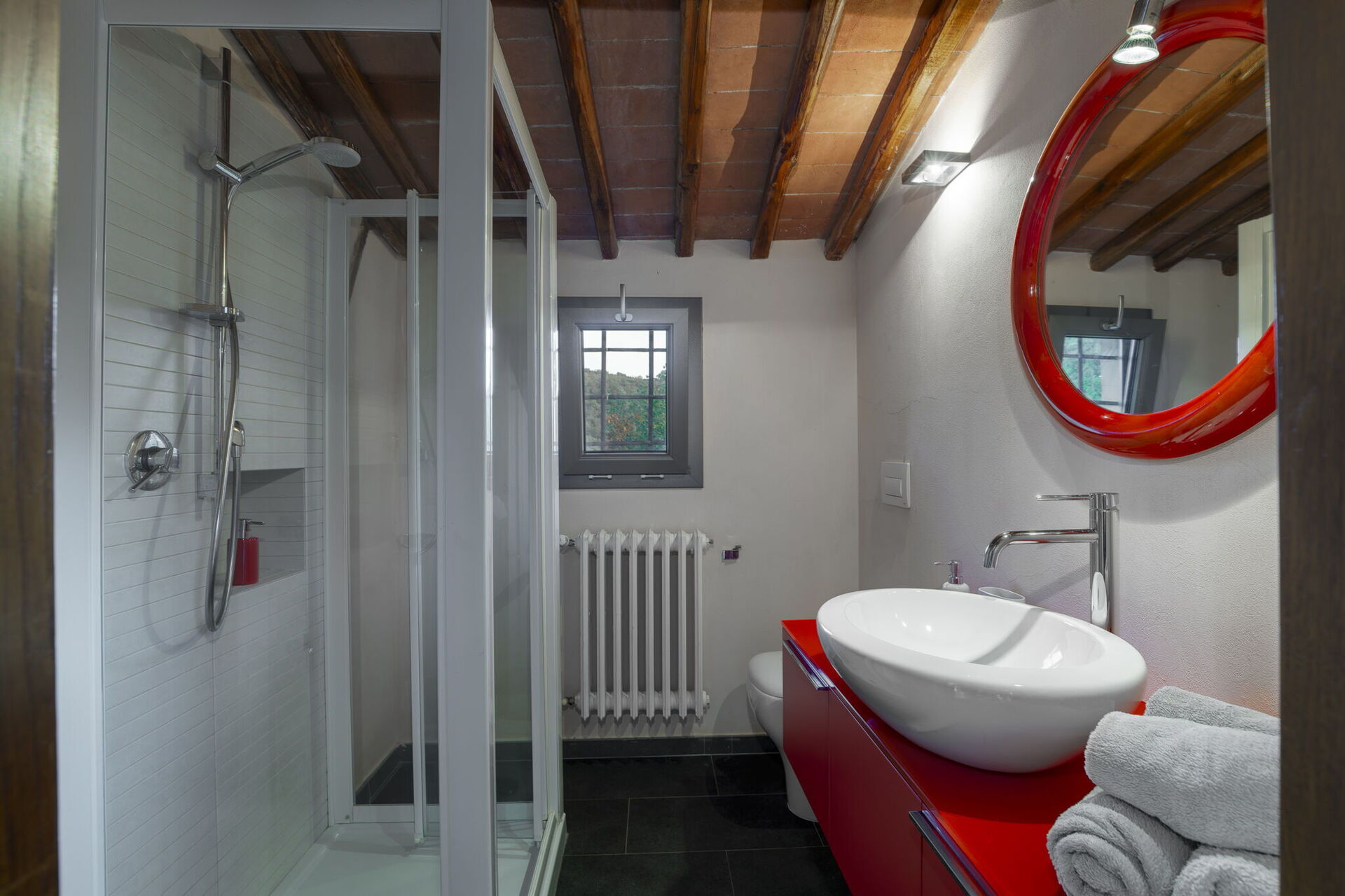 We (4persons) spent two wonderful relaxing weeks in this beautiful, peaceful place of soul and power in the middle of the Tuscan hills with a fantastic view of the Chianti landscape! Absolute peace and silence, a large garden with many different places, seating and lounging options, a nice pool area, pure relaxation in an old farmer house with a lot of charm and atmosphere. Unique! The beauty of this place is impressive and incomparable. The house is very tastefully decorated, old and new style perfectly combined. The rooms are all very nice and differently furnished, the beds very comfortable, we slept wonderfully. The kitchen is very well and exceptionally equipped and it is great joy to cook there. Everything you could wish for you will find there. Nothing is missing. The environment inspired us a lot to be creative, to paint and to play games together.