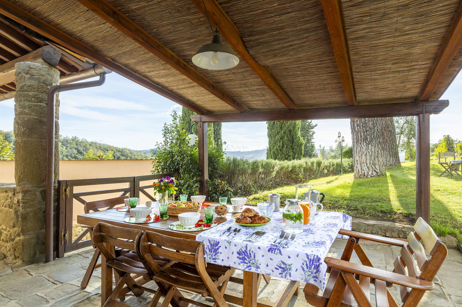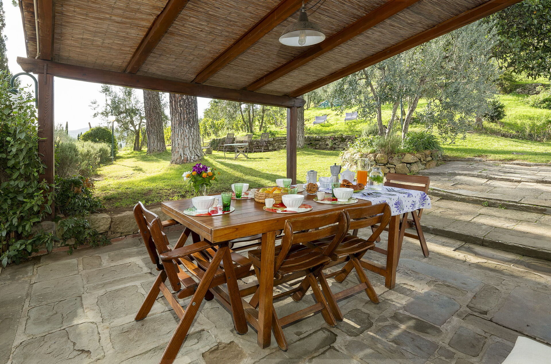 The Villa is lovely,rustic and charming and is set in amongst olive trees and vineyards. Great spacious grounds for our use.