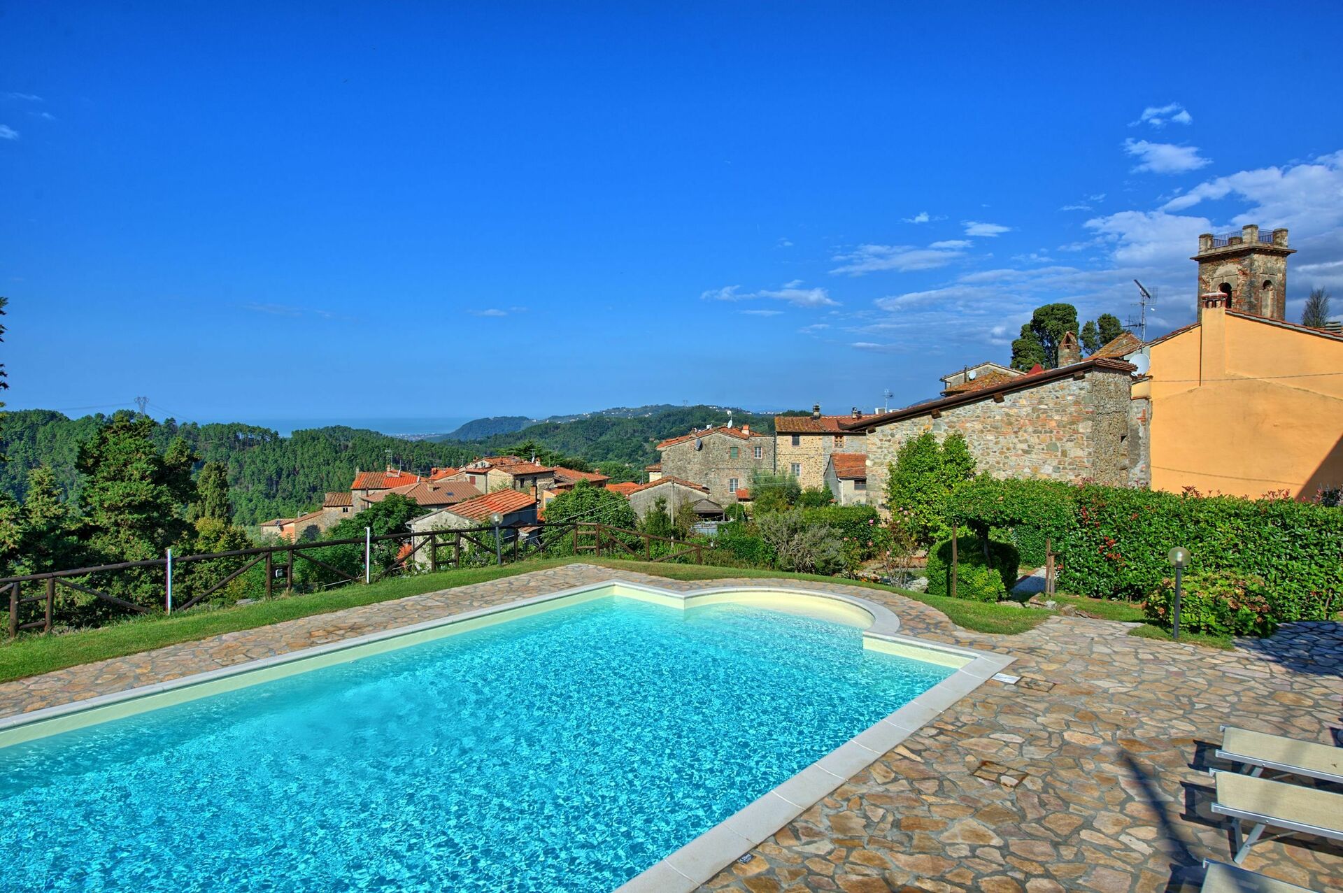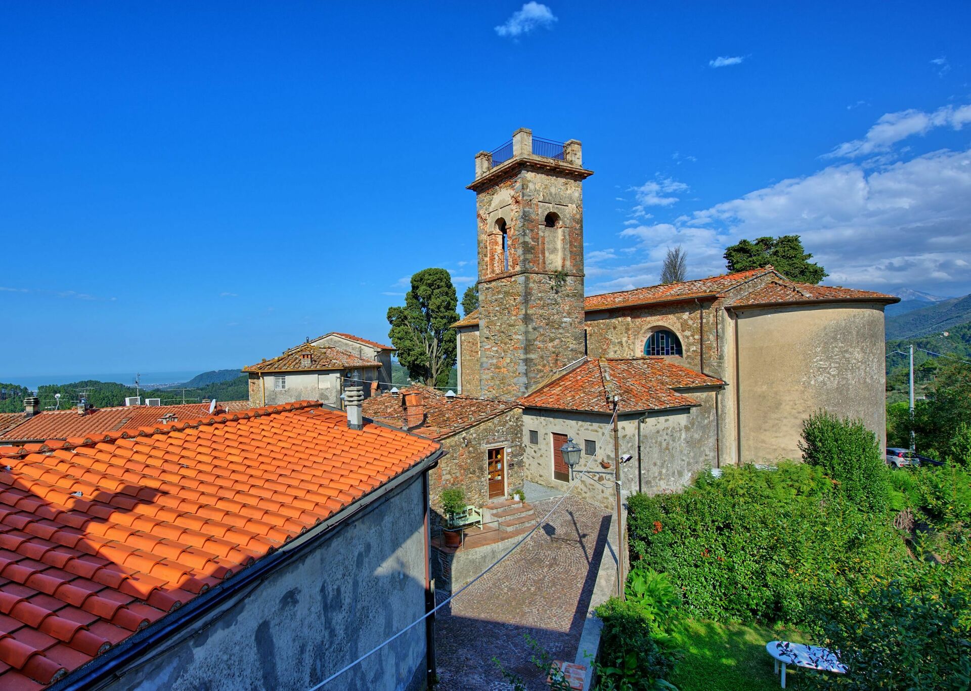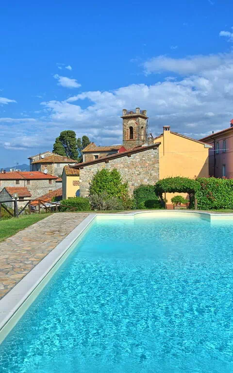 De 8 leilighetene som utgjør denne eiendommen ligger i en sjarmerende landsby på åsene mellom Lucca og Versilia-kysten, og kan dateres tilbake til 1400-tallet. Leiligheten ligger i et pent område av Toscana, og byr på en vakker panoramautsikt over det sjarmerende omkringliggende landskapet. Fra eiendommen kan man også se den toskansk kystlinjen med øyer. Eiendommen er et perfekt utgangspunkt for å oppleve vakker natur, historiske steder, samt mat og vin.