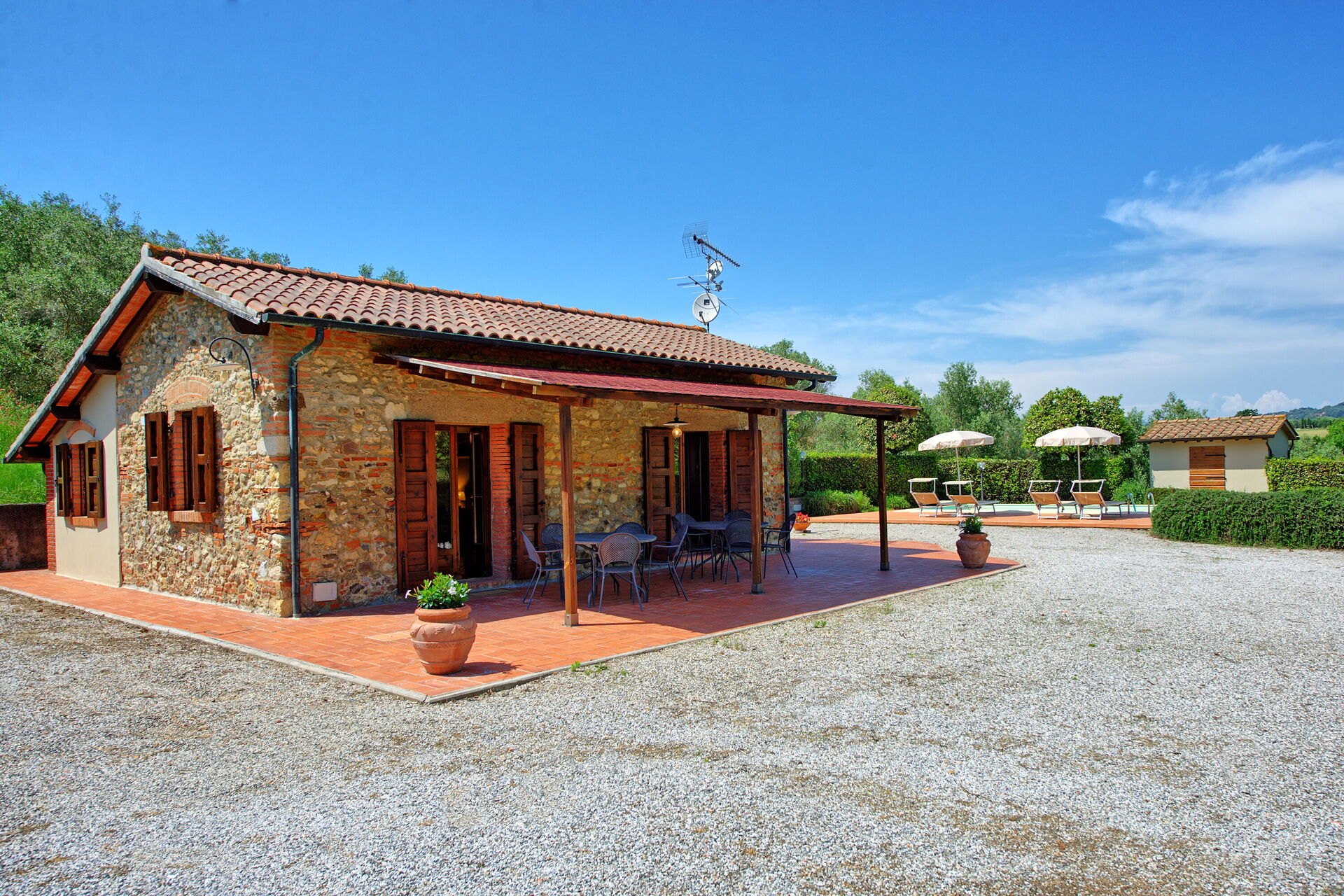 Cuccardino har et vakkert basseng, perfekt for en avslappende ferie sammen med familie og venner. Hagen er romslig og utstyrt med grillplass som er perfekt for utendørs måltider. En nydelig peis gjør atmosfæren varmere og mer behagelig på kalde dager.Huset er komfortabelt og enkelt dekorert.