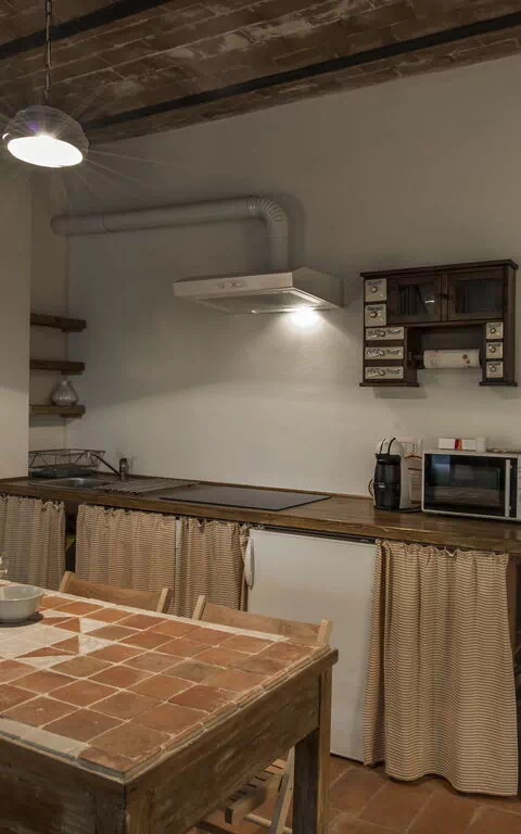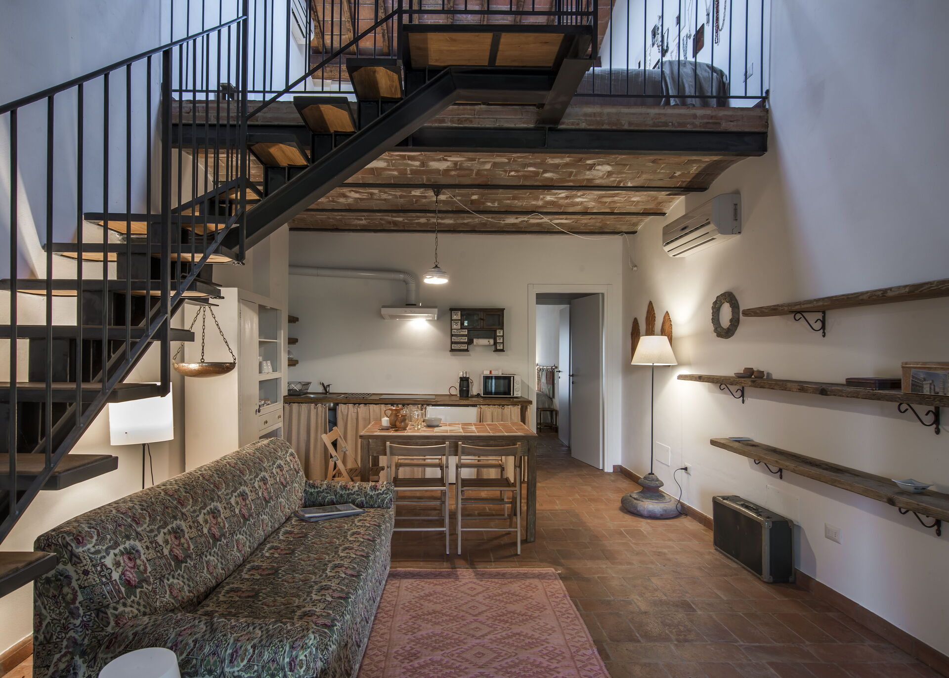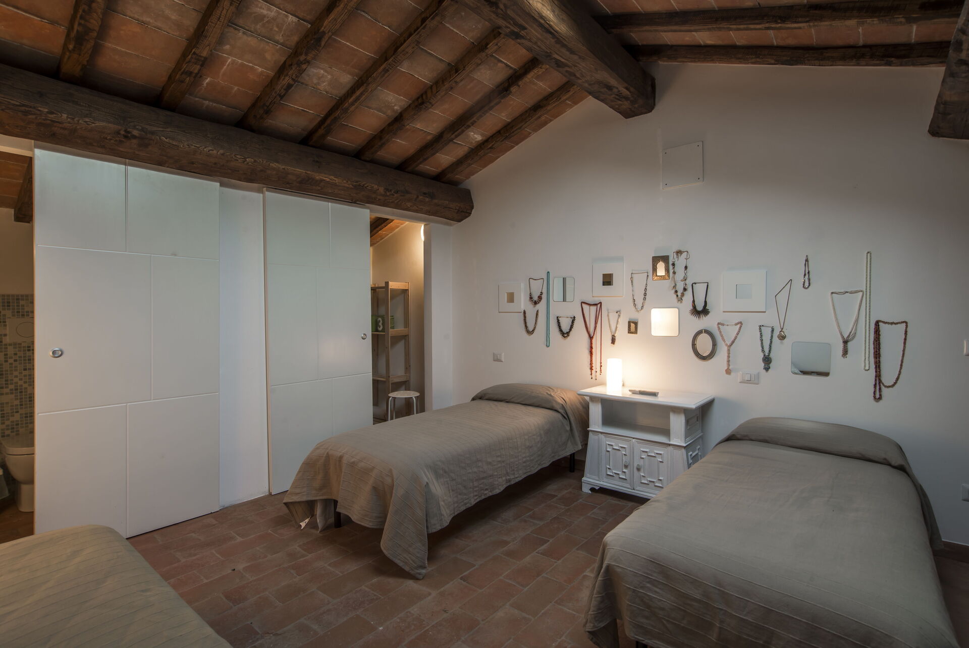 Stor stue med oppholdsrom (med ekstra dobbel sovesofa på forespørsel) og tilgang til hems med dobbeltseng (kan gjøres om til 2 enkeltsenger på forespørsel) og en enkeltseng og bad med dusj; spiseplass med kjøkken (oppvaskmaskin, kjøleskap, induksjonstopp, mikrobølgeovn, kaffemaskin, vifte), 1 dobbeltrom, bad med dusj.