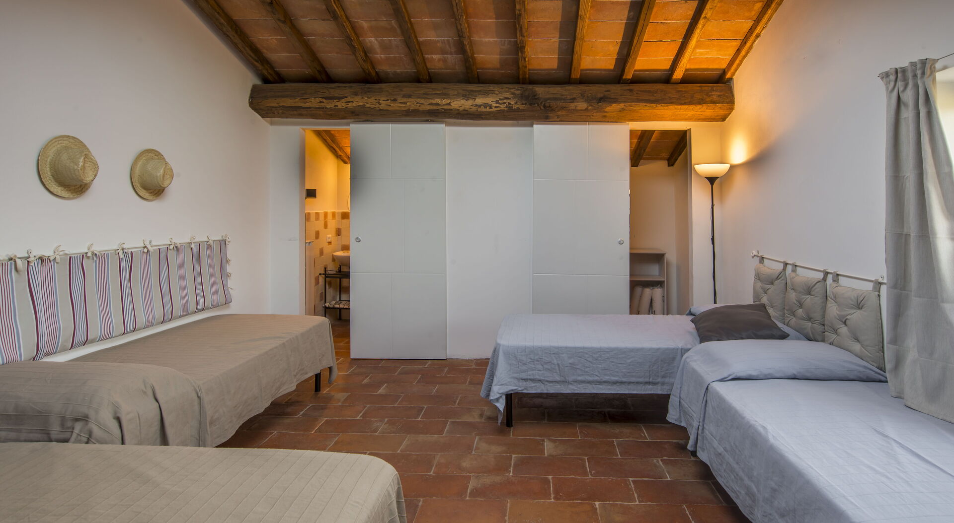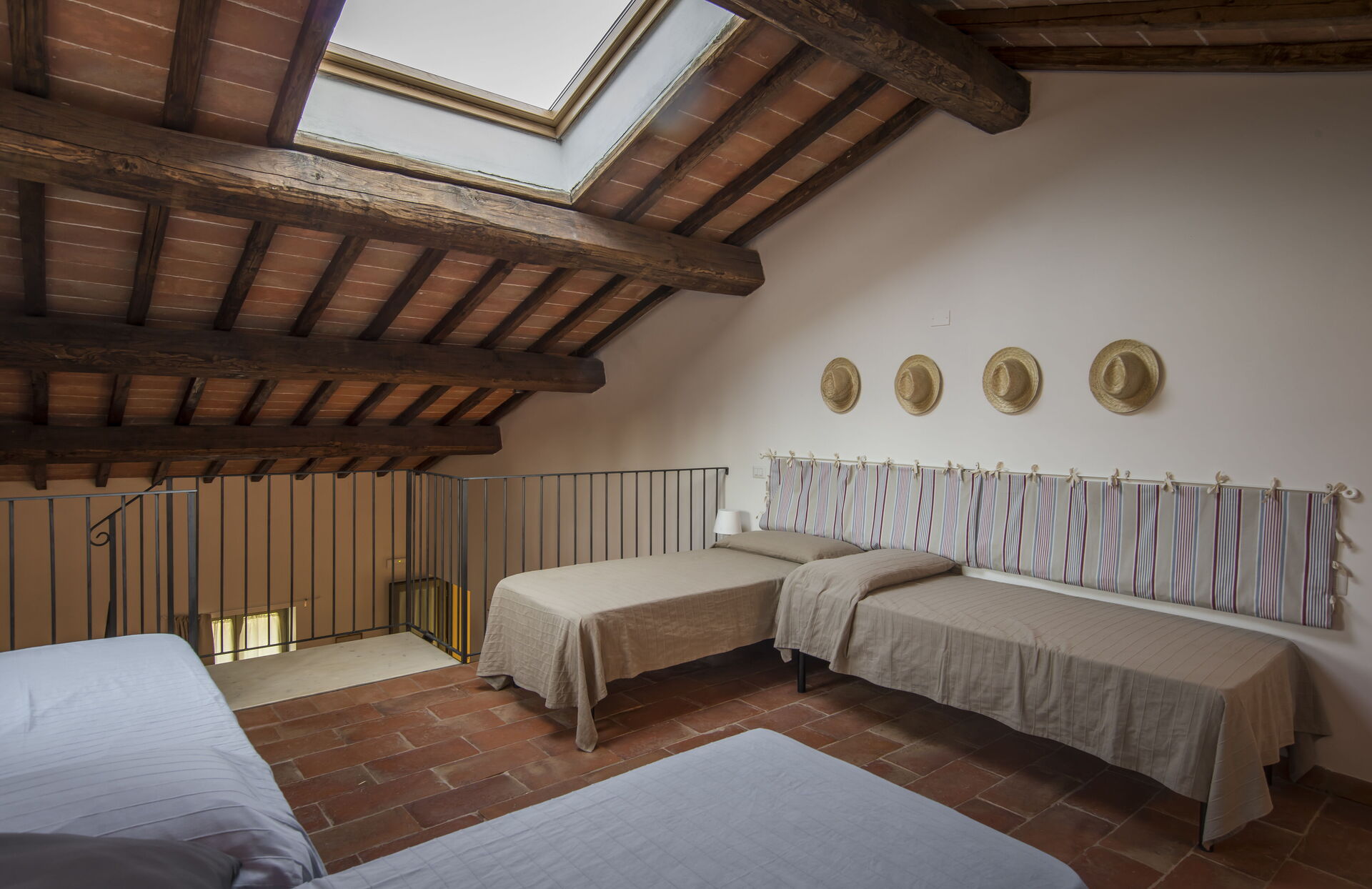 Stor stue med oppholdsrom (med ekstra dobbel sovesofa på forespørsel) og tilgang til en hems med soverom med 4 enkeltsenger og bad med dusj; spiseplass med kjøkken (oppvaskmaskin, stekeovn, kjøleskap, induksjonstopp, mikrobølgeovn, kaffemaskin, vifte), 1 dobbeltrom, bad med dusj.