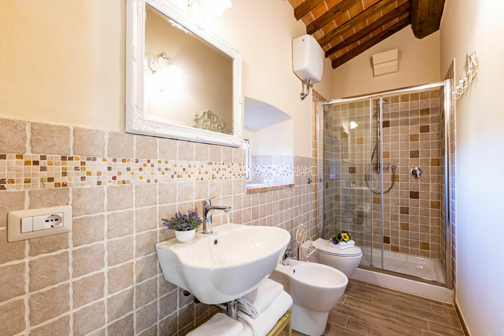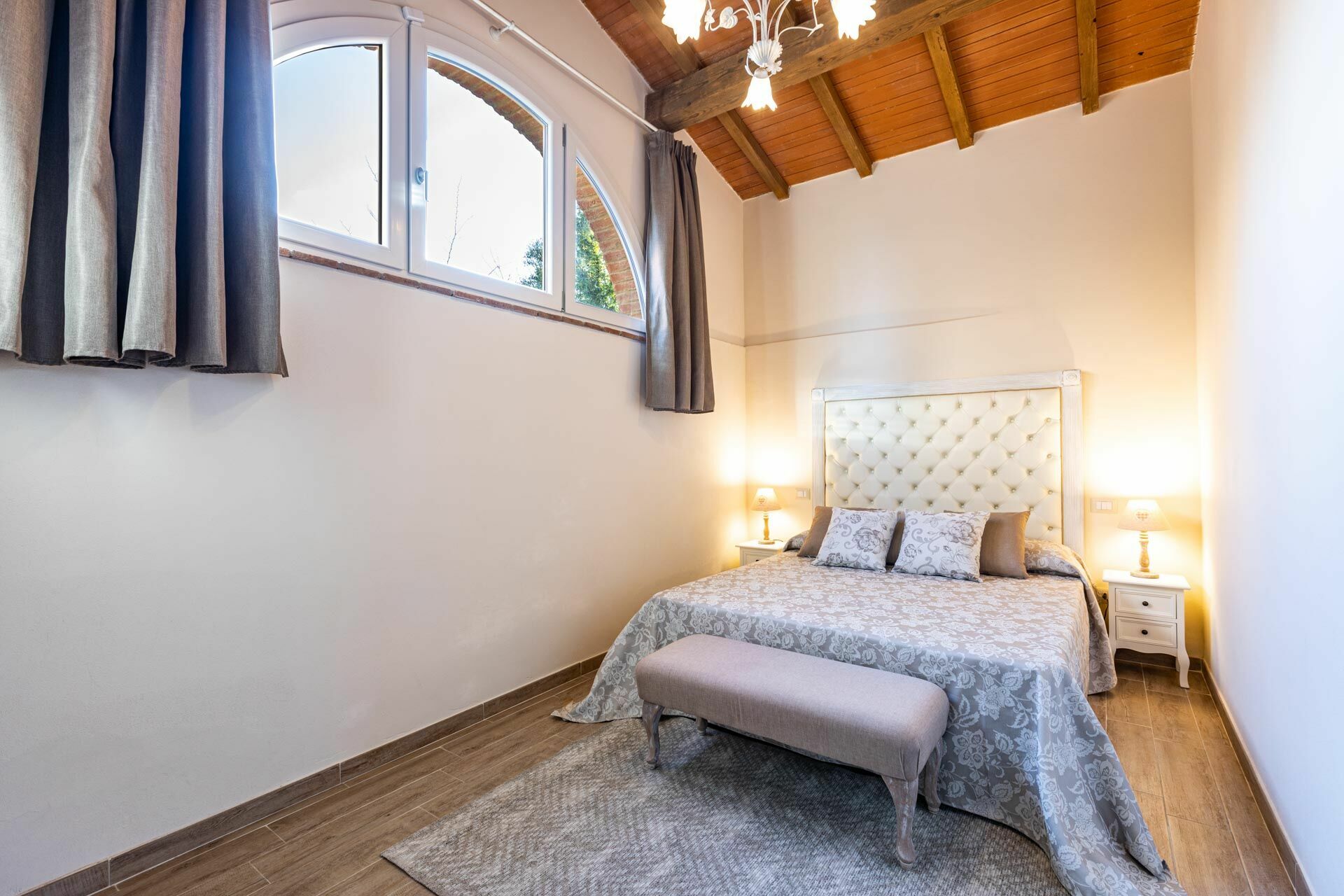 Feriehuset er innredet i toskansk landsstil, med stilfullt interiør og kan innkvartere opptil 10 personer. Eiendommen består av hovedhus med 3 soverom, en liten leilighet med 1 soverom og et anneks med 1 soverom.