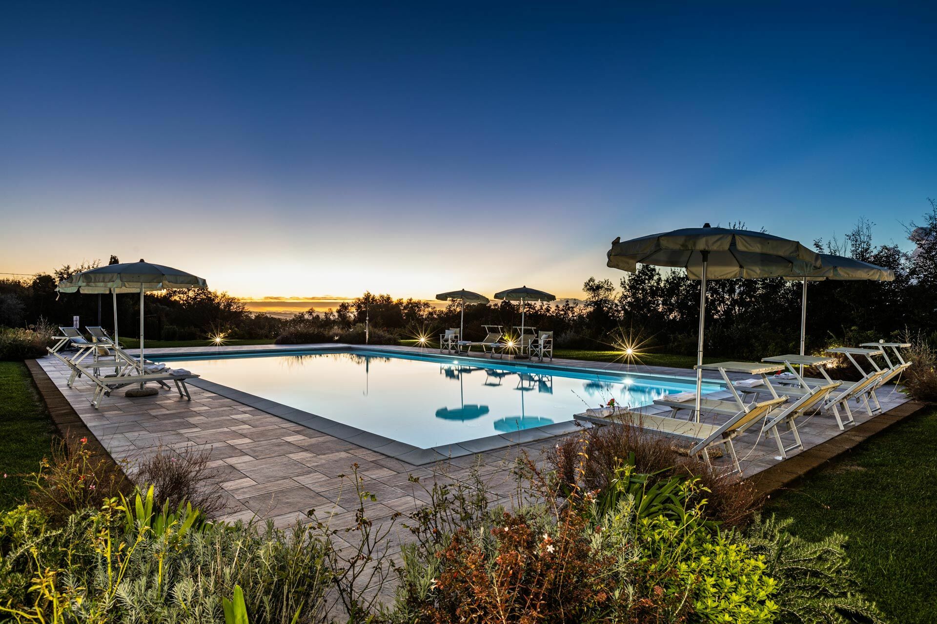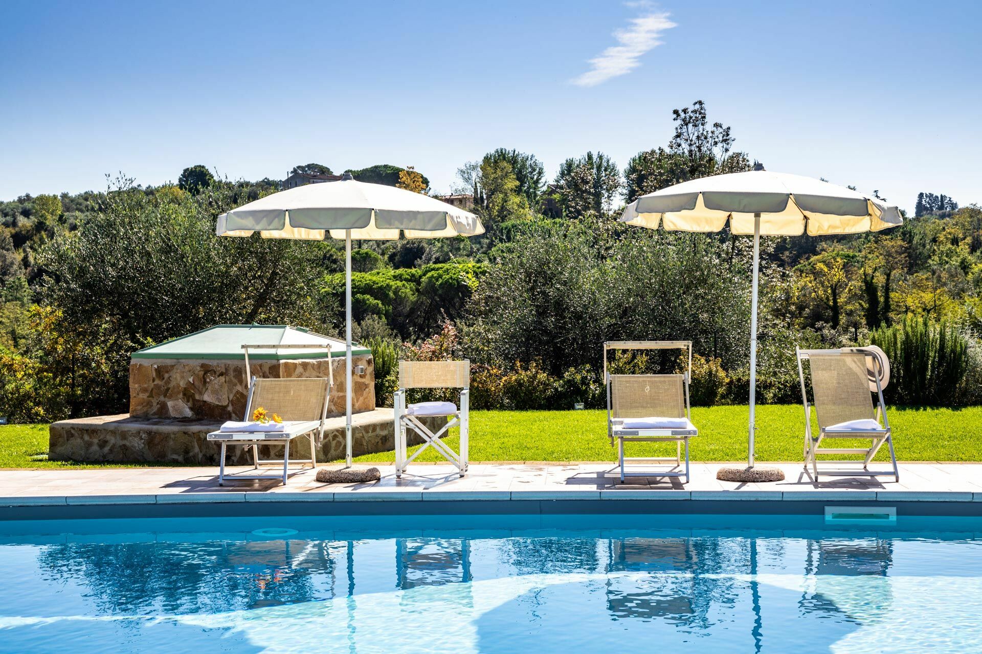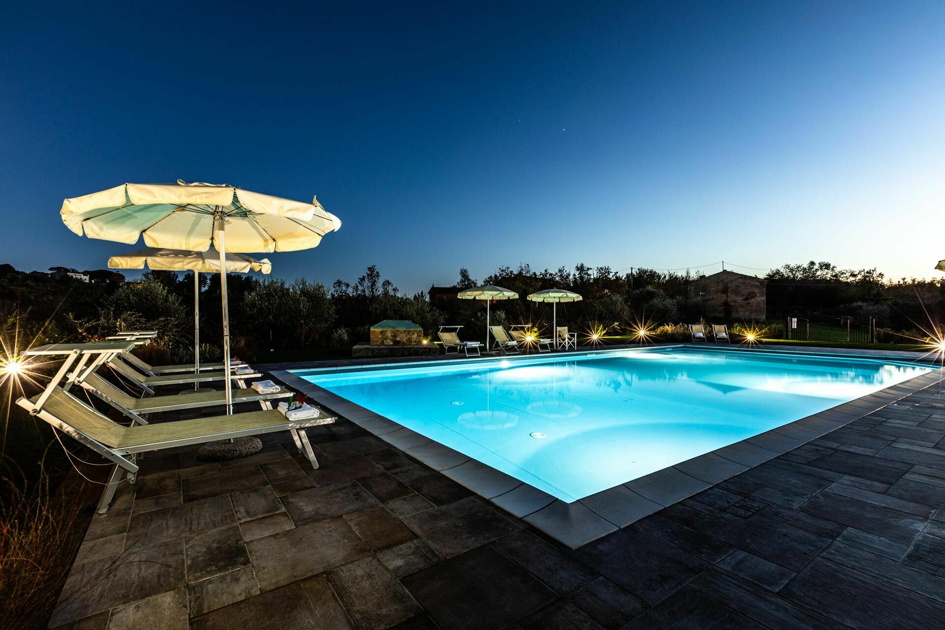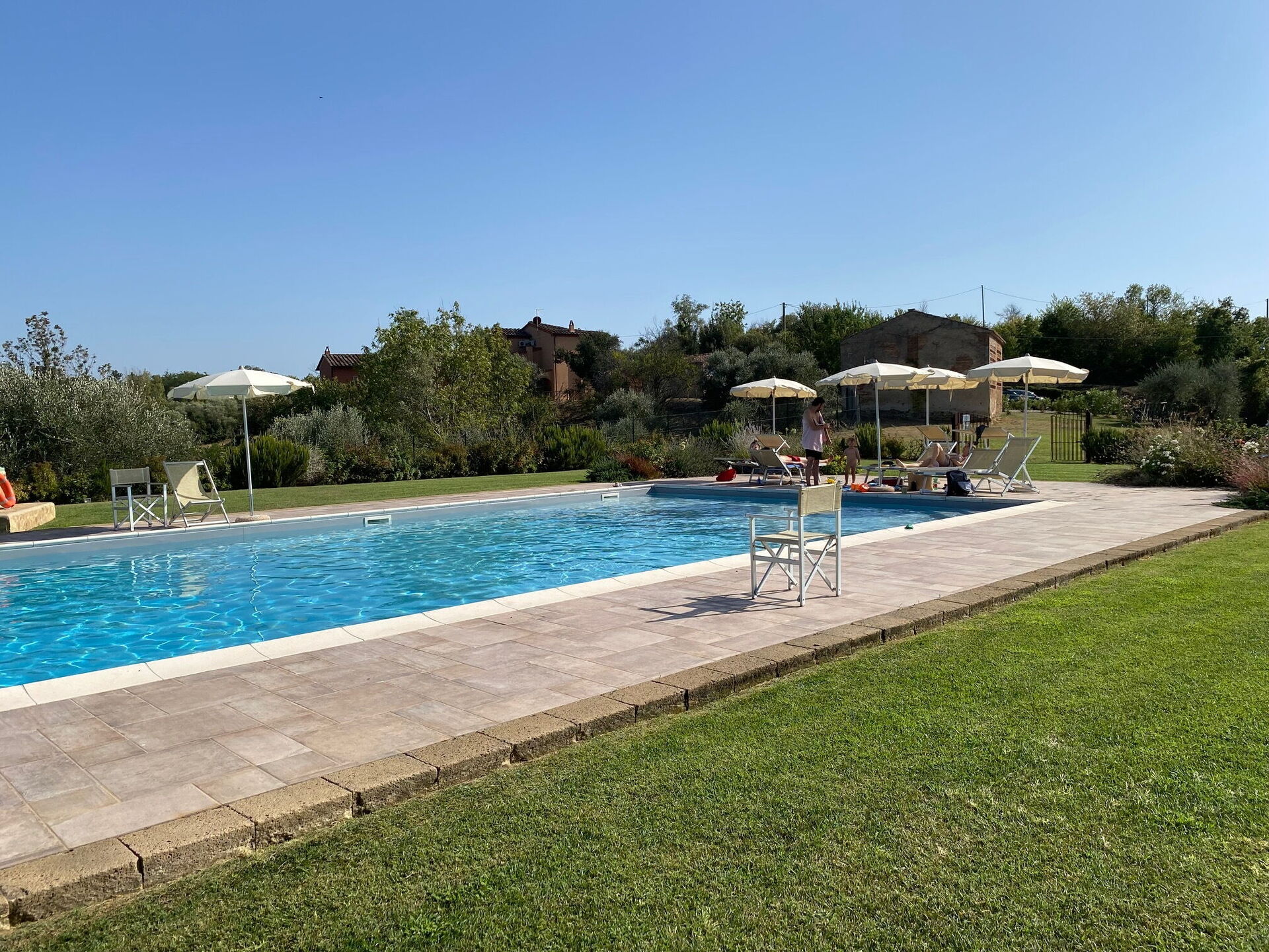 Bassenget ligger ca 100 meter fra huset og har vakker utsikt over åsene og byen Montefoscoli.