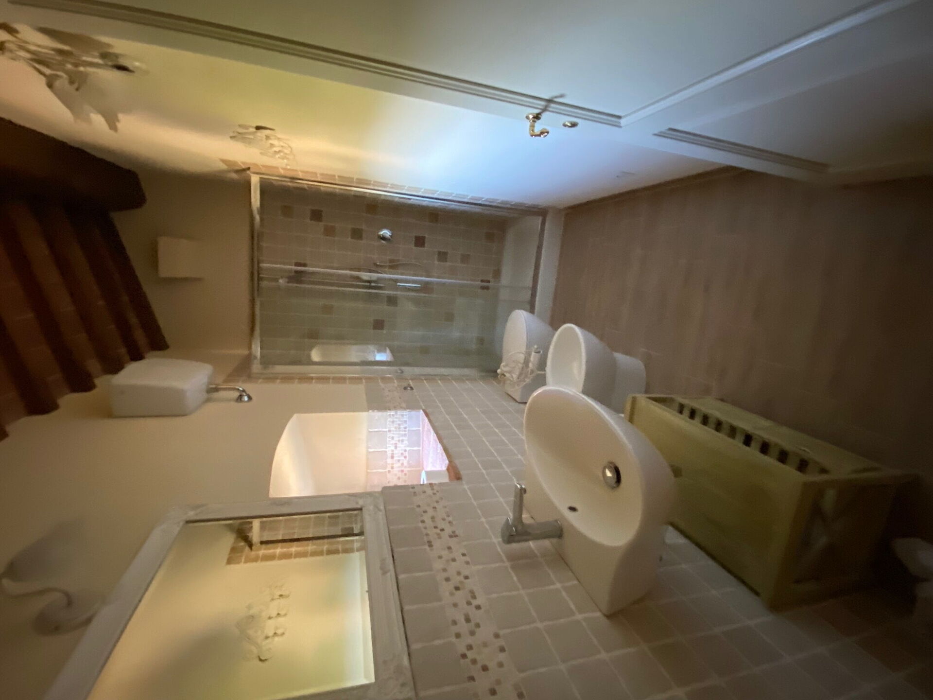 Andre etasje: bad med dusj, dobbelt soverom (aircondition) med eget bad med dusj, dobbelt soverom (aircondition) med eget bad med dusj.