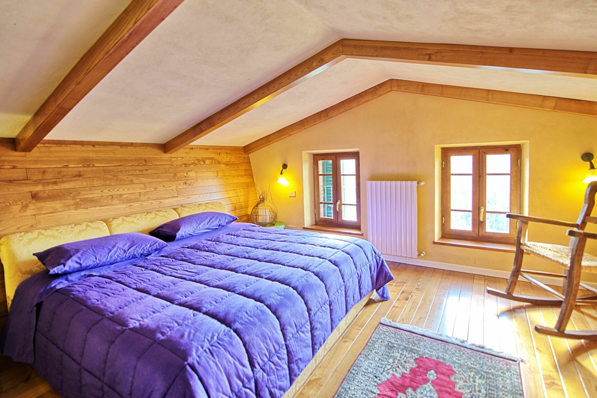 Andre etasje : dobbelt soverom med eget bad med dusj, soverom med fransk seng (passende størrelse for to barn eller en voksen), bad med badekar, tomannsrom.