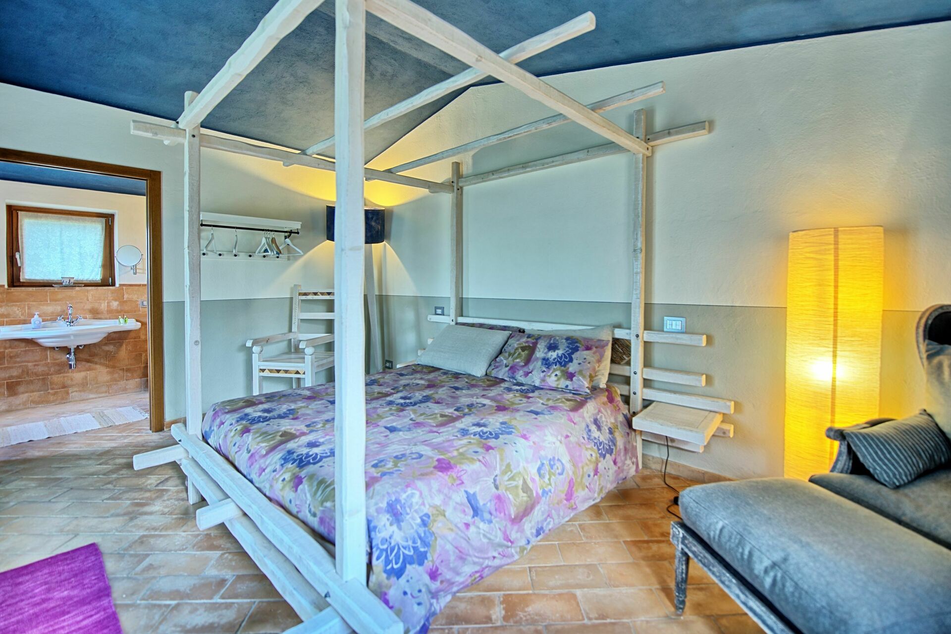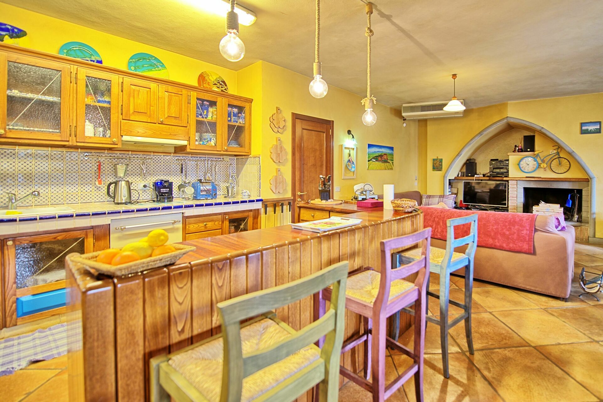 Feriehuset er godt vedlikeholdt og har en ankomst via en sypressallé. Eiendommen består av 3 bygninger som er inndelt i 4 separate leiligheter (to enheter i den første bygningen, en enhet i den andre bygningen og den fjerde enheten er et lite selvstendig hus). Et stort fellesrom med et vakkert kjøkken, stue med satellitt-TV (komplett SKY-pakke) og et bad med dusj, er tilgjengelig slik at at alle gjestene kan ha felles måltider.
