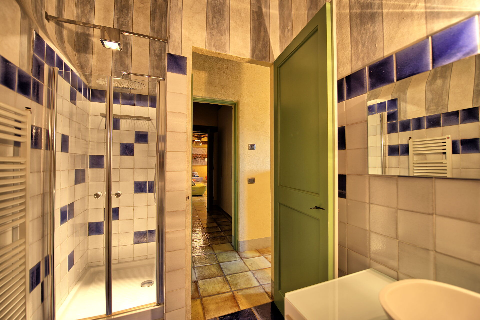 Andre etasje: stue (satellitt-TV) med tilgang til utsiden og et lite studieområde, doble soverom med eget bad med dusj (ikke vindu, med vifte), dobbelt soverom, tomannsrom (på forespørsel kan gjøres til en dobbeltseng), bad med dusj. Denne seksjonen av huset har et kjølesystem installert i gulvet.