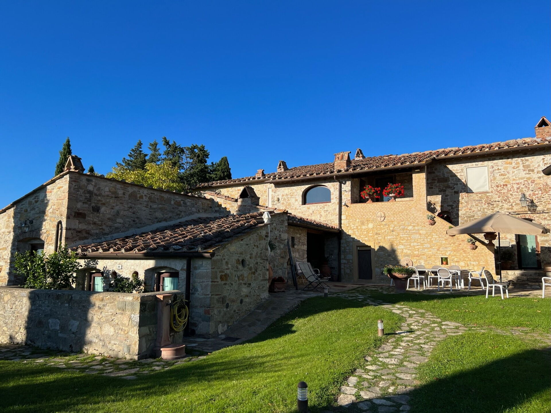Et fortreffelig sted og eiendom. Langt større eiendom enn vi hadde forestilt oss, med en rekke uteplasser og sittegrupper. Bassenget og området rundt var bare fantastisk. Huset med sine mange rom og individuelle løsninger gjorde vår organisering av oppholdet enkelt. Kjøkkenet er en stor glede for enhver som er glad i å lage mat for mange. Meget velutstyrt og med store mengder dekketøy osv. Dette huset og eiendommen er noe enhver bør se fram til for gode feriedager. Beliggenheten var topp, midt mellom Firenze og Siena. Vi besøkte begge disse, samt San Gimignano (Tårnbyen), Panzano, Radda, Greve alle i Chianti. Legg inn et besøk på en vingård - vi valgte Tenuta di Carleone i Radda. Dette er et sted og besøk vi sent vil glemme. En knapp kilometer unna ligger San Donato med Trattoria la Toppa (Michelin anbefaling). de beste anbefalinger gis fra 5 voksne og tre barn 13, 5 og 3 år.
