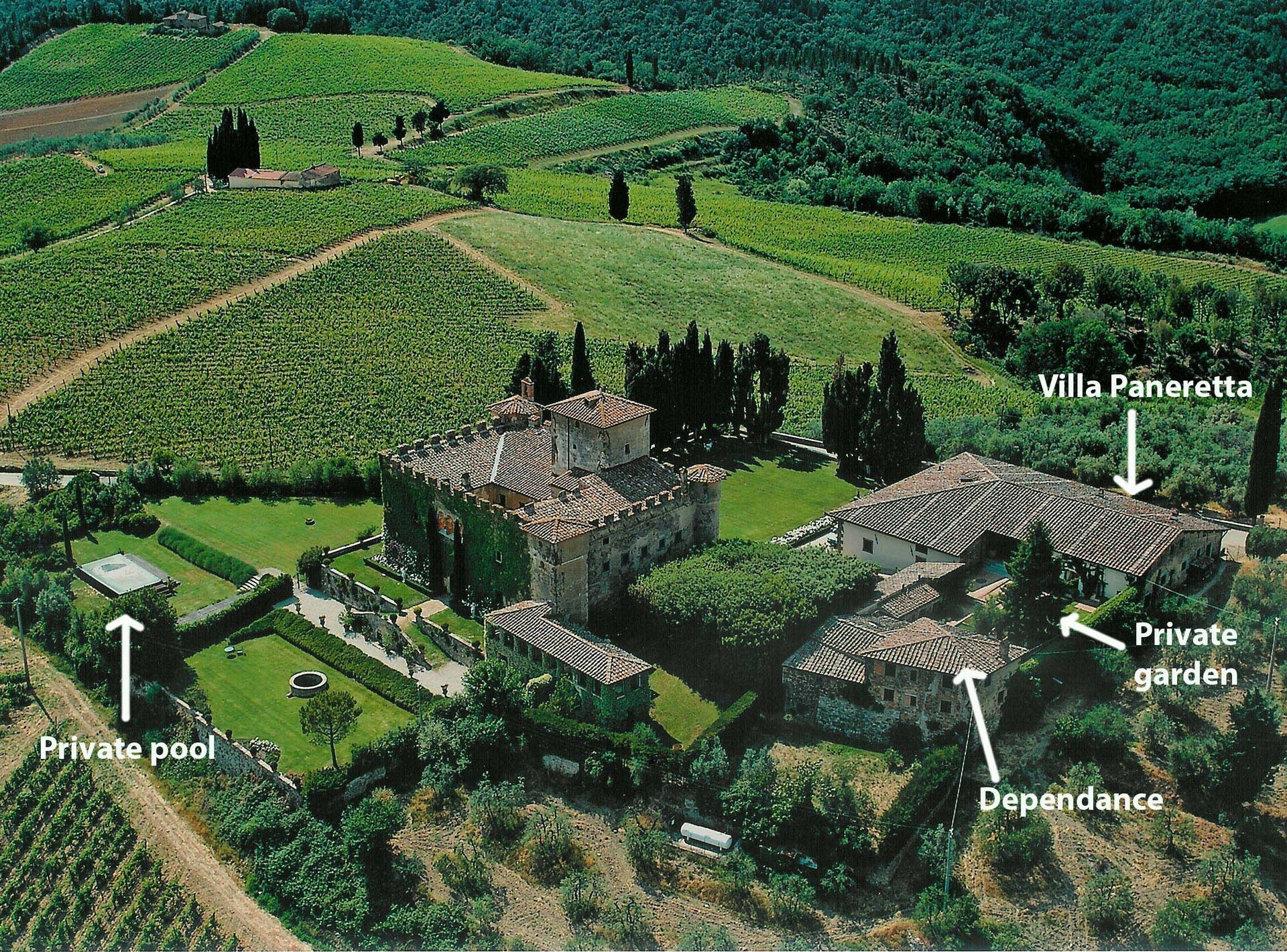Slottet er åpent (til faste tider) for vinsmaking og besøk, men gjestene på Villa Paneretta vil alltid kunne nyte eksklusiviteten til uterom og svømmebasseng.