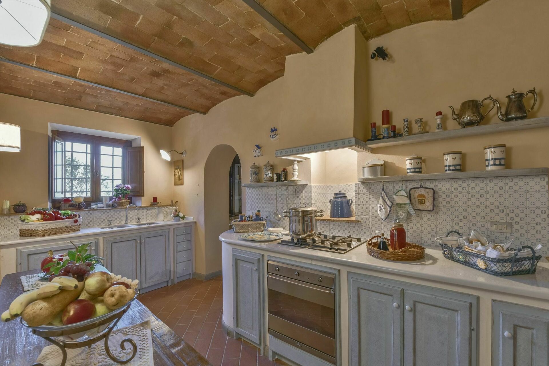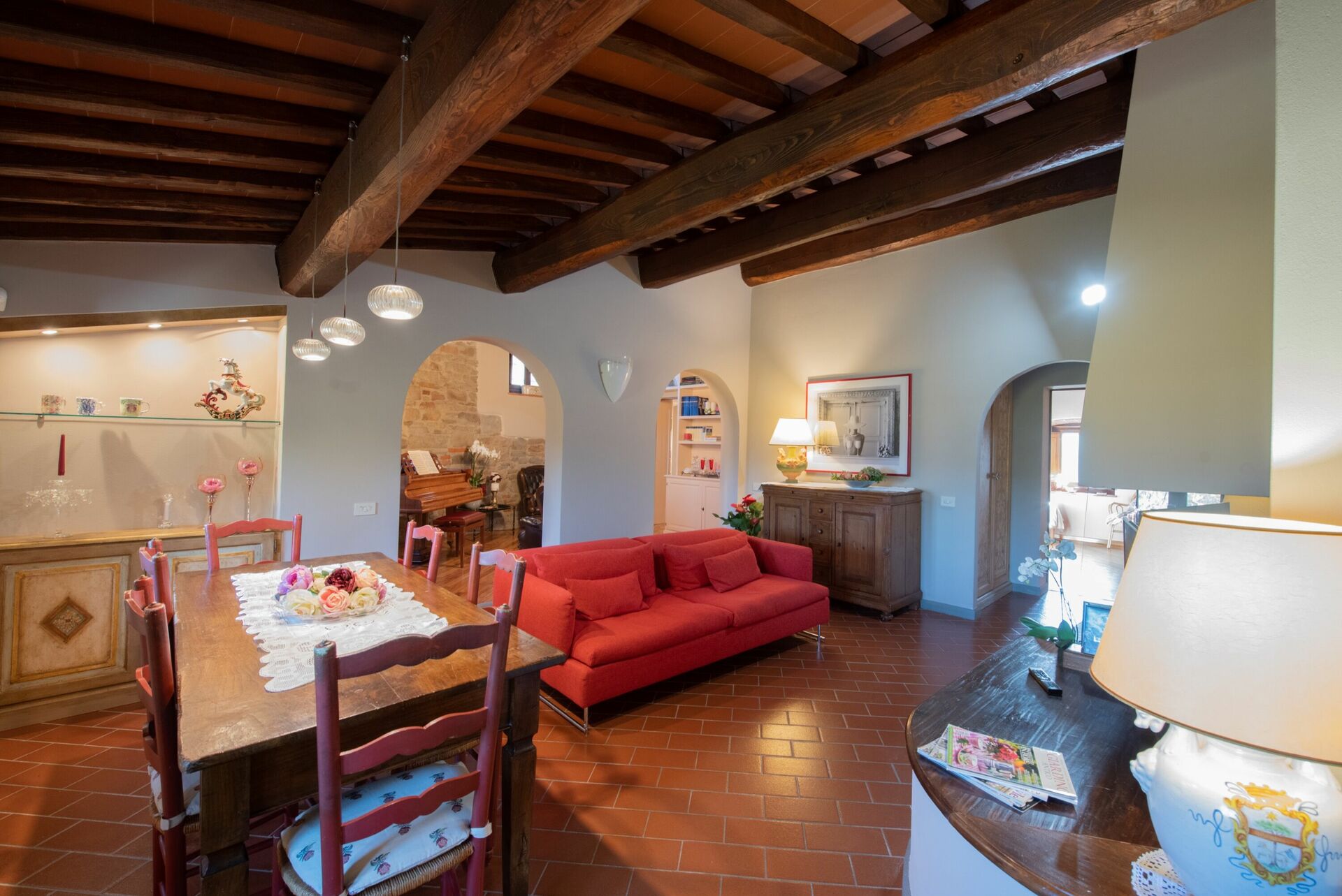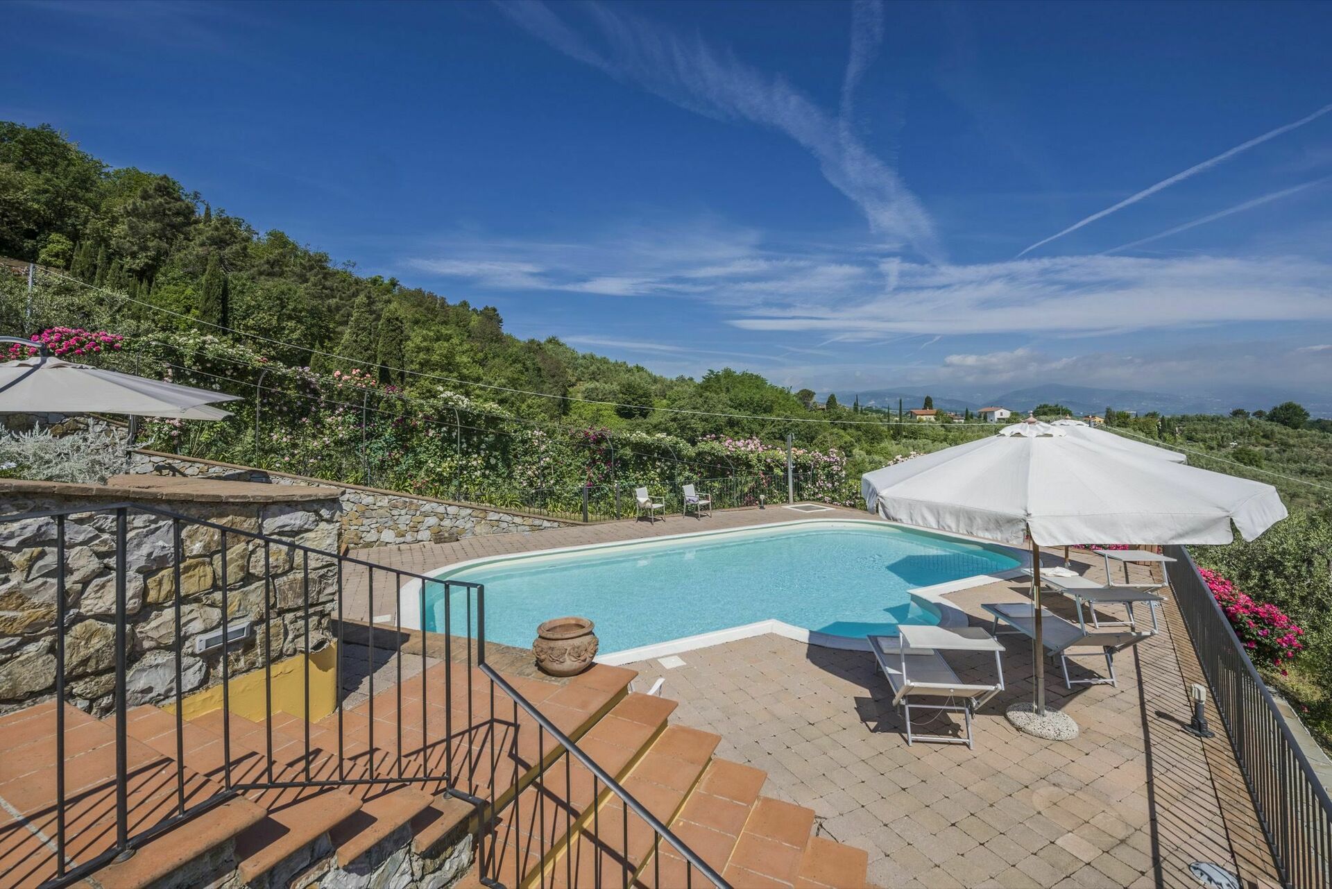 Pen privat villa med basseng ligger i en naturskjønne omgivelser på en høyde med utsikt over en dal nær Casalguidi i provinsen Pistoia i Toscana. Feriehuset har alle moderne fasiliteter og har nylig blitt komfortabelt og smakfullt innredet. Villaen er omgitt av 10 hektar med land hvor en stor del er dekket med 1500 oliventrær. Gjesterne på Villa Casalguidi kan nyte en vakker utsikt samt en meget velstelt hage. Fra bassenget har man panoramautsikt til de vakre omgivelsene.