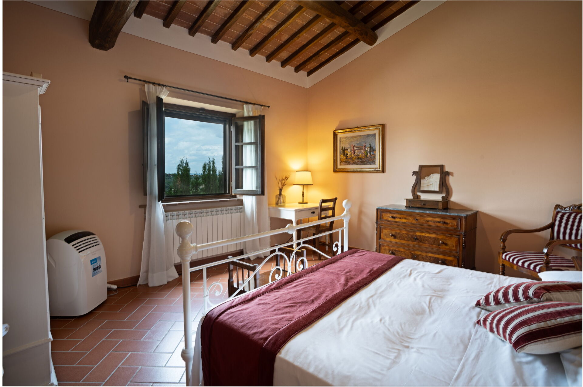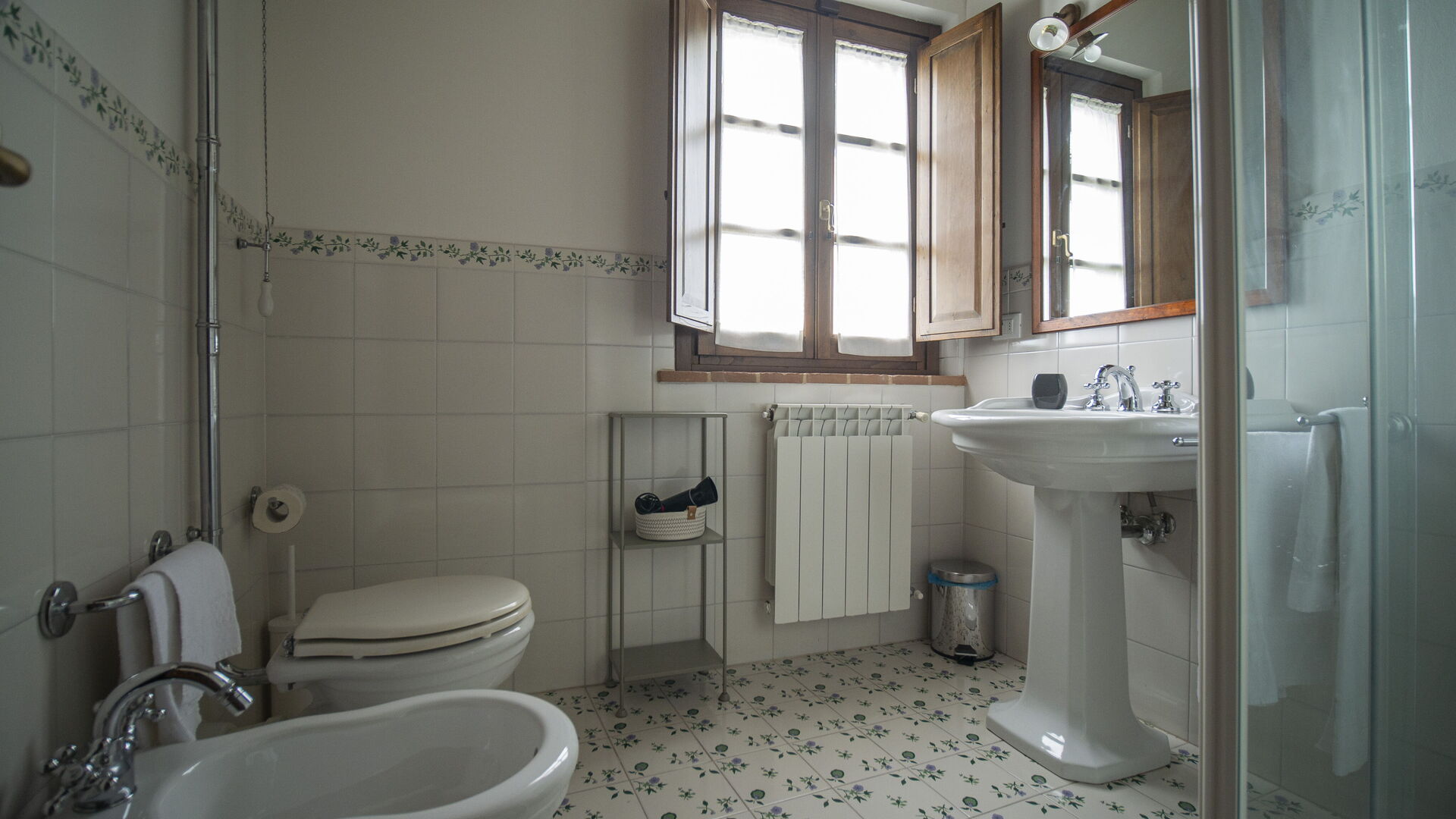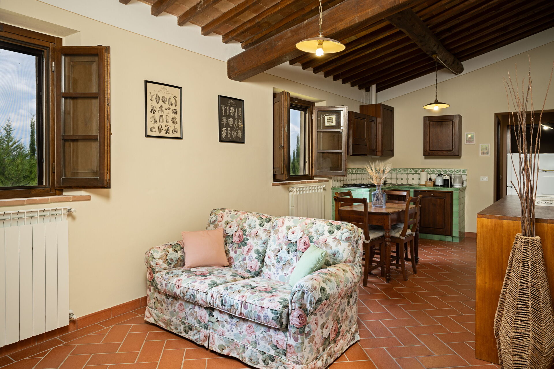 Utendørs område utstyrt med bord, stoler og grill, delt med leilighetene Camino og Cipressi.