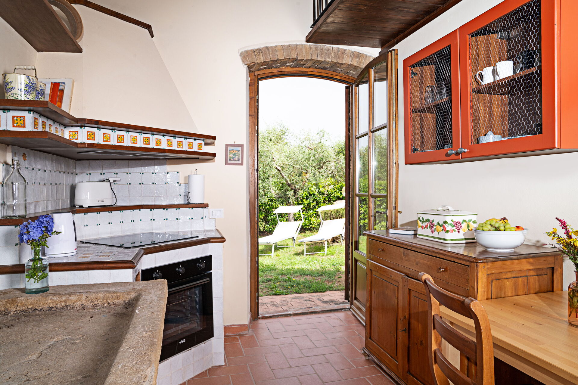 Første etasje: stue med kjøkkenkrok (oppvaskmaskin, ovn, kjøleskap, induksjonstopp, mikrobølgeovn, kaffemaskin, brødrister), spiseområde og soveområde med dobbeltseng (peis, smart-TV og aircondition) og tilgang til hagen, bad med dusj.