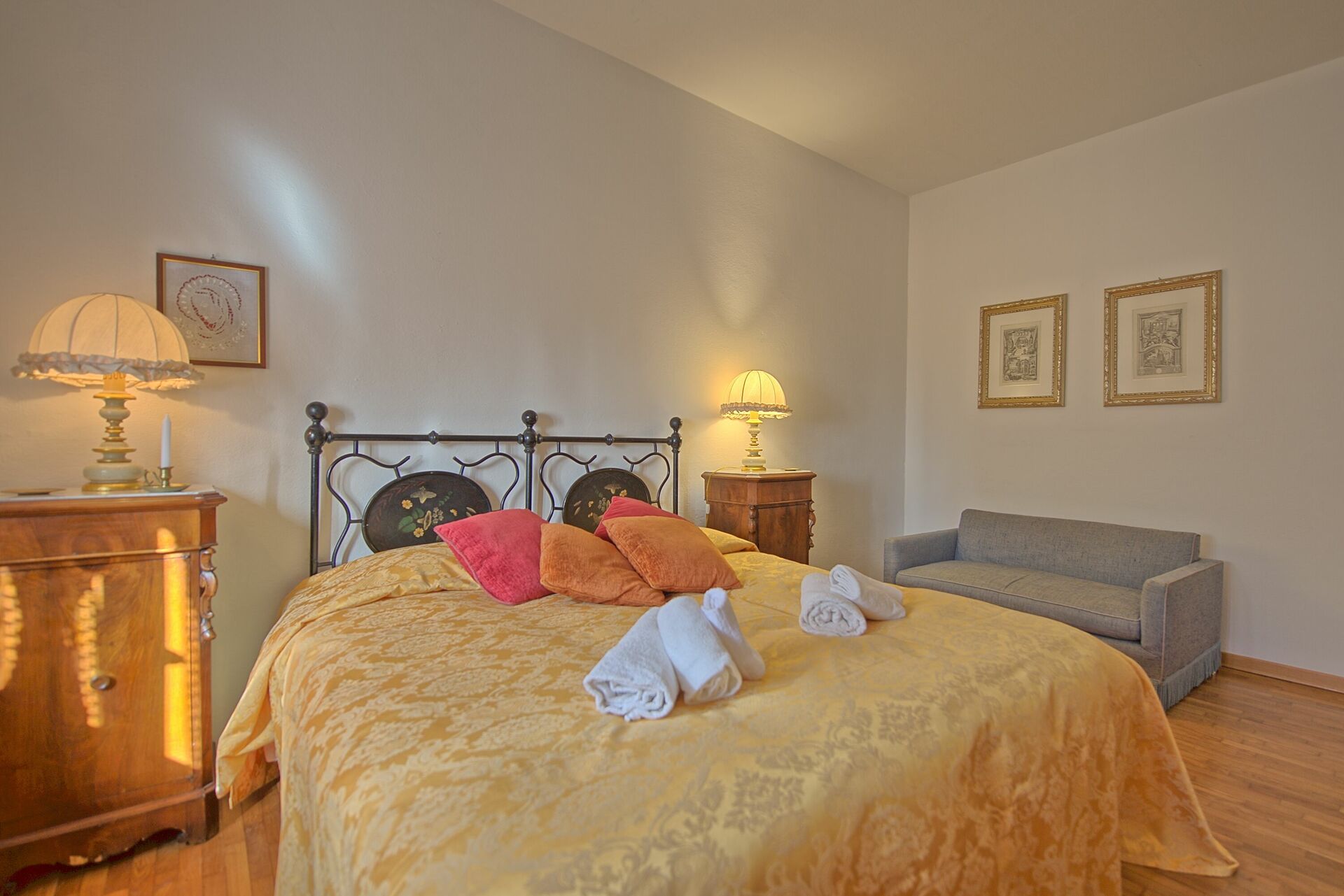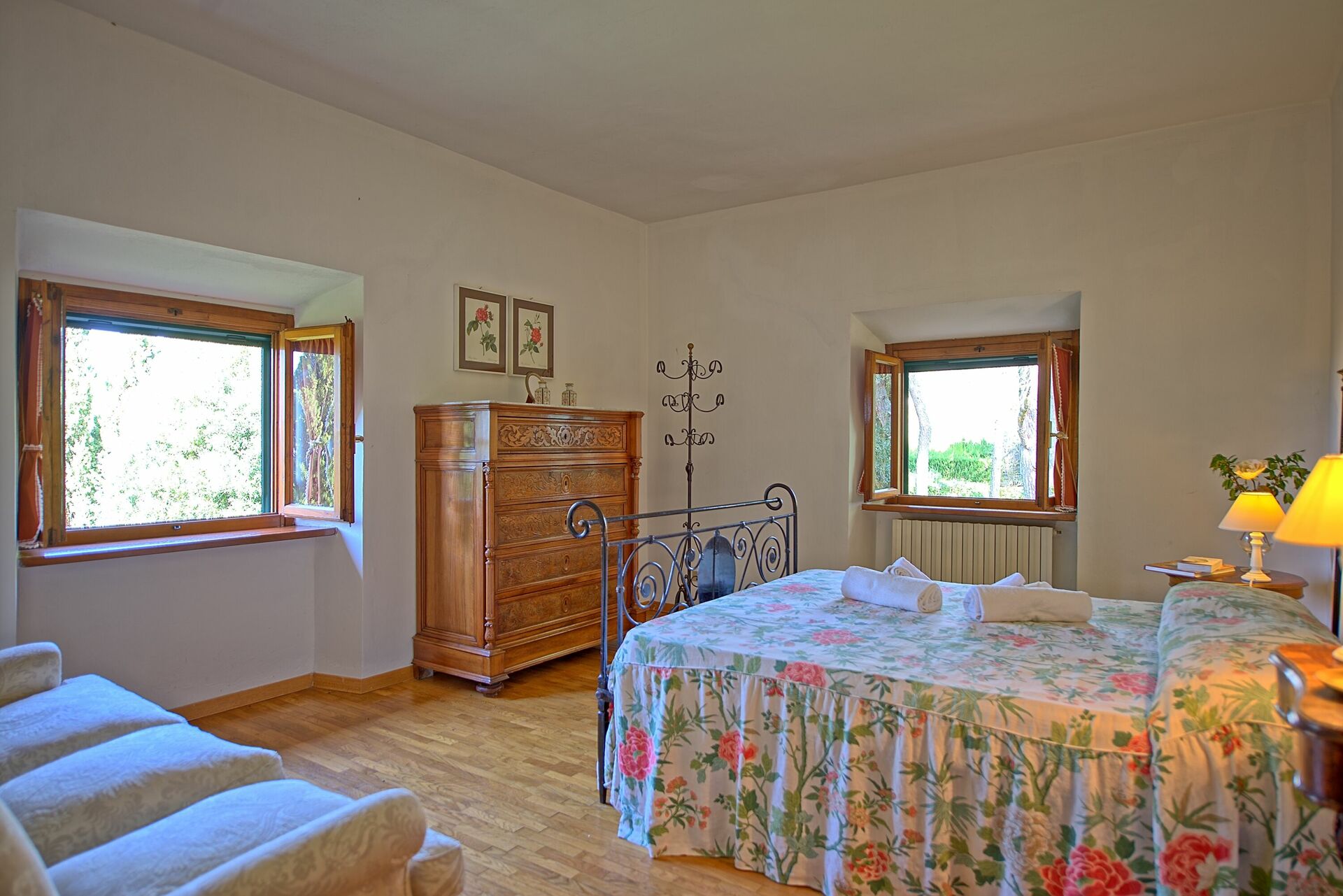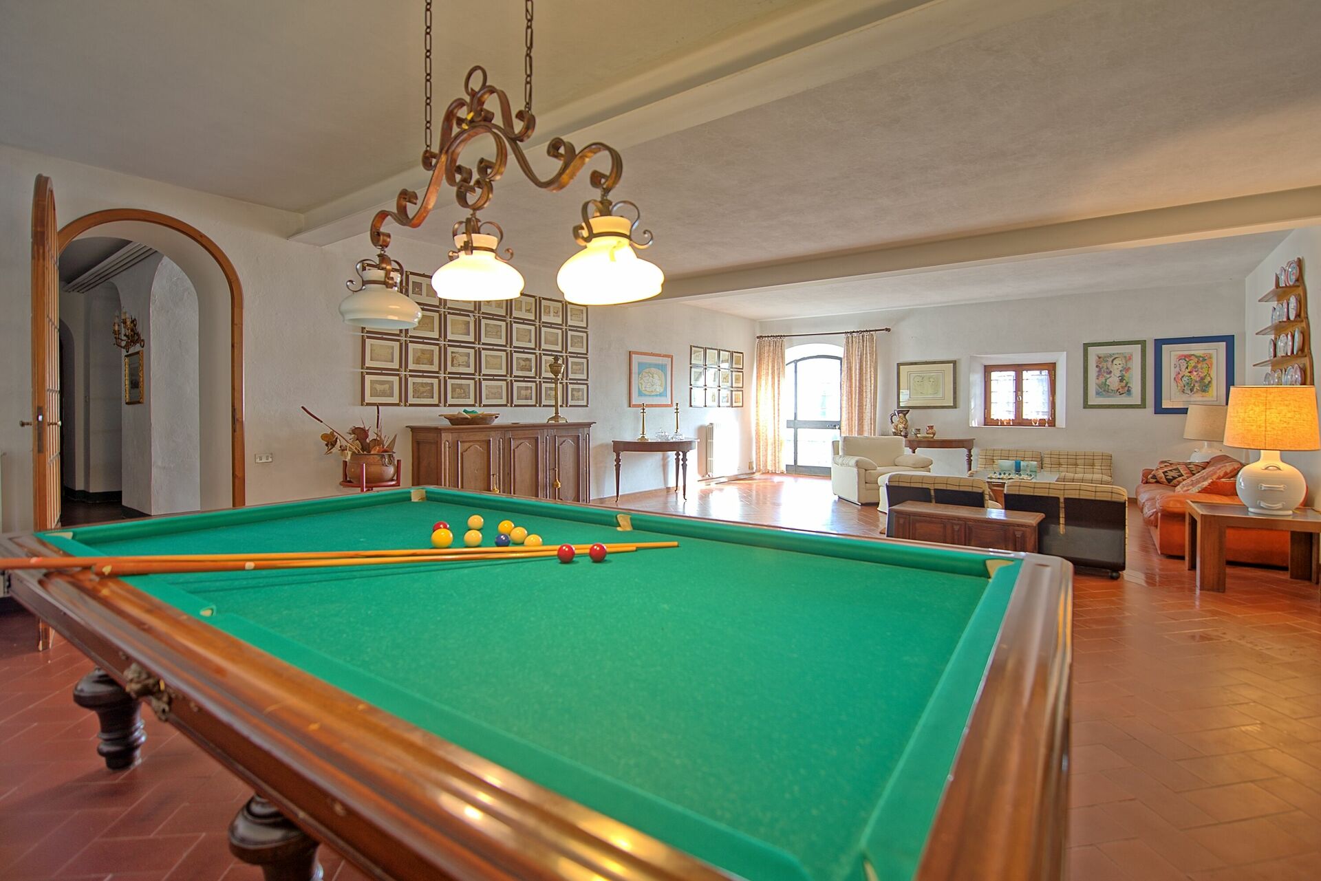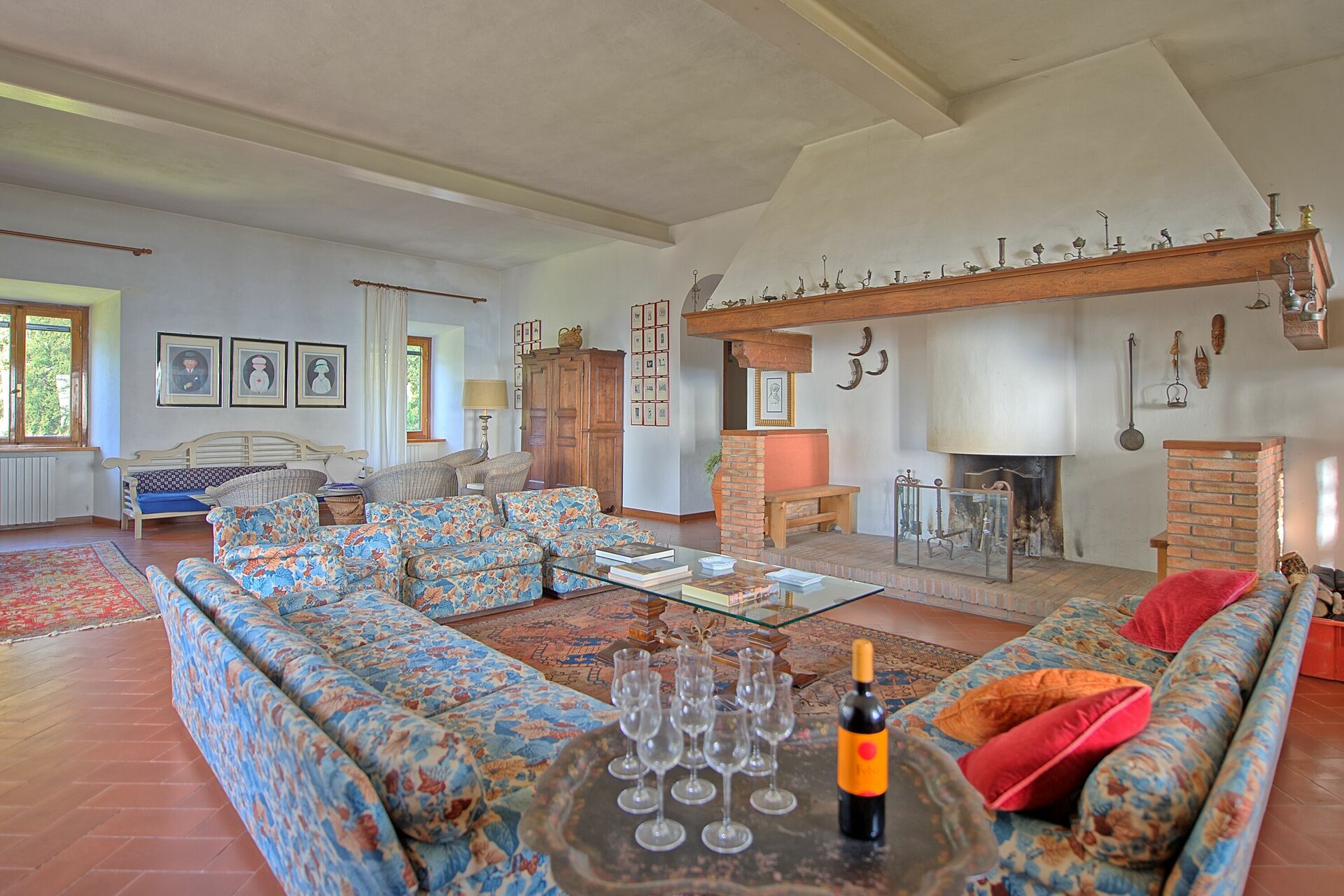 Villaen er innredet i toskansk landlig stil, med gamle innslag fra 1800-tallet som fresker som fremdeles er synlige på noen vegger og tak.