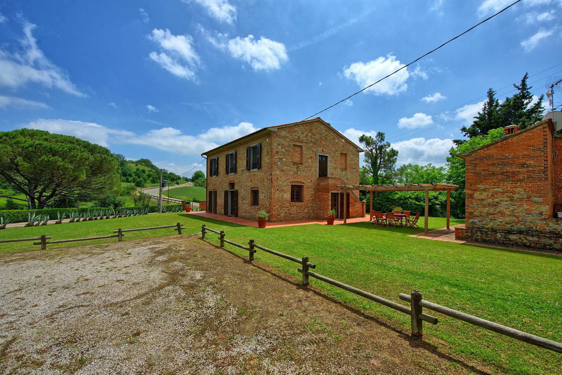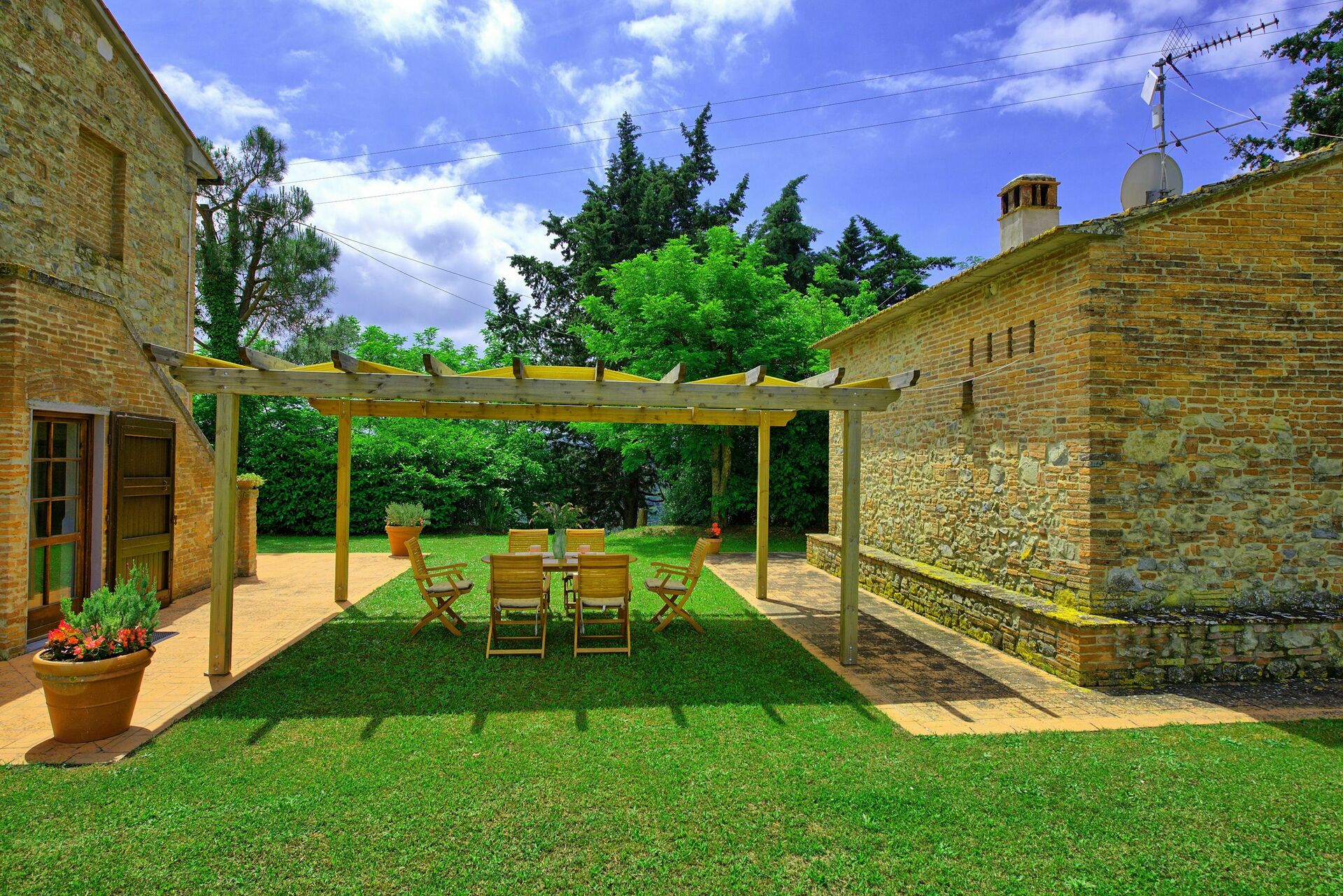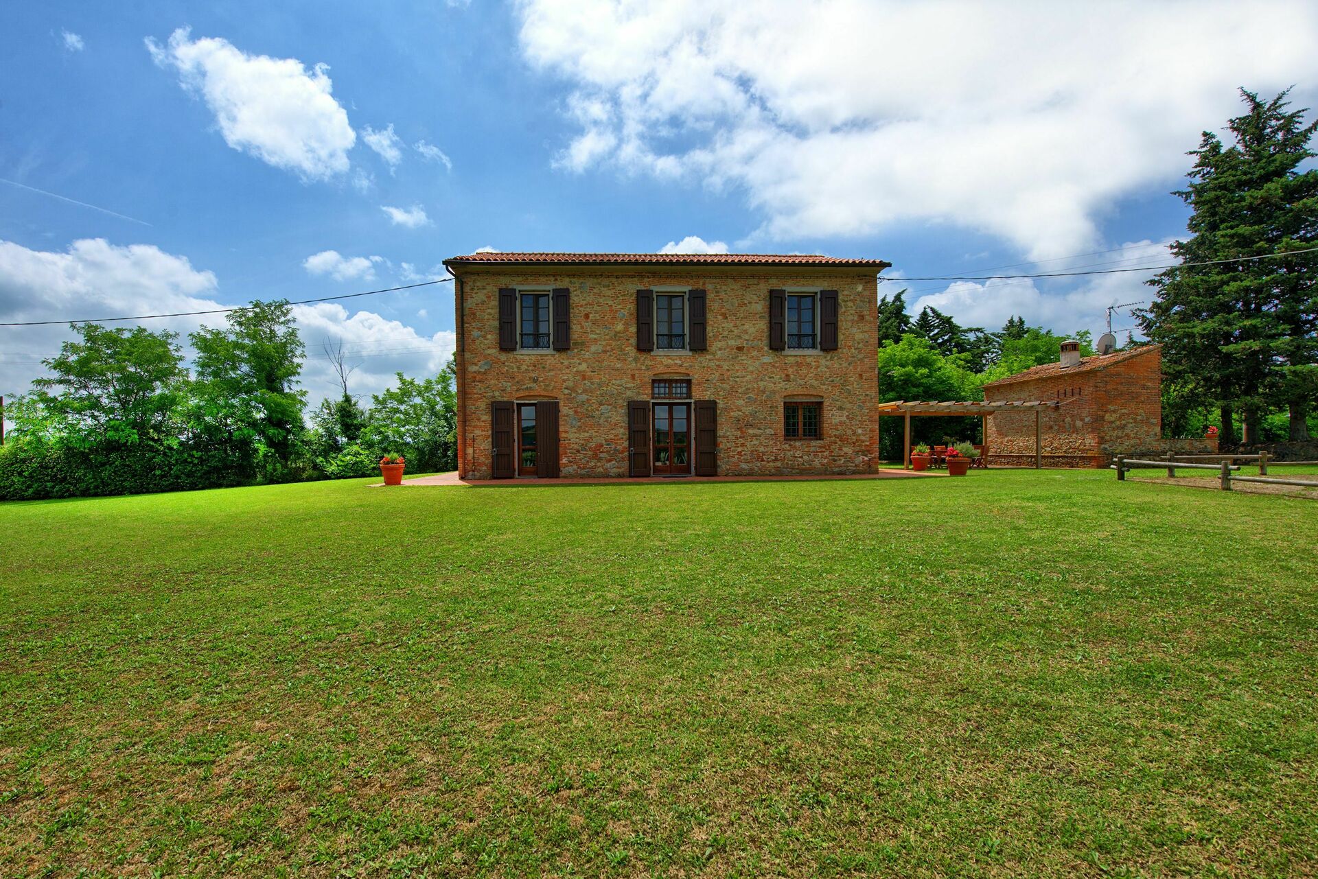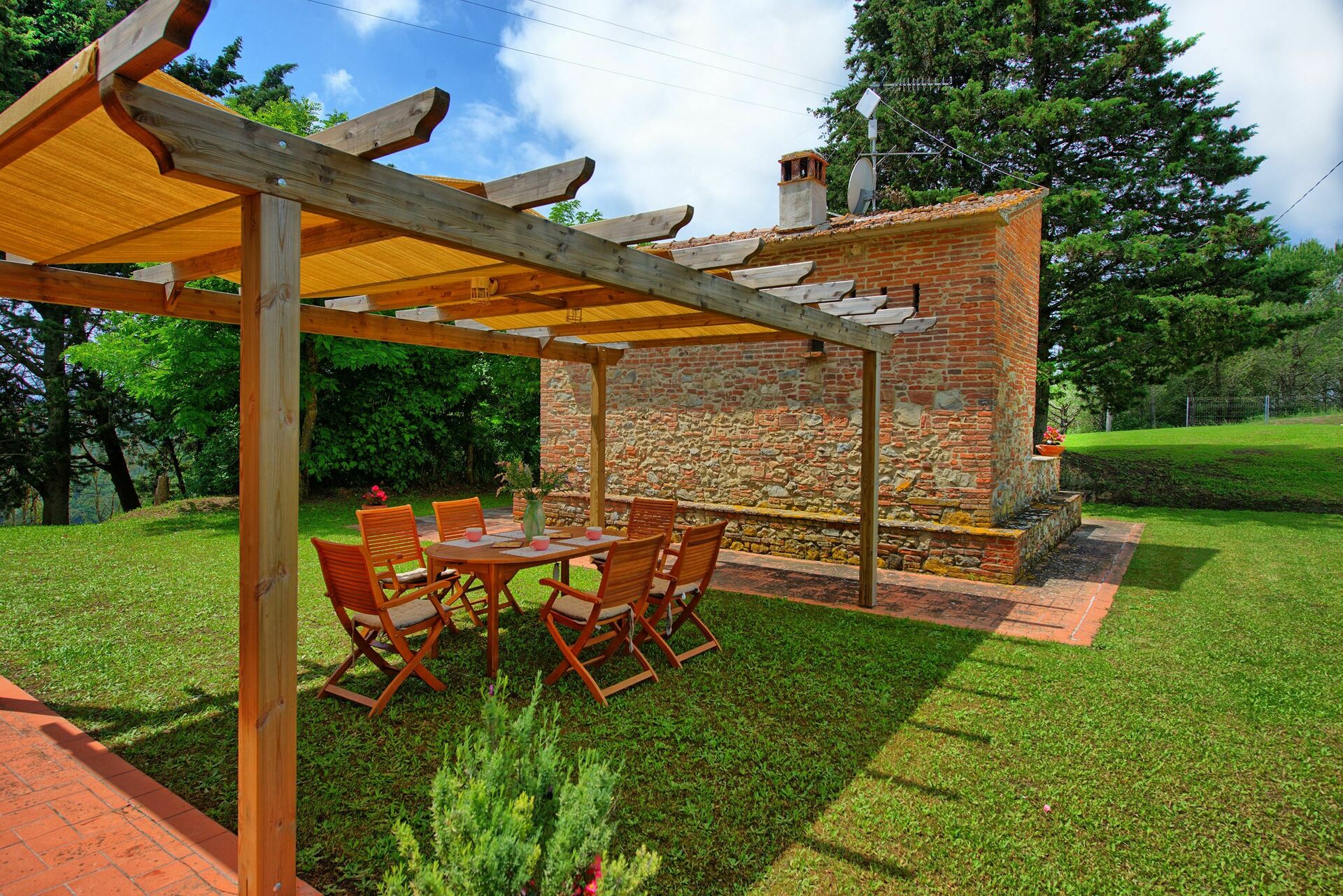 Feriehuset er omgitt av en stor og velholdt hage med privat svømmebasseng, kun til gjestenes bruk. Interiøret er i rustikk, toskansk stil, og med plass til opptil 8 gjester.
