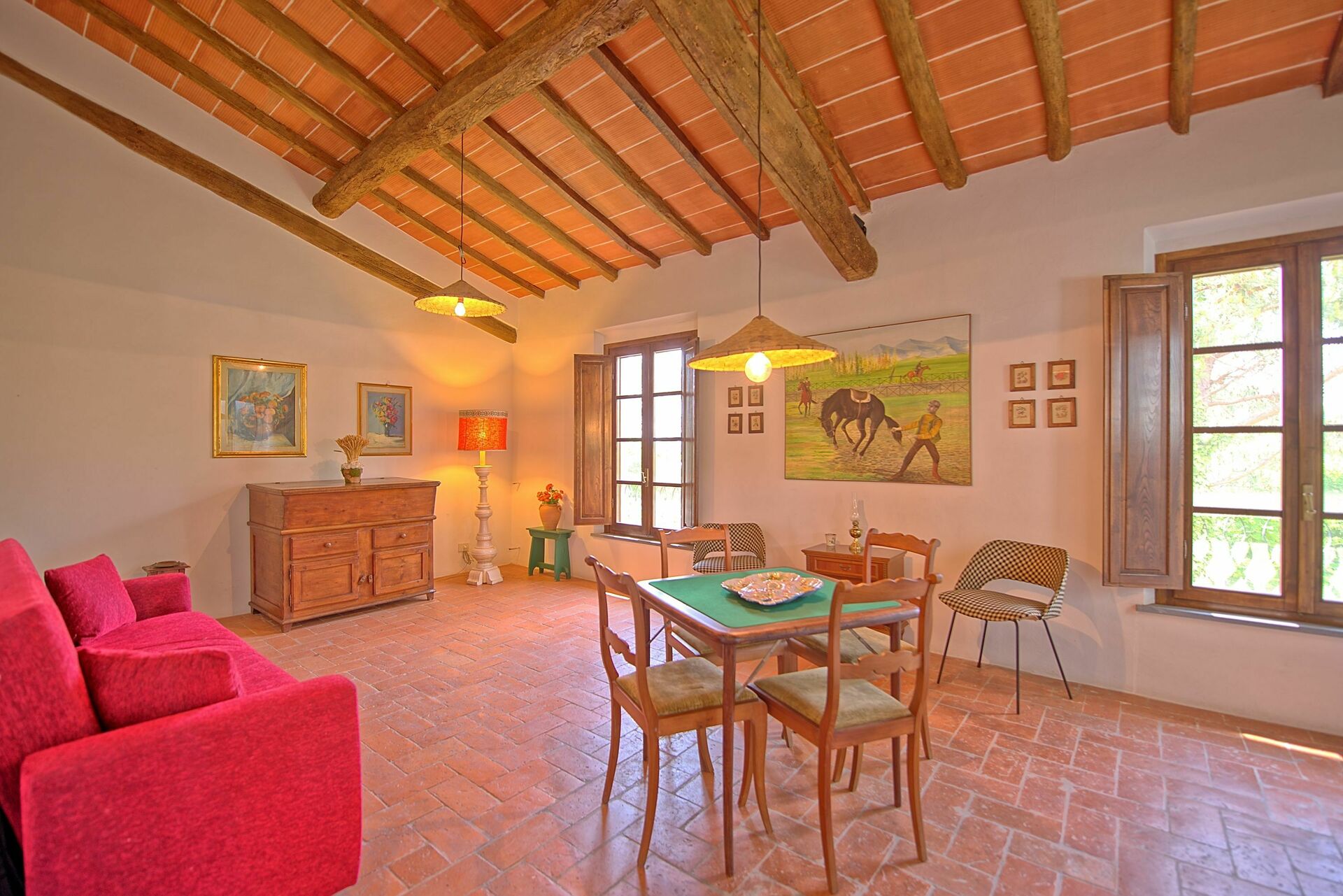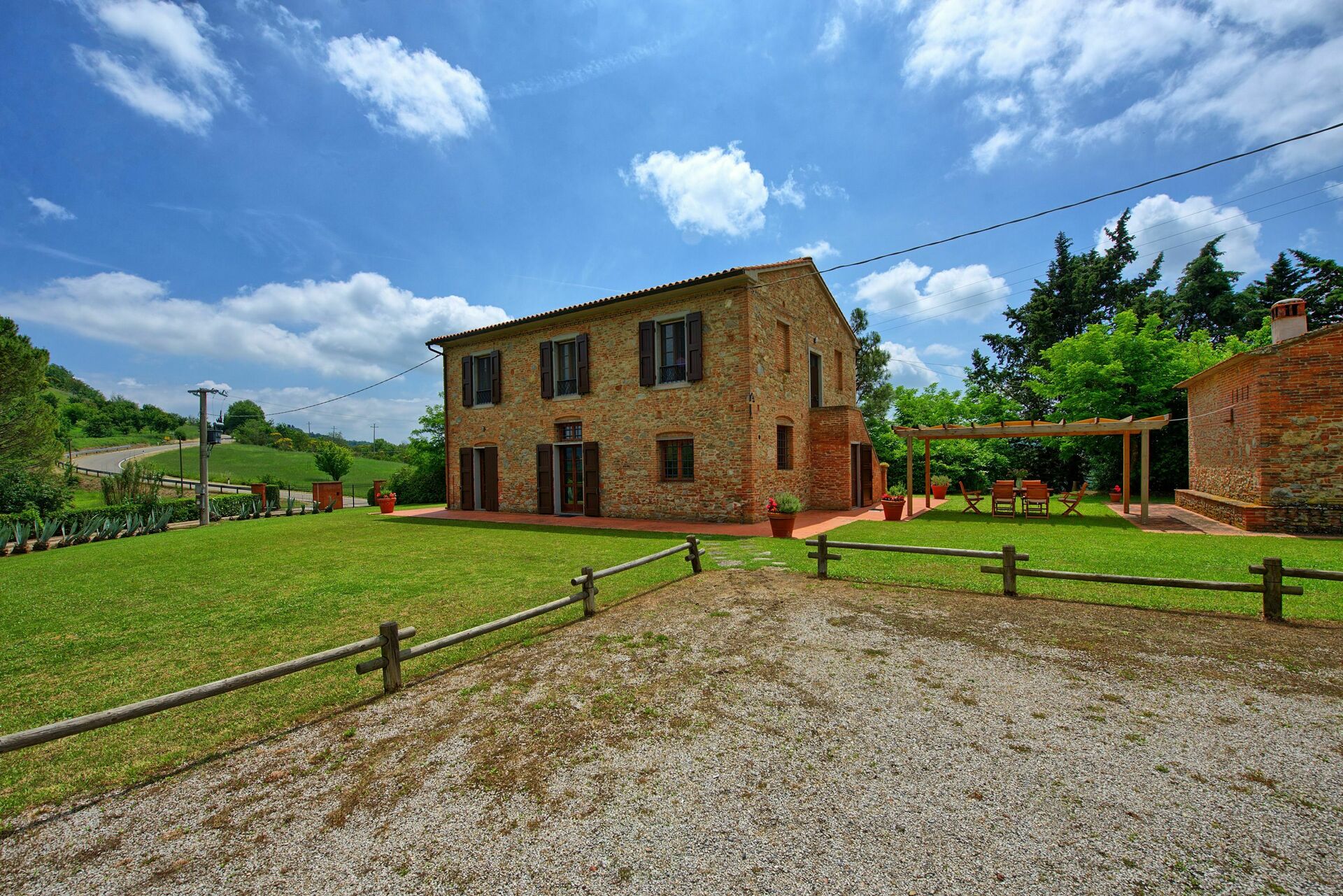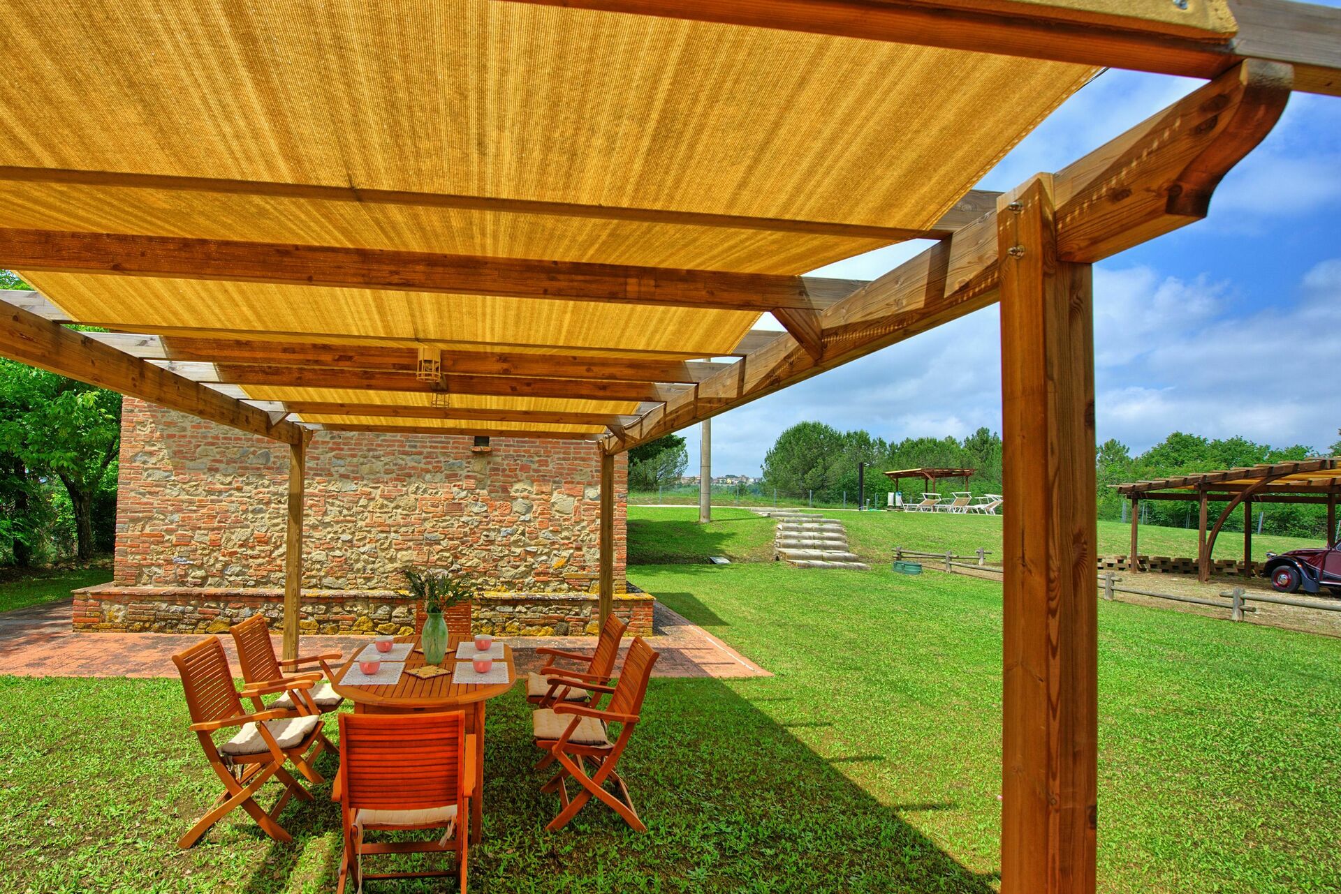 Feriehuset er omgitt av en stor og velholdt hage med privat svømmebasseng, kun til gjestenes bruk. Interiøret er i rustikk, toskansk stil, og med plass til opptil 8 gjester.