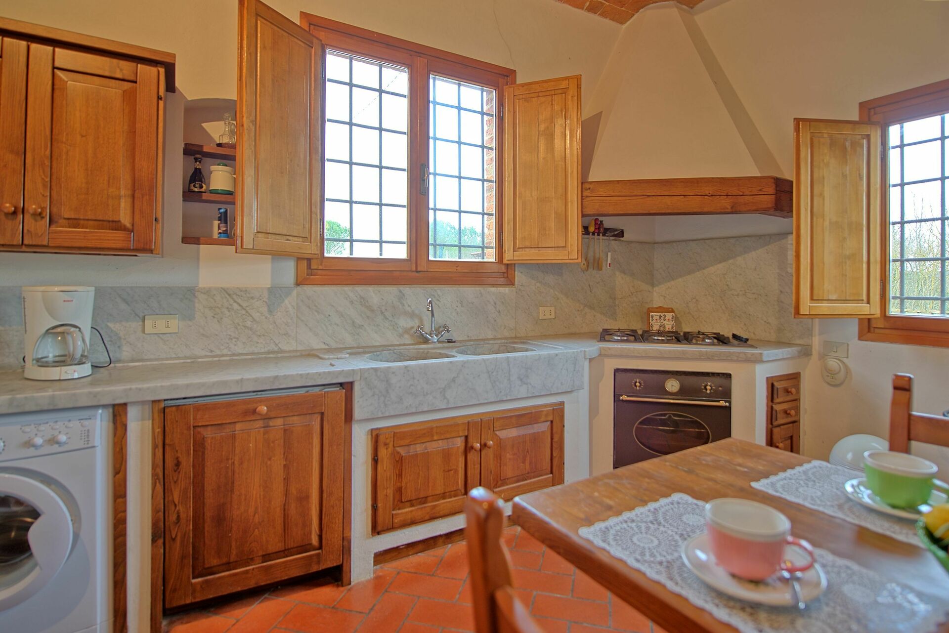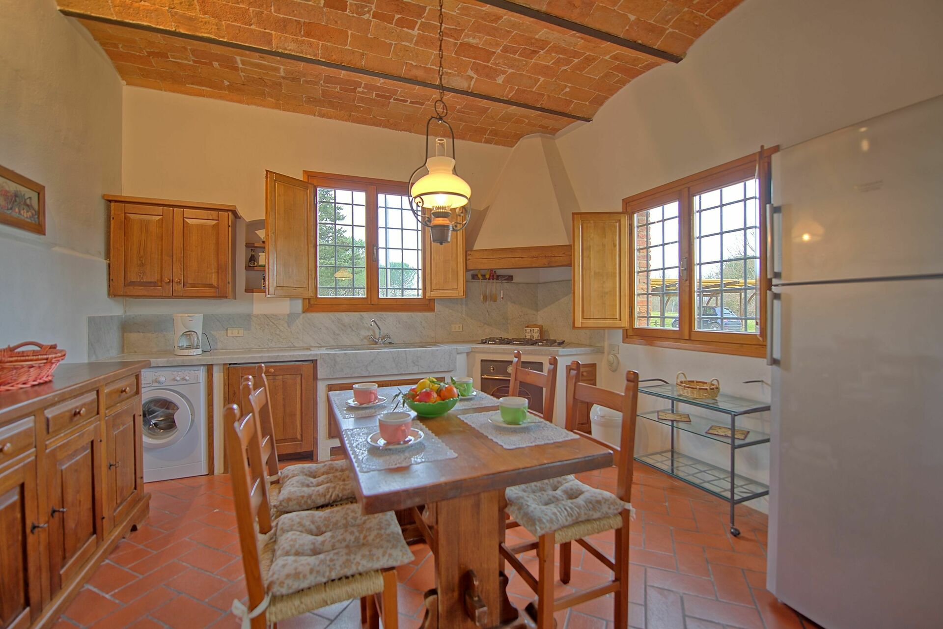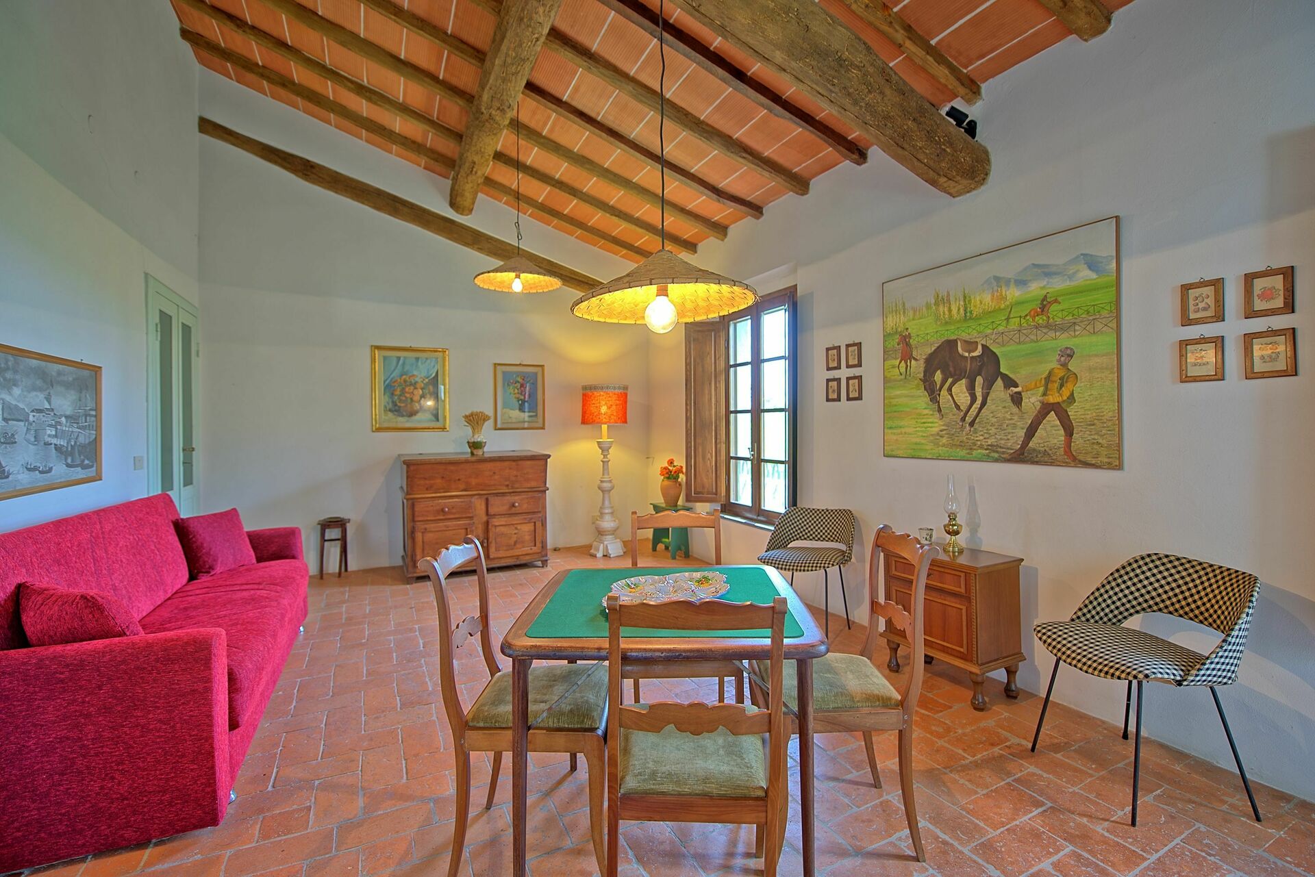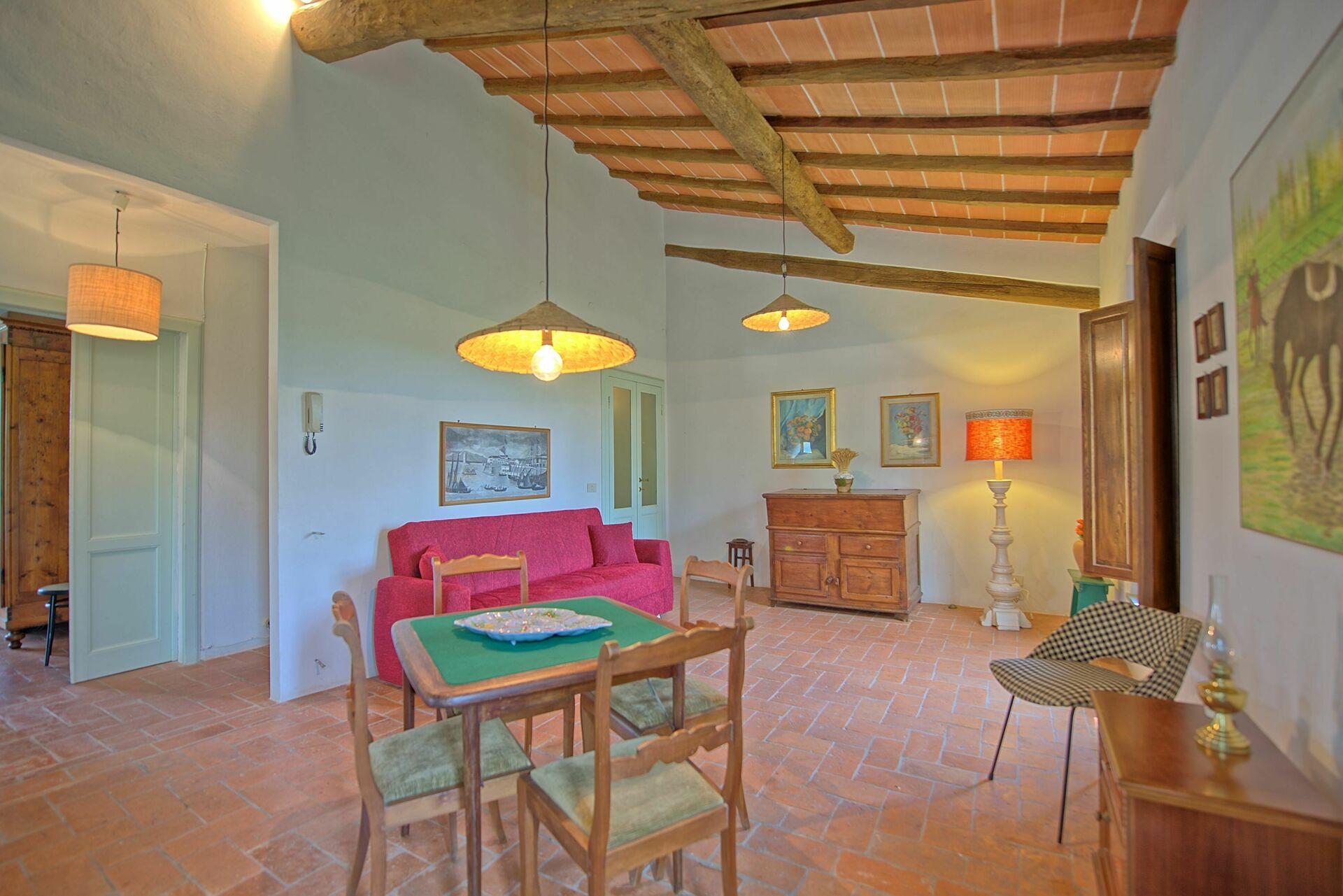 Feriehuset er omgitt av en stor og velholdt hage med privat svømmebasseng, kun til gjestenes bruk. Interiøret er i rustikk, toskansk stil, og med plass til opptil 8 gjester.