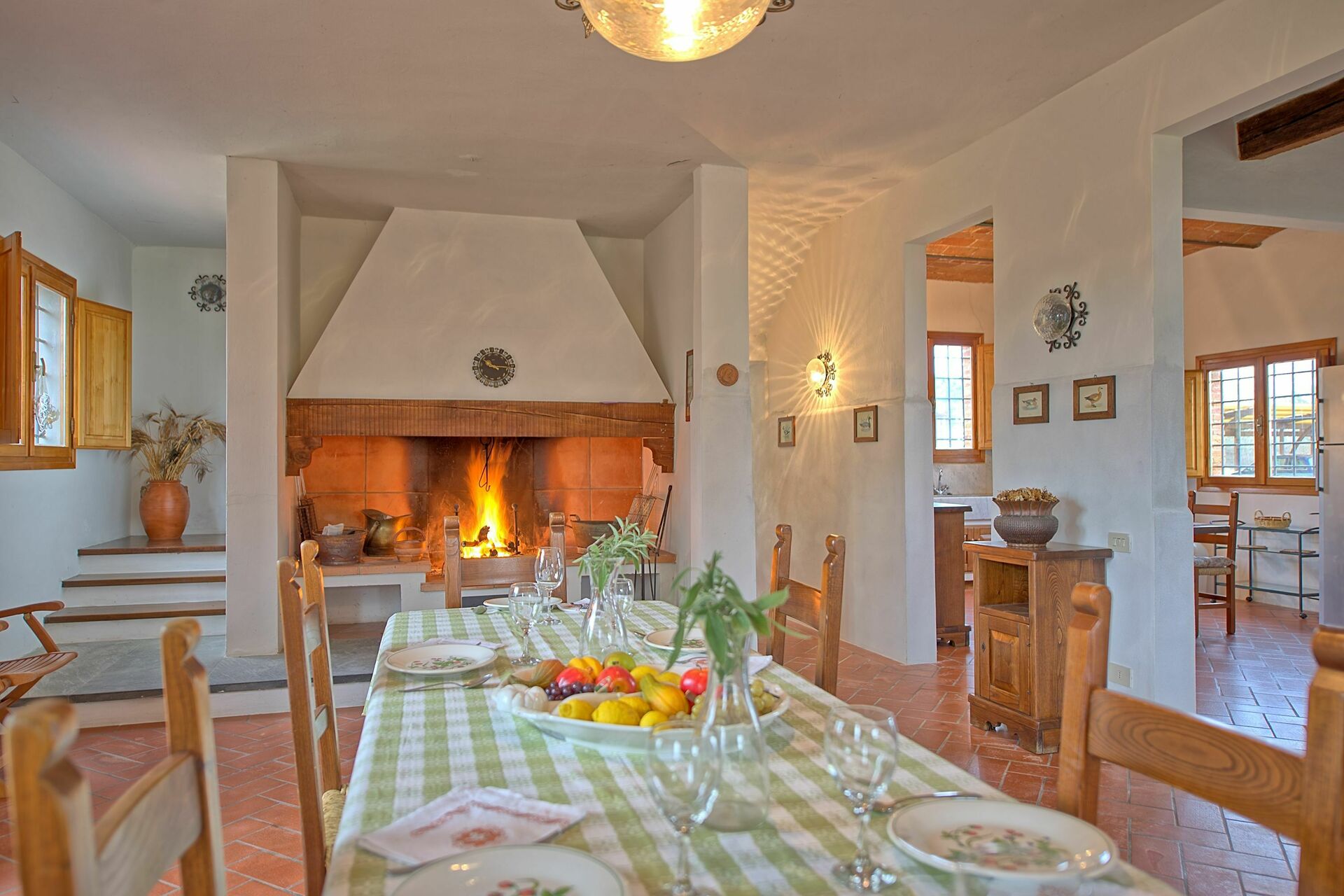 Huset har en vakker beliggenhet med utsikt over åser og den sjarmerende byen Montefoscoli, omtrent 30 km fra Volterra og 45 km fra Pisa.
