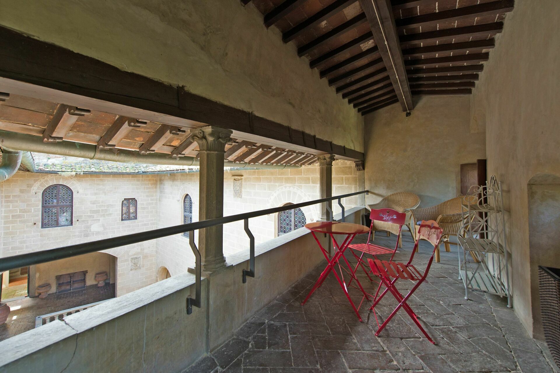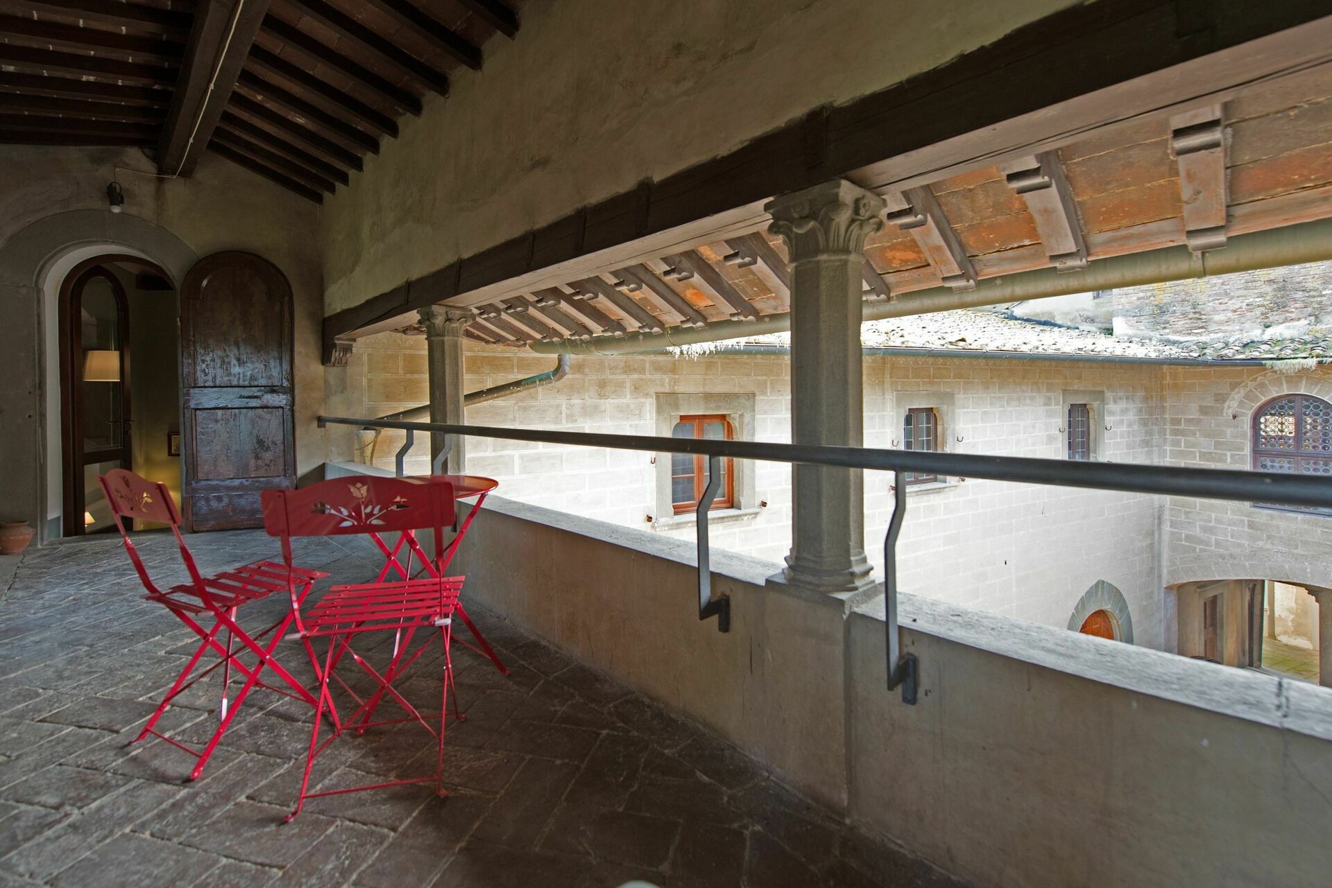 Sjarmerende terrasse med utsikt over den middelalderske gårdsplassen