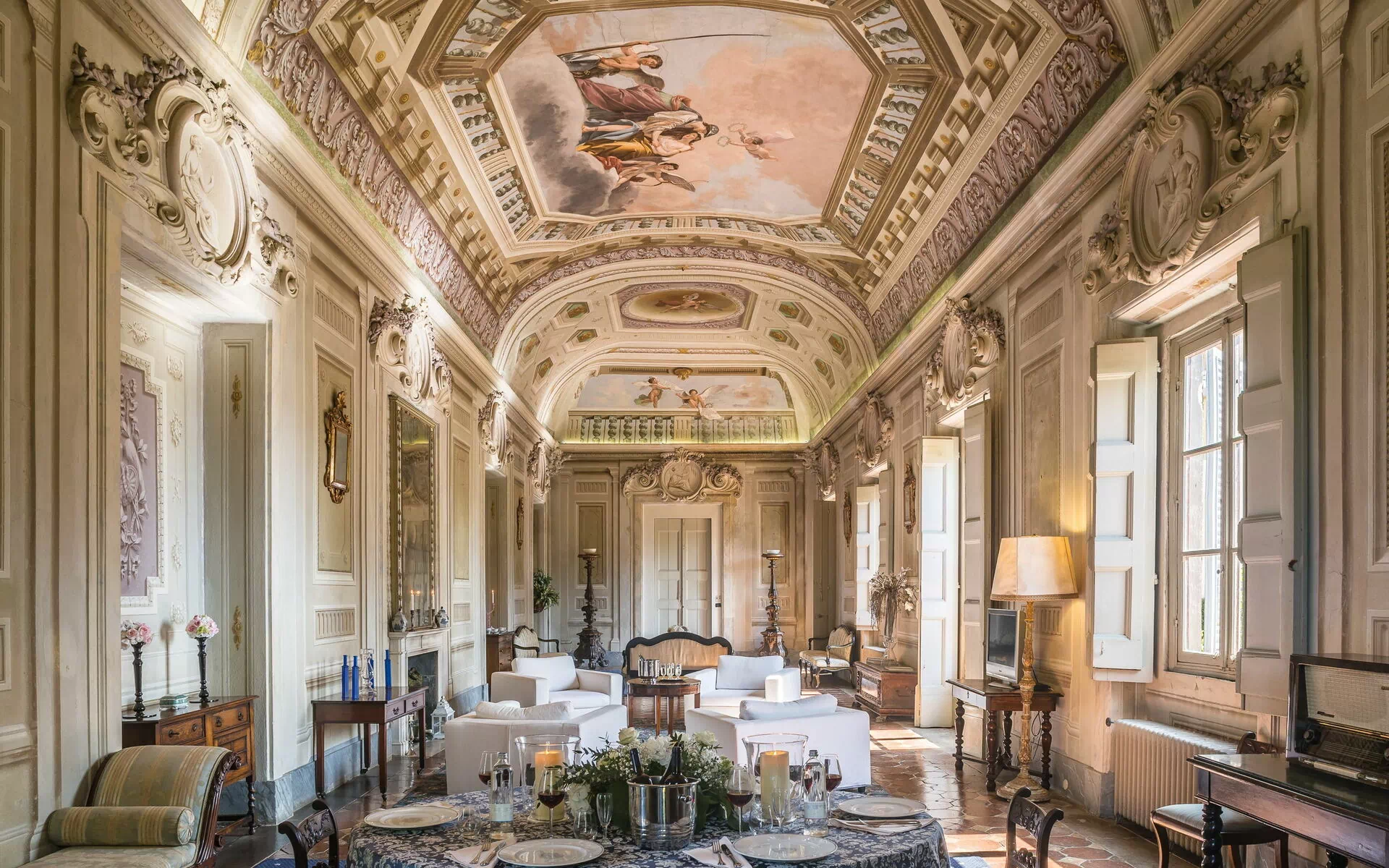 The Galleria appartment is huge, there is really no way to prepare yourself for the size of the living room/ball room. It occupies an entire wing of the castle. The team on site were very nice and accommodating. The castle is old and needs some more TLC . You can really tell the building is very very old. However the facilities are nice. Getting in there the only thing missing was the butler.... With an apartment this big you need one. The living room is 24 meters from one end to the other. Add 10-11m more before you hit the front door. No AC - but fans do the trick to keep you cool at night.