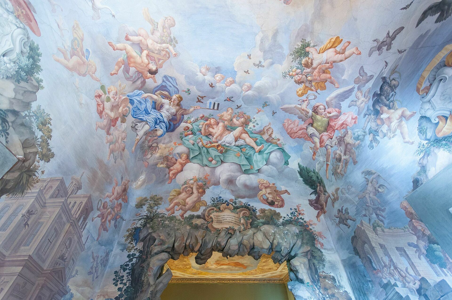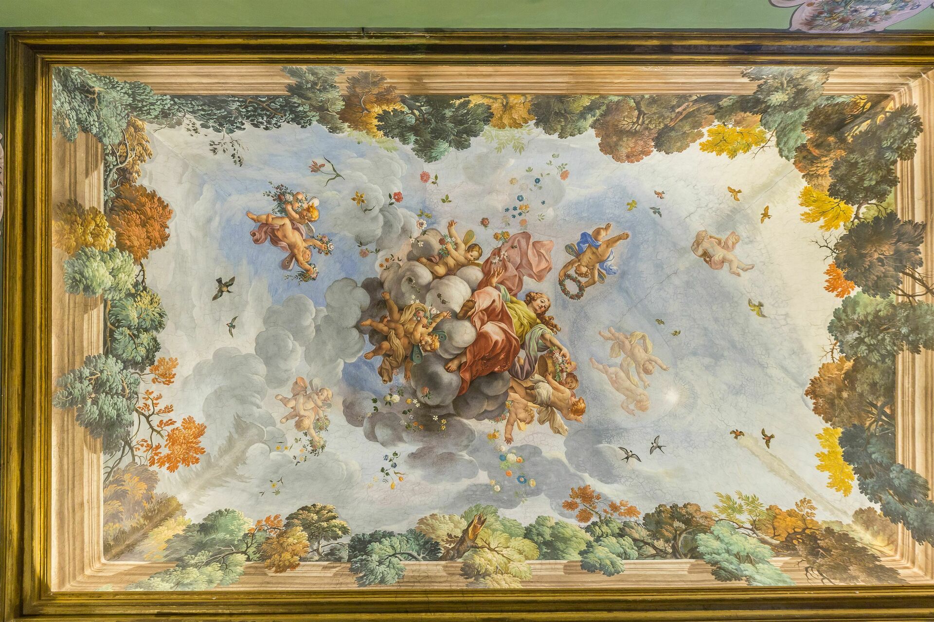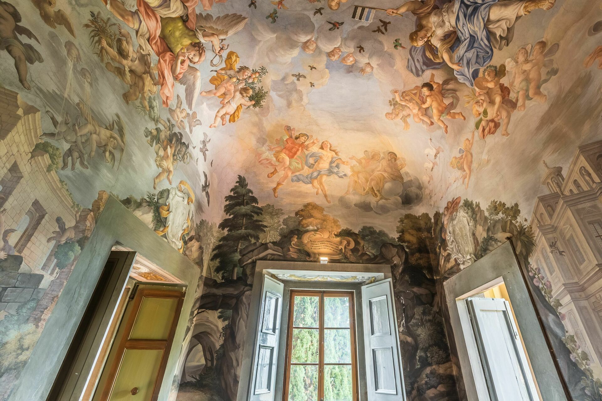 Denne leiligheten er sjarmerende innredet med fresker (takmalerier) fra 1600-tallet og har flott utsikt over hagen og det omkringliggende landskapet