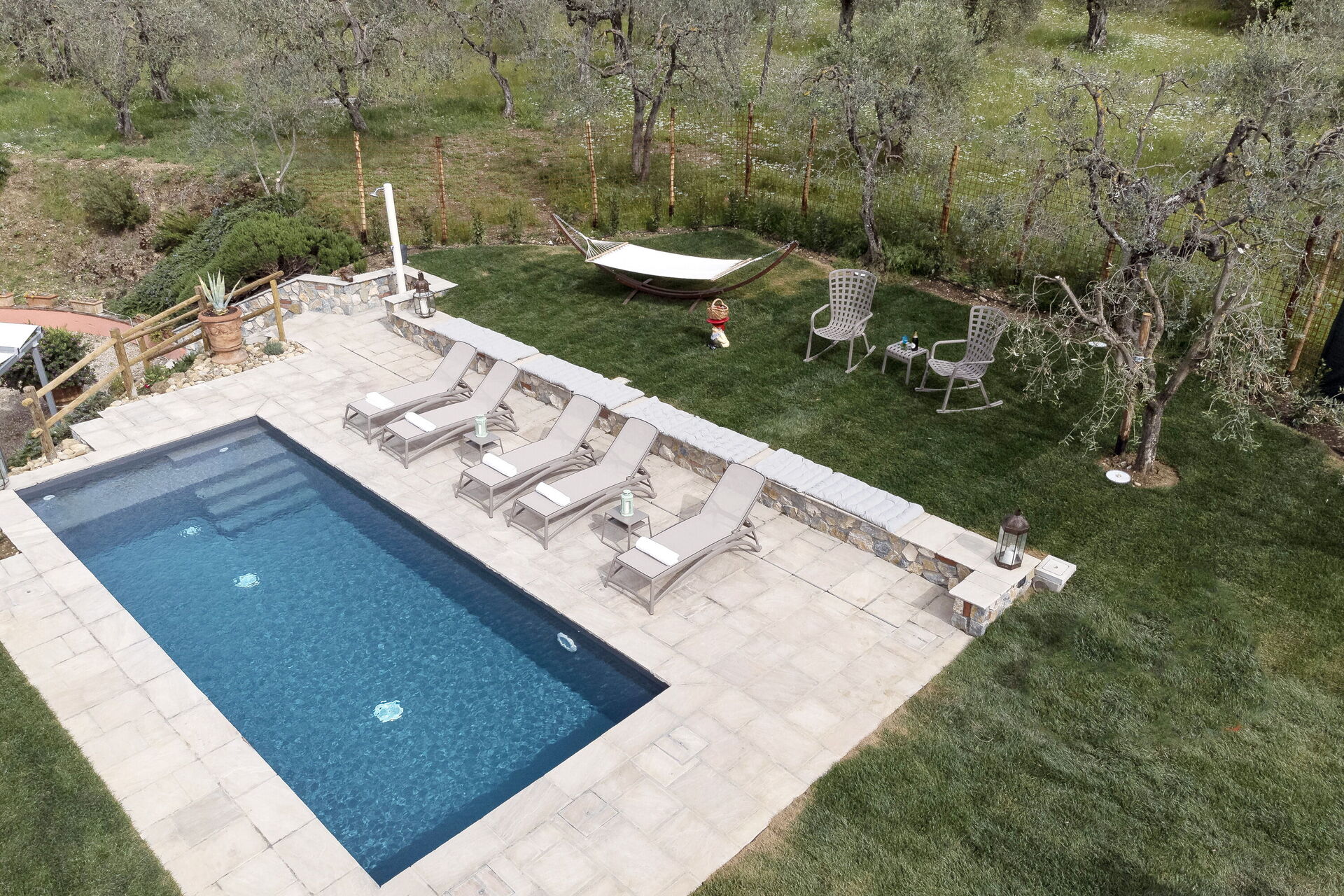 Vi er sikre på at du vil elske oppholdet ditt her i en opprinnelig bondegård fra år 1000 e.kr blant oliven- og sypresser, innlemmet i en ny, elegant og komfortabel design. Vi har restaurert eiendommen med tradisjonelle materialer, som gamle lokale steiner, trebjelker i taket og gamle terrakottagulv, for å oppnå en perfekt rustikk toskansk stil.