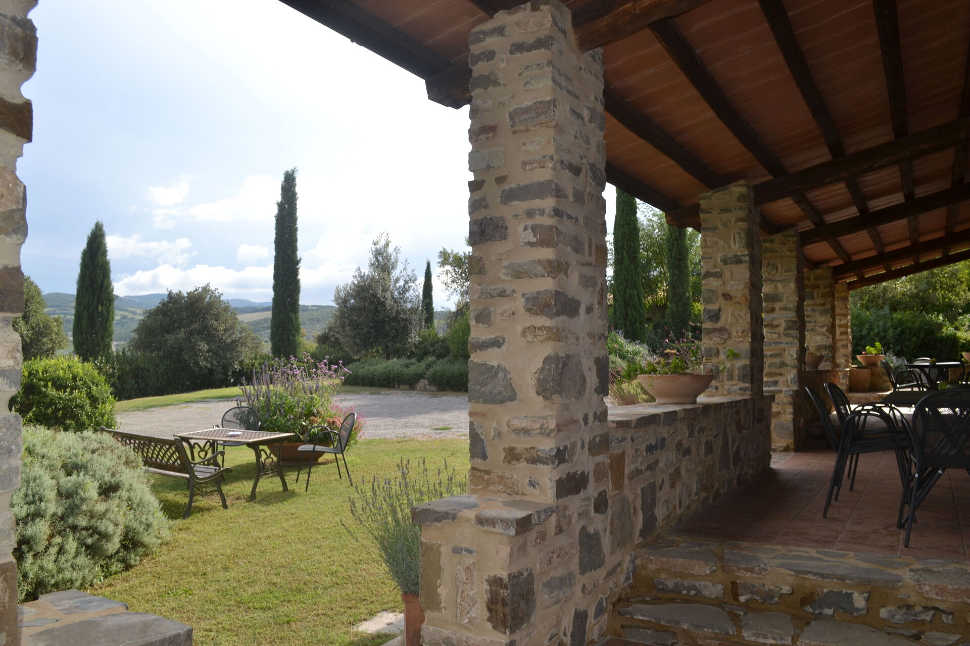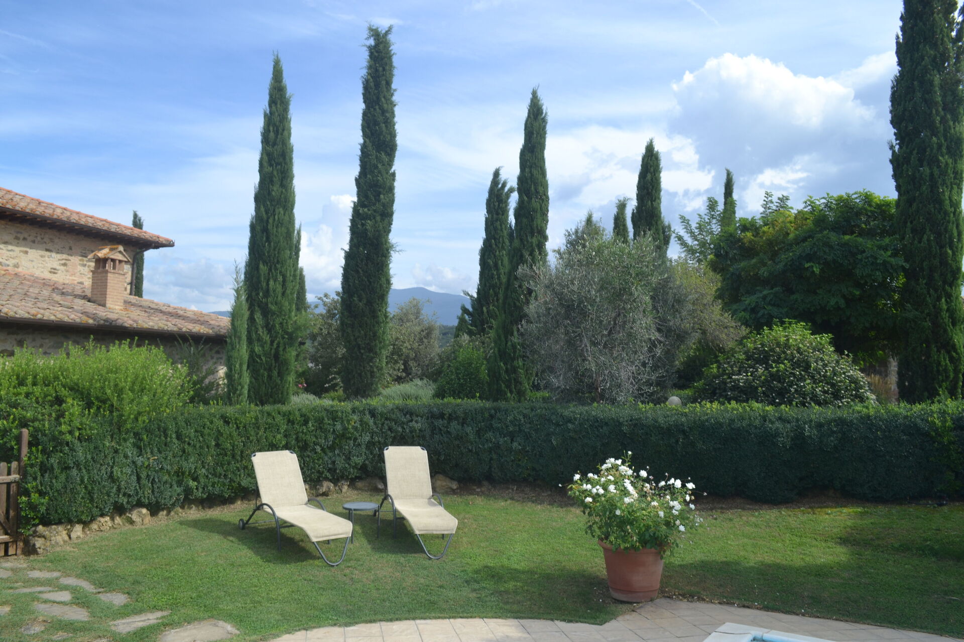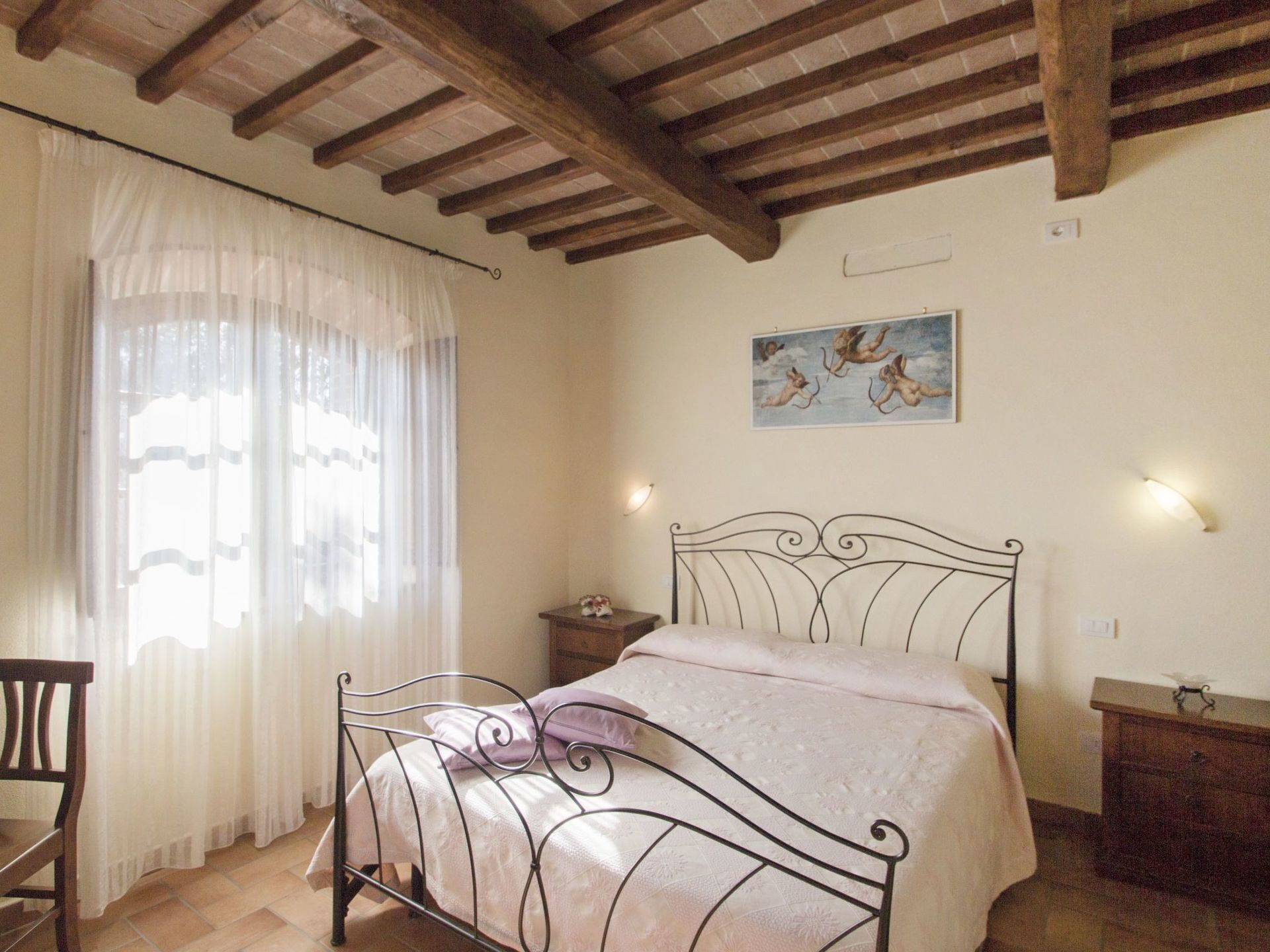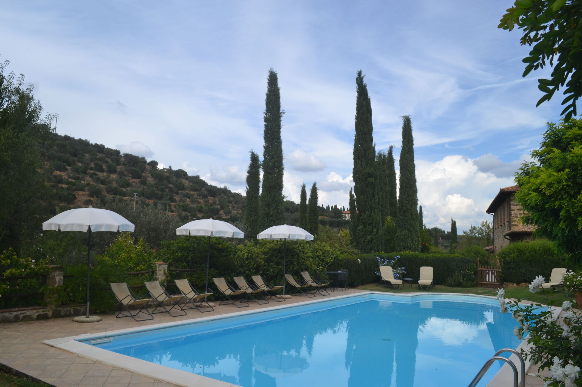 Podere Peteglia har store uteområder og innendørsarealer. Villaen har 7 soverom, hvert med eget privat bad, slik at det kan totalt huse opptil 16 personer.