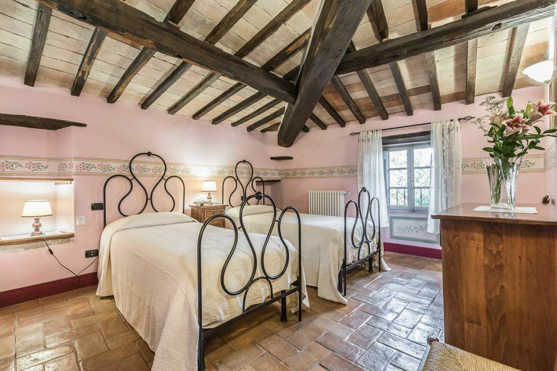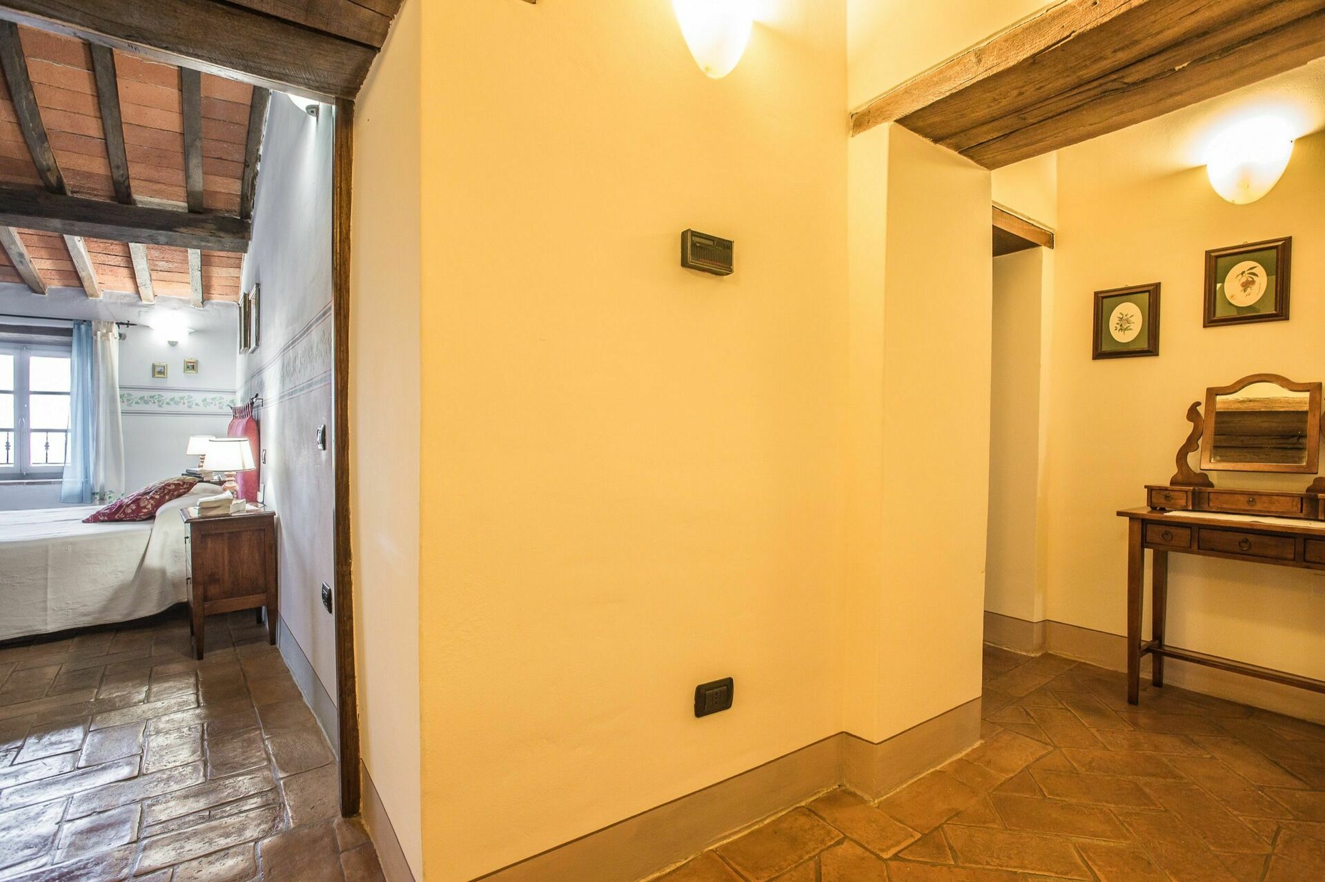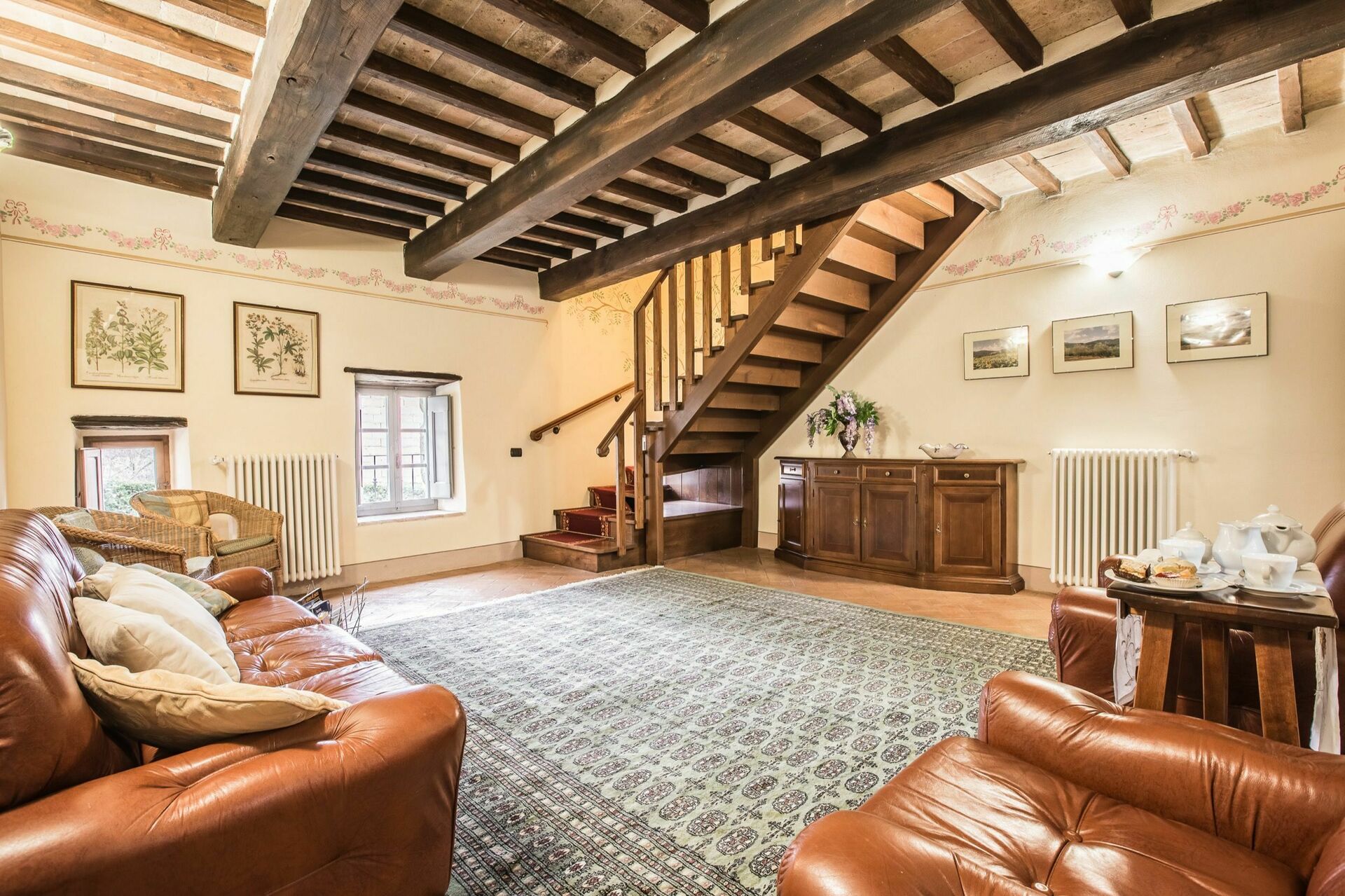 Tradisjonell toskansk stil har blitt opprettholdt etter den siste restaureringen av denne eiendommen. Tak og gulv er pent for seg gjort med terrakottafliser og tak med synlige trebjelker. De originale tredørene har alle blitt pent restaurert før de ble satt inn i huset igjen.