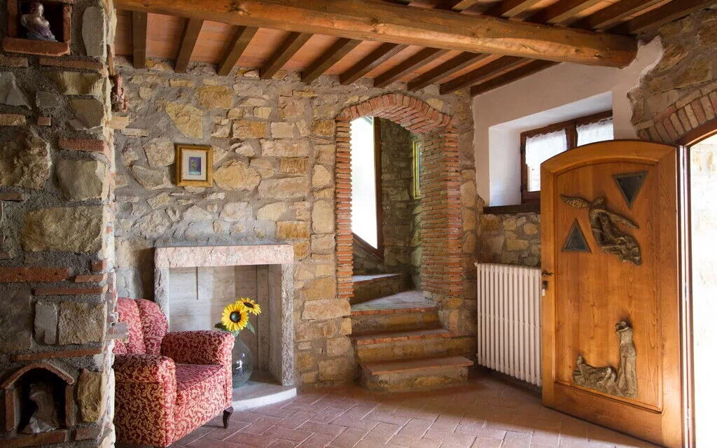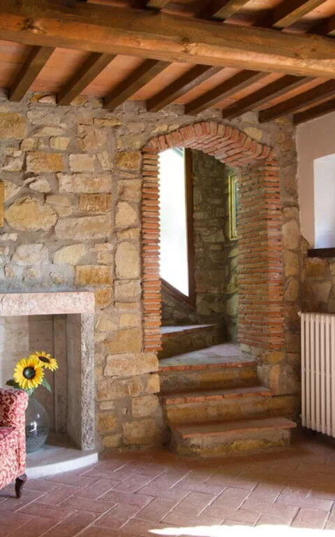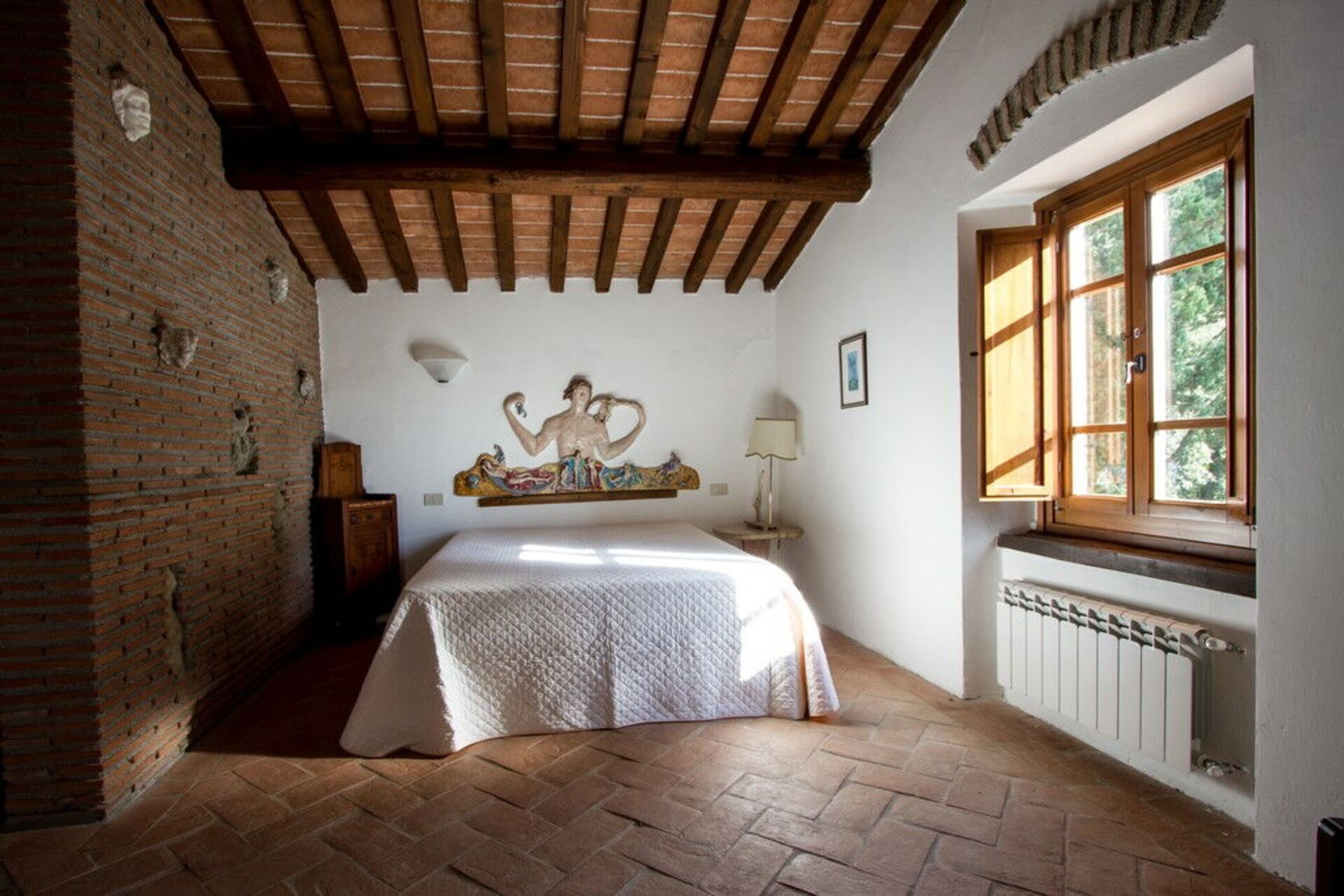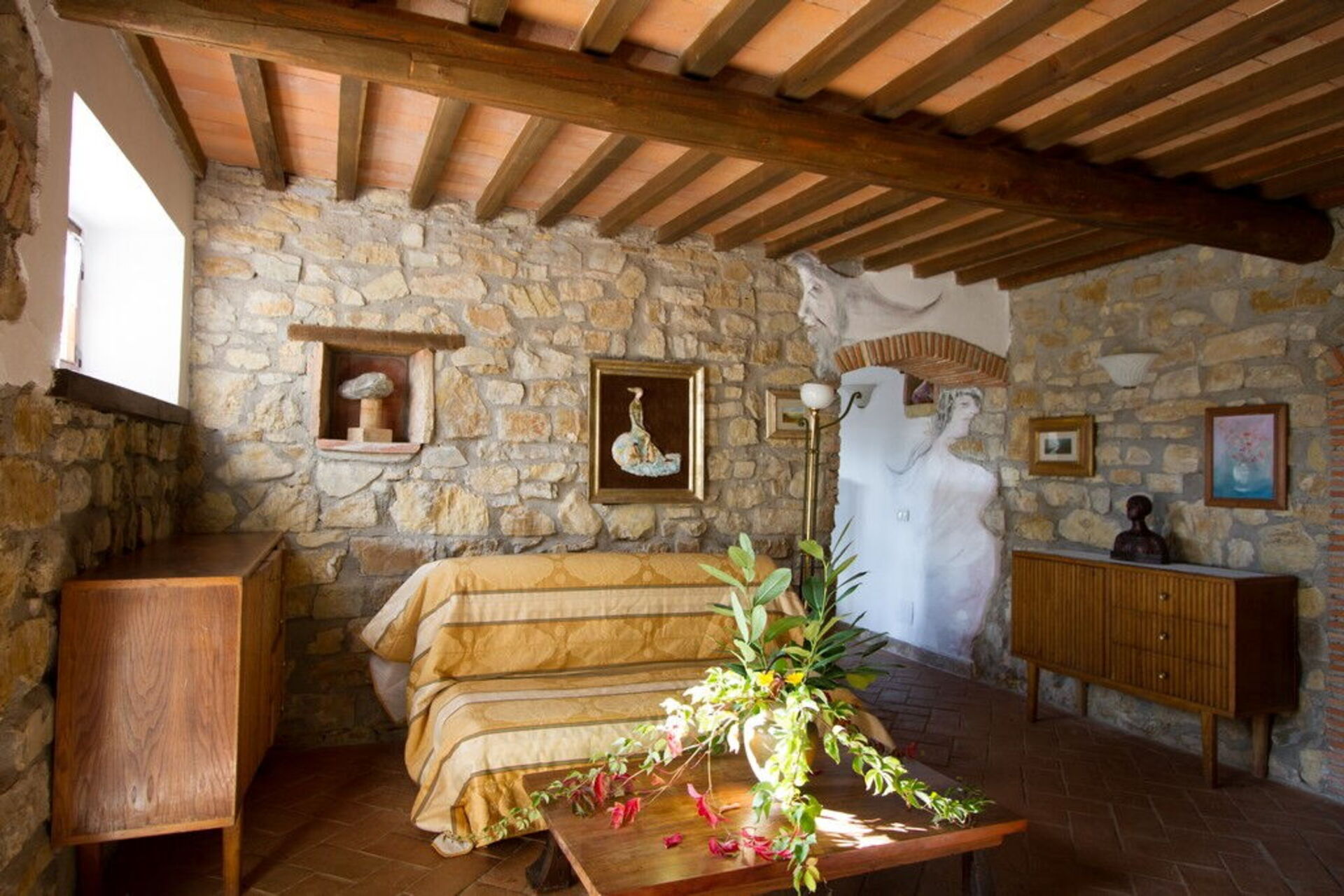 Andre etasje: (adkomst via trapp i stein og terrakotta): dobbeltrom, soverom med 1 enkeltseng, bad med dusj.