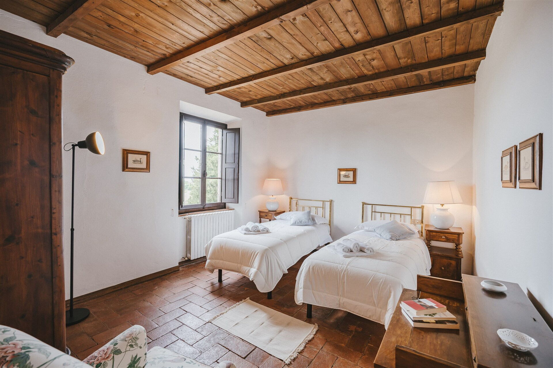 Andre etasje: stue, soverom med enkeltseng, soverom med 2 enkeltsenger, bad med dusj.