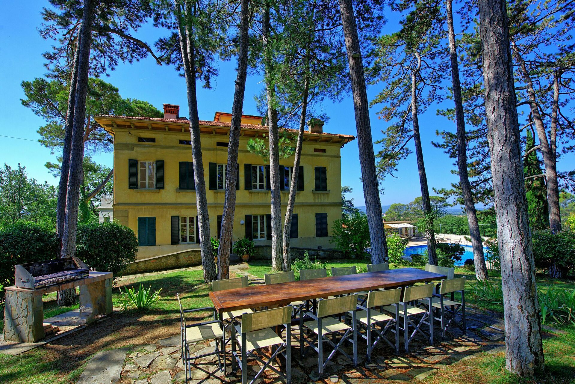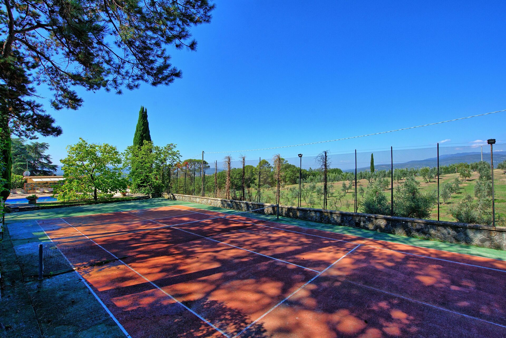 Huset har privat basseng i Toscana byr på store arealer både innendørs og utendørs. Eiendommen er et perfekt sted for en avslappende ferie: en stor park med tennisbane og et basseng med panoramautsikt, sikrer privatliv og glede for alle gjestene.