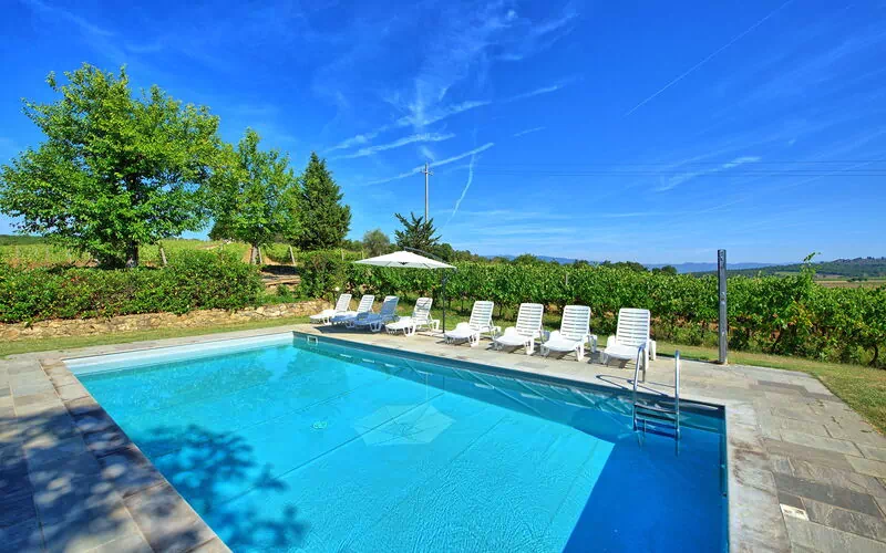 Scerfio er et sjarmerende og autentisk feriehus med basseng i Chianti.