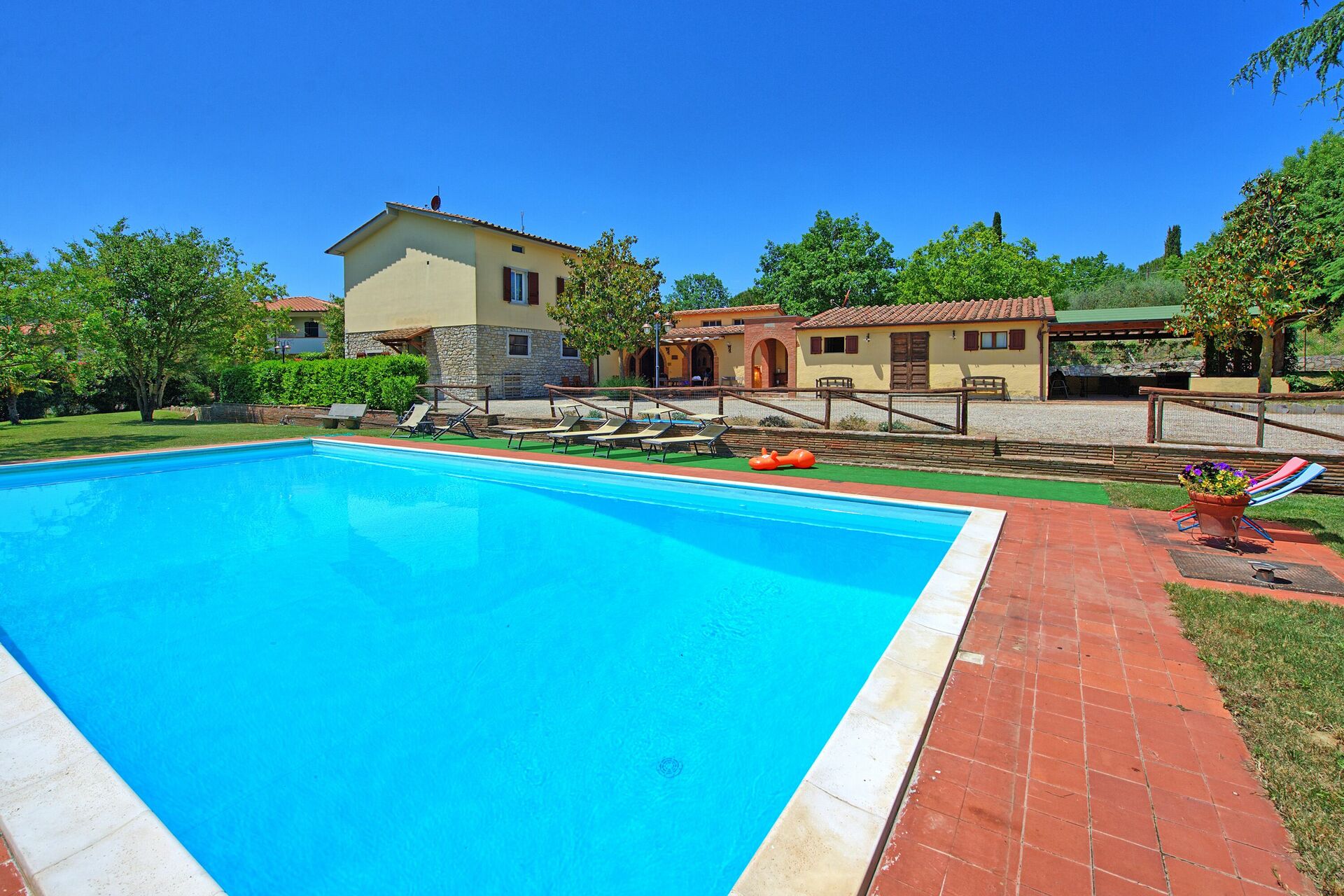 Very well located house in Tuscany. Everything is clean and user friendly. Pool is big enough + nice to have tennis court next to the house. The view on the hill is very charming