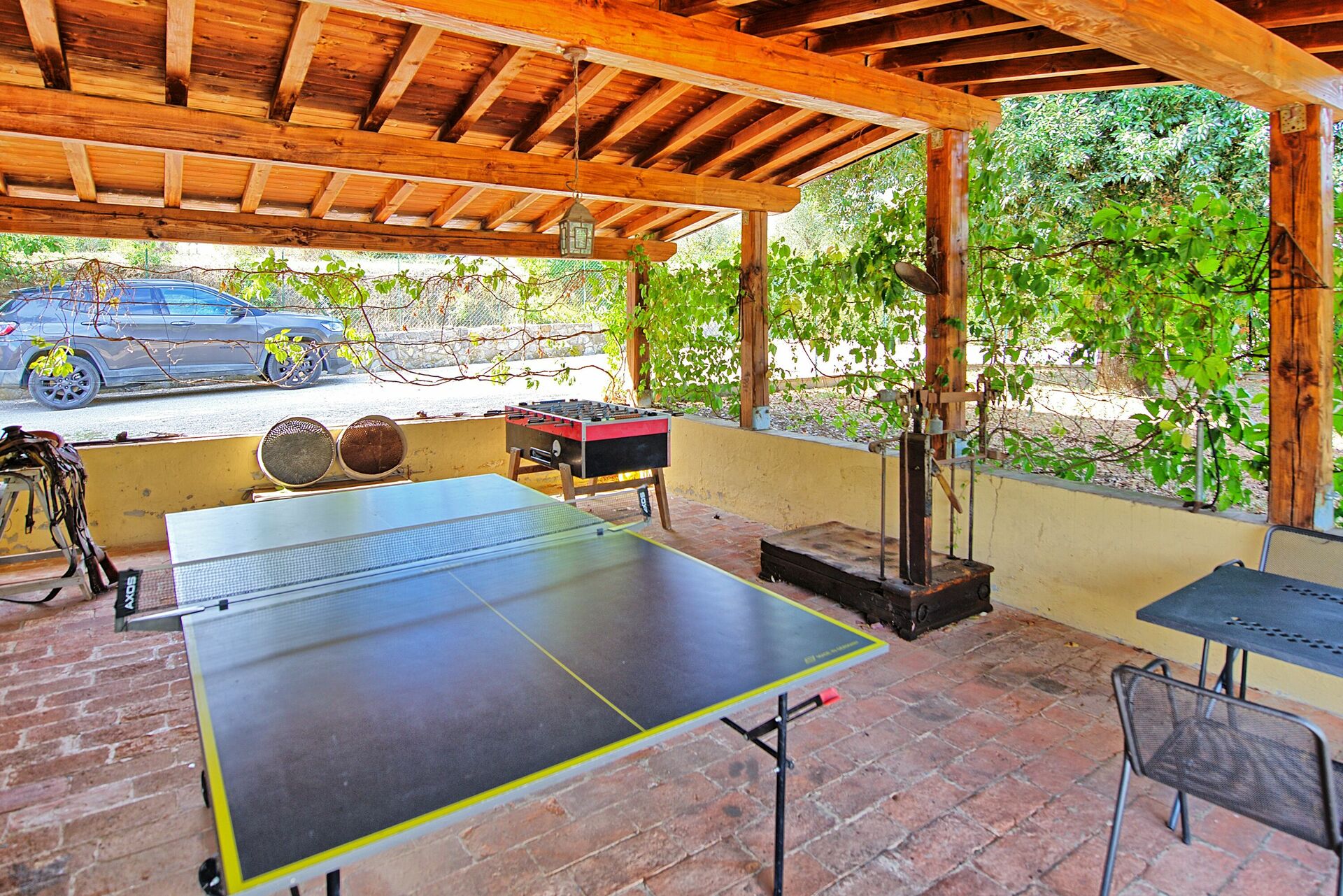 Feriehuset har 5 soverom, og har plass til opptil 9 gjester. Uteområdene består av svømmebasseng, hage og tennisbane. Et pizzeria og en bar ligger 150 meter fra huset.