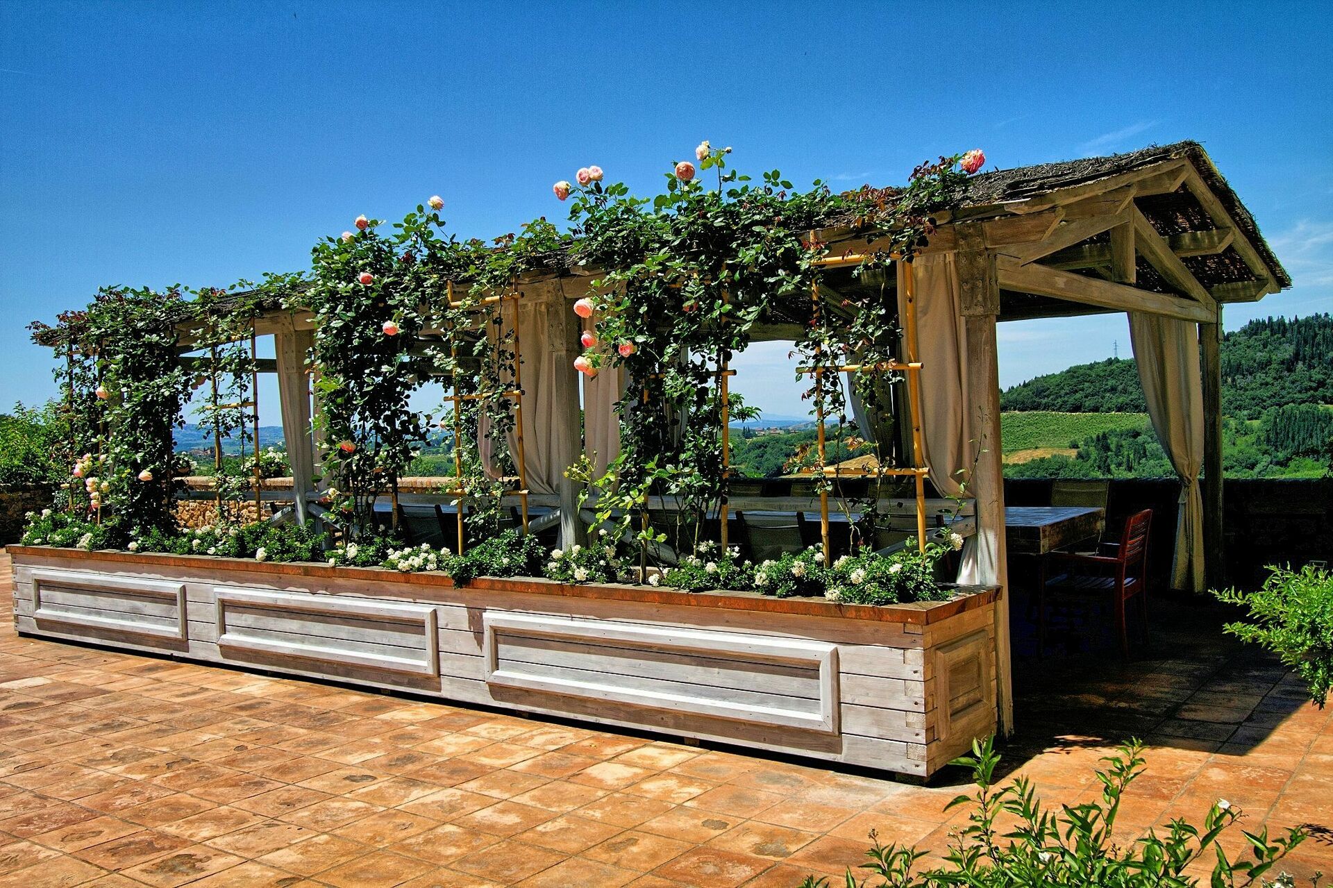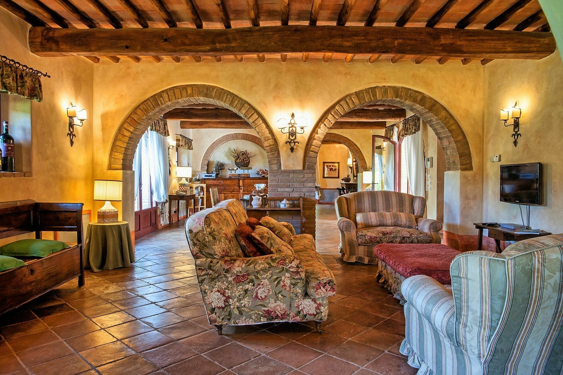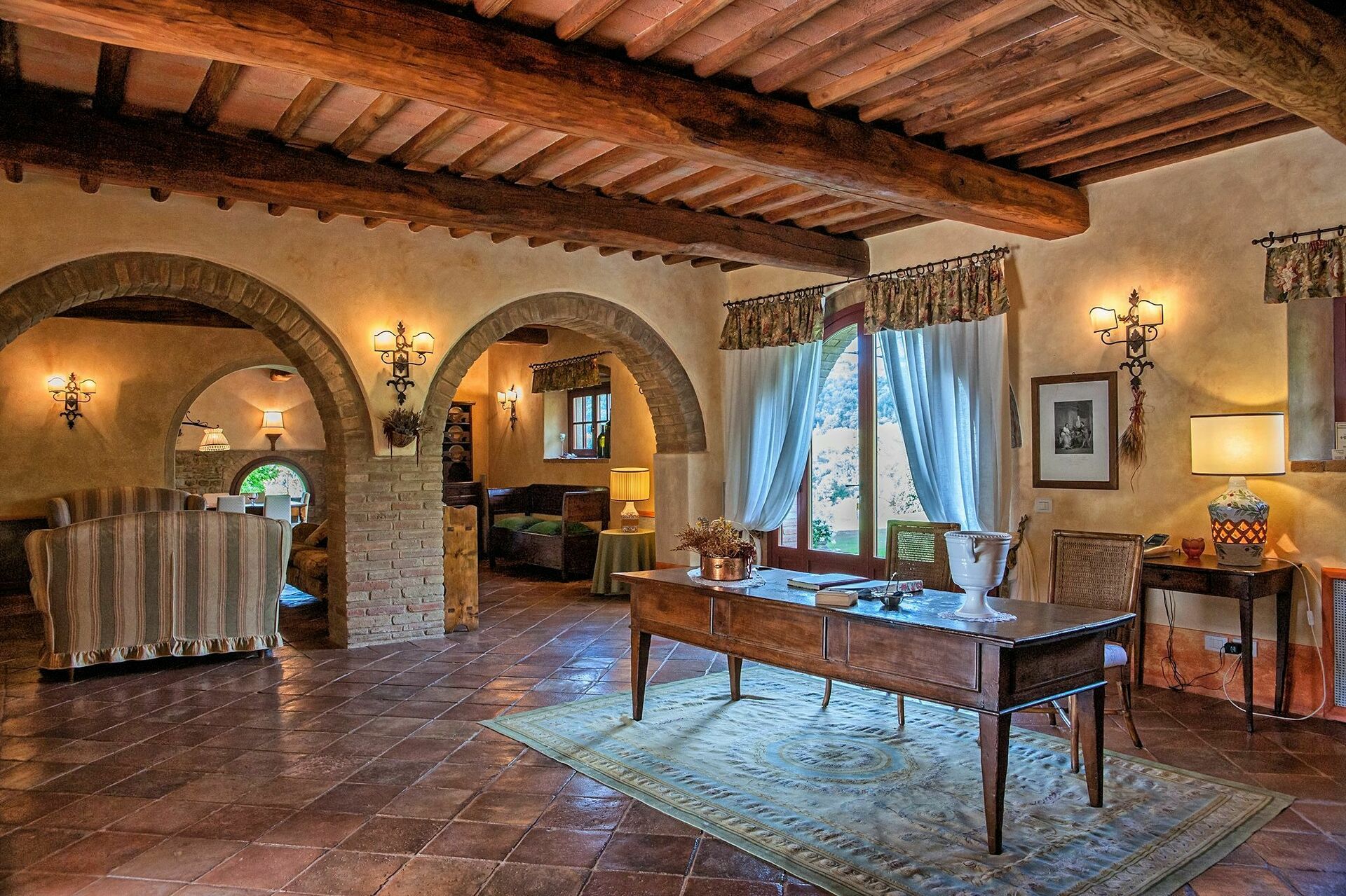 Nydelig privat villa med svømmebasseng på en fremtredende plass i det toscanske landscapet mellom Firenze og Siena. Fra eiendommen har man panoramautsikt til det vakre omkringliggende landskapet. Huset er nylig restaurert på en måte som har bevart den originale arkitekturen. Huset fremstår i dag som en elegant villa med 16 sengeplasser. Det er også mulig å huse 8 gjester til i de tilhørende uthusene på eiendommen slik at man totalt får 24 sengeplasser.