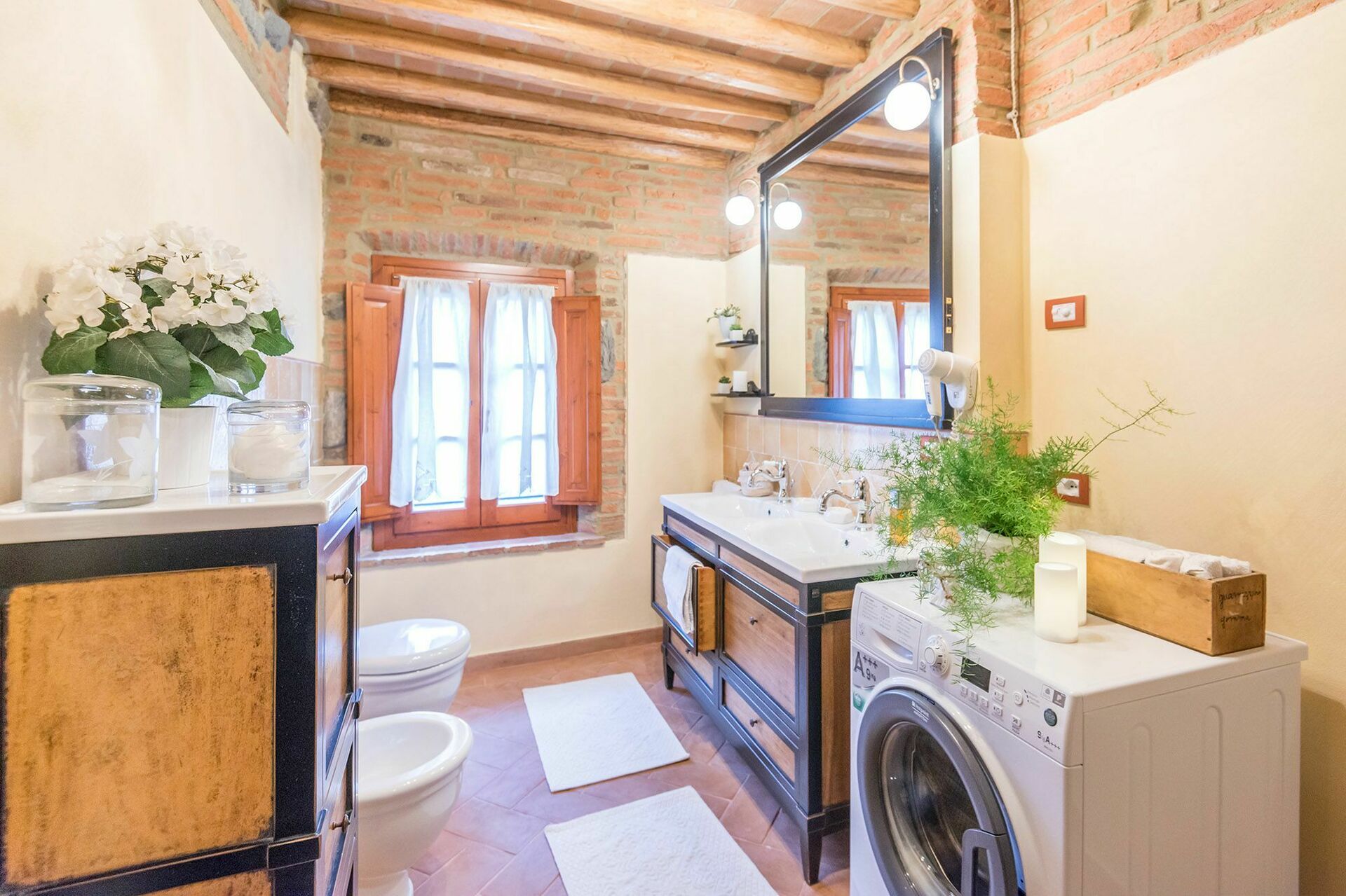 1 trinn opp: soverom med 2 enkeltsenger og eget bad med dusj, dobbelt soverom med eget bad og vaskemaskin.