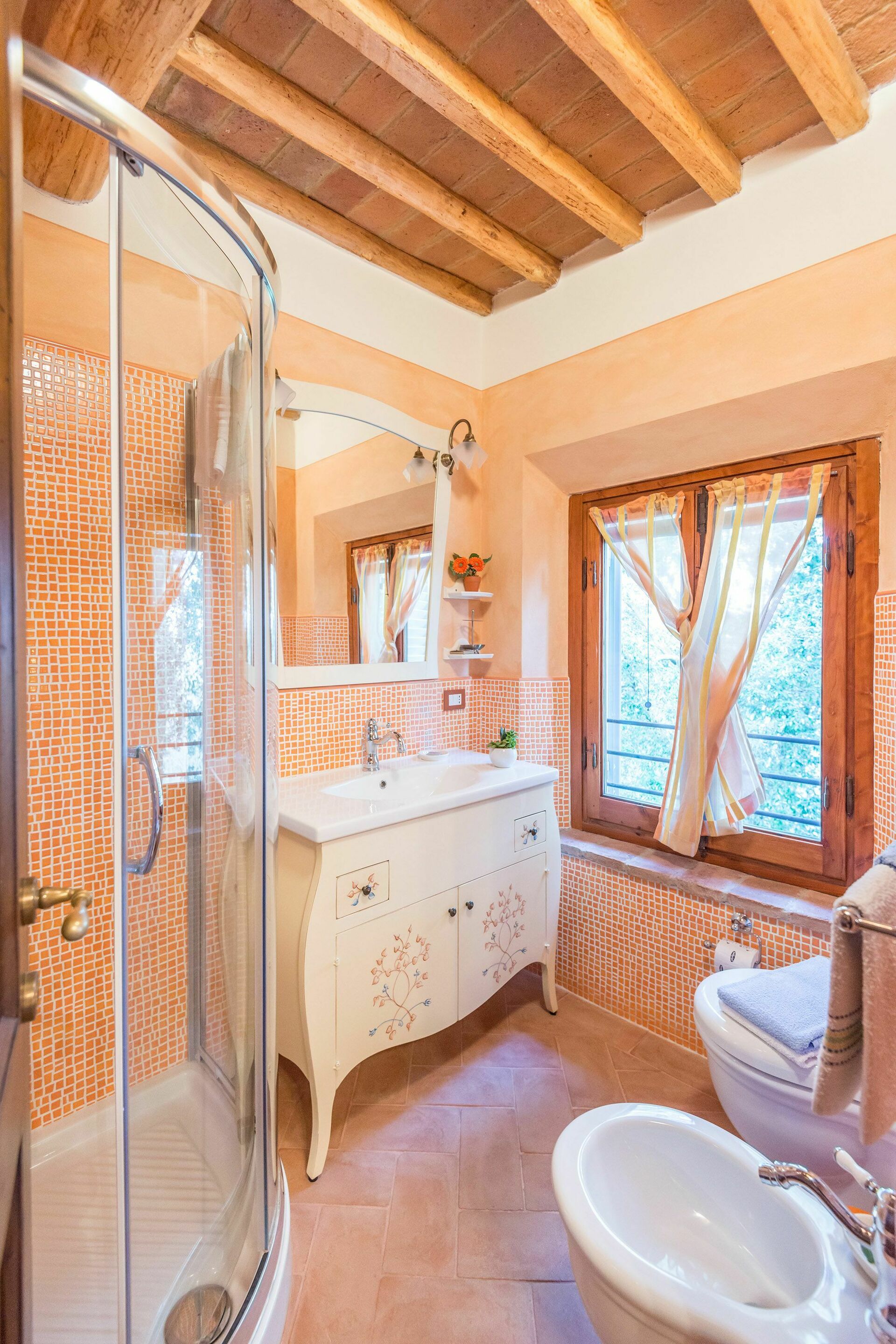 Andre etasje: stort loftsområde med 2 dobbeltsenger og 1 enkeltseng, 2 bad hver med dusj.