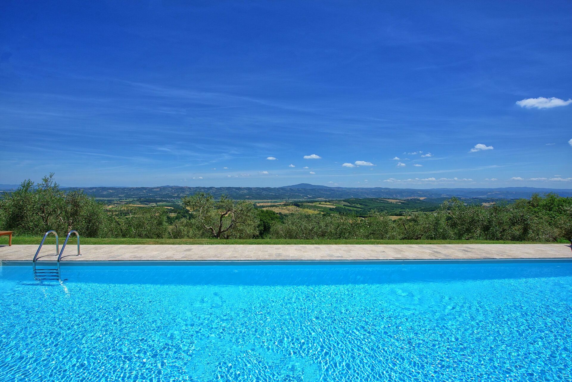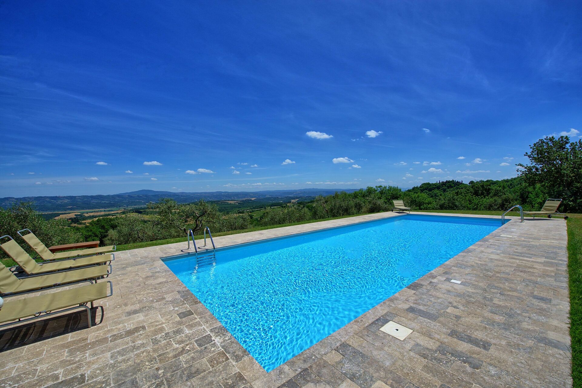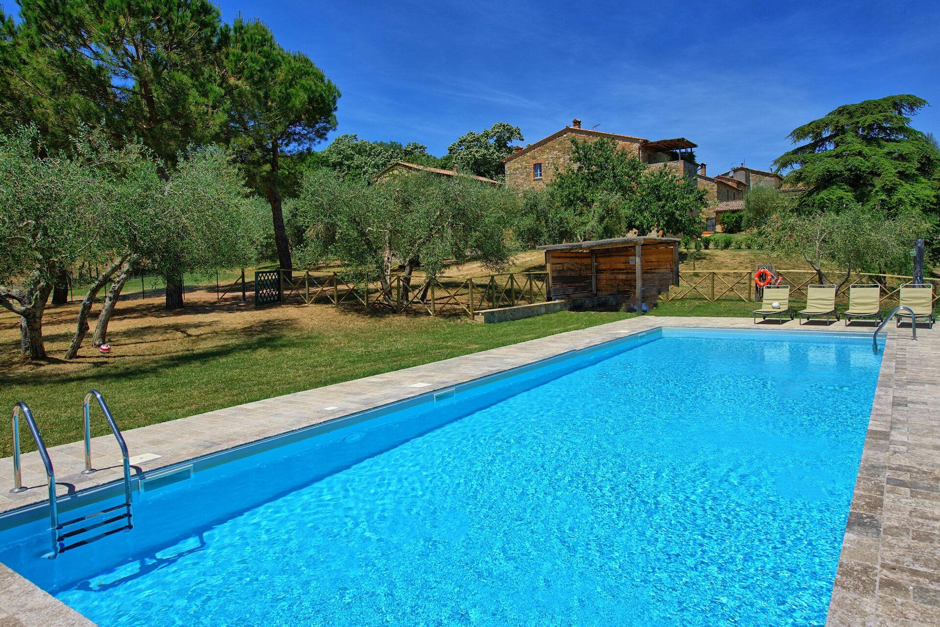 Nydelig feriehus med svømmebasseng i landlige omgivelser på åsene nær byen San Casciano dei Bagni i Toscana.