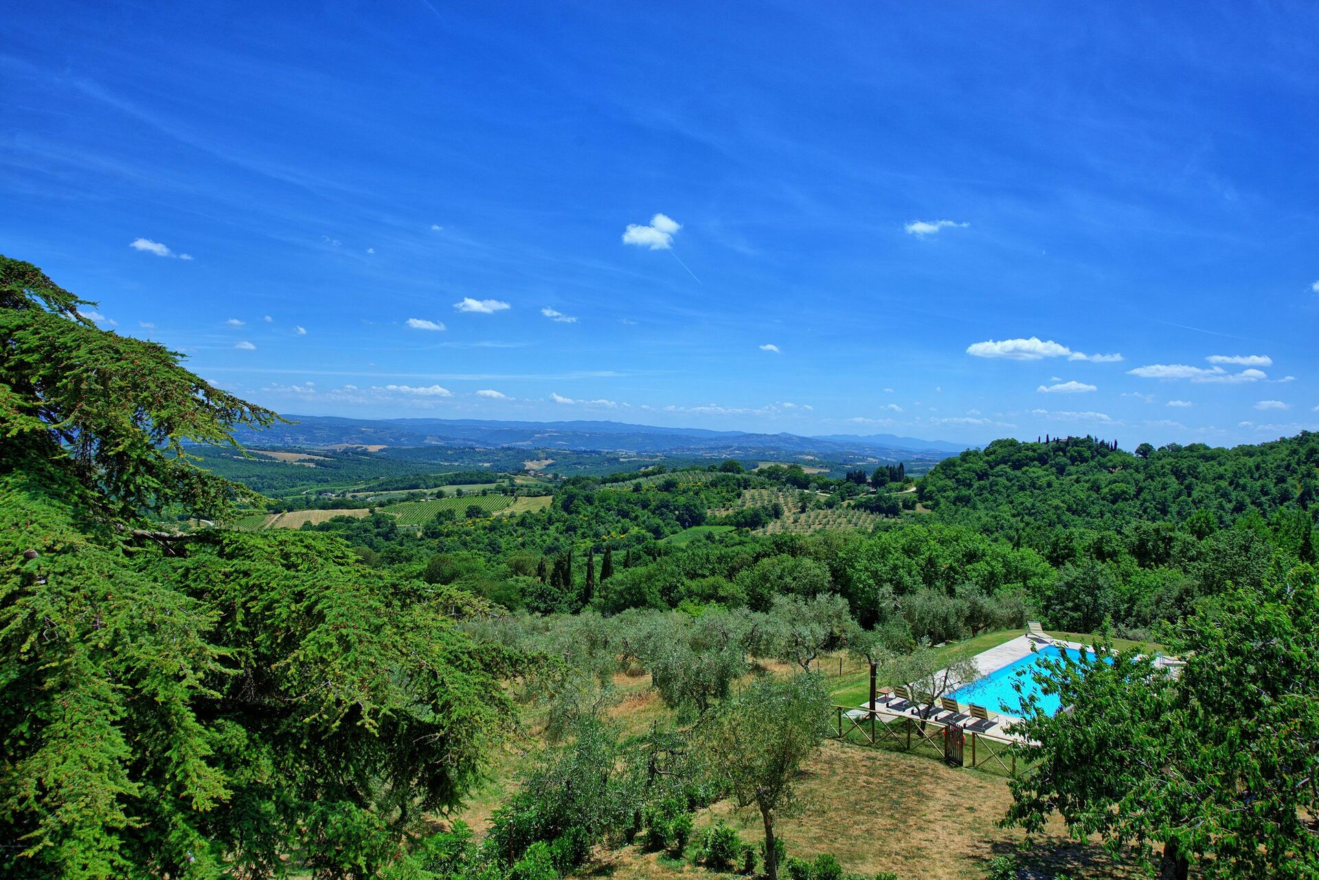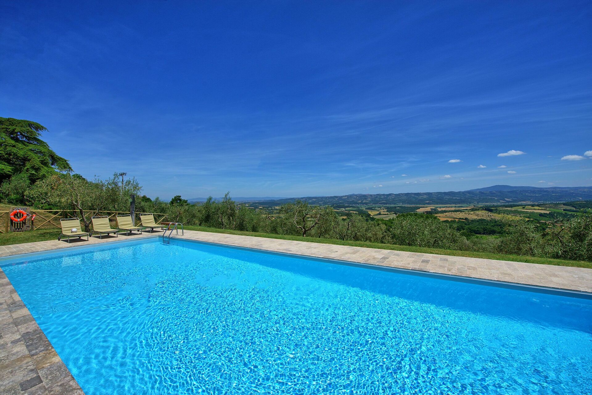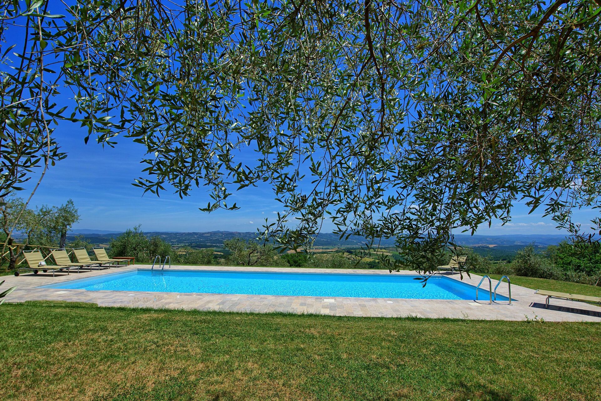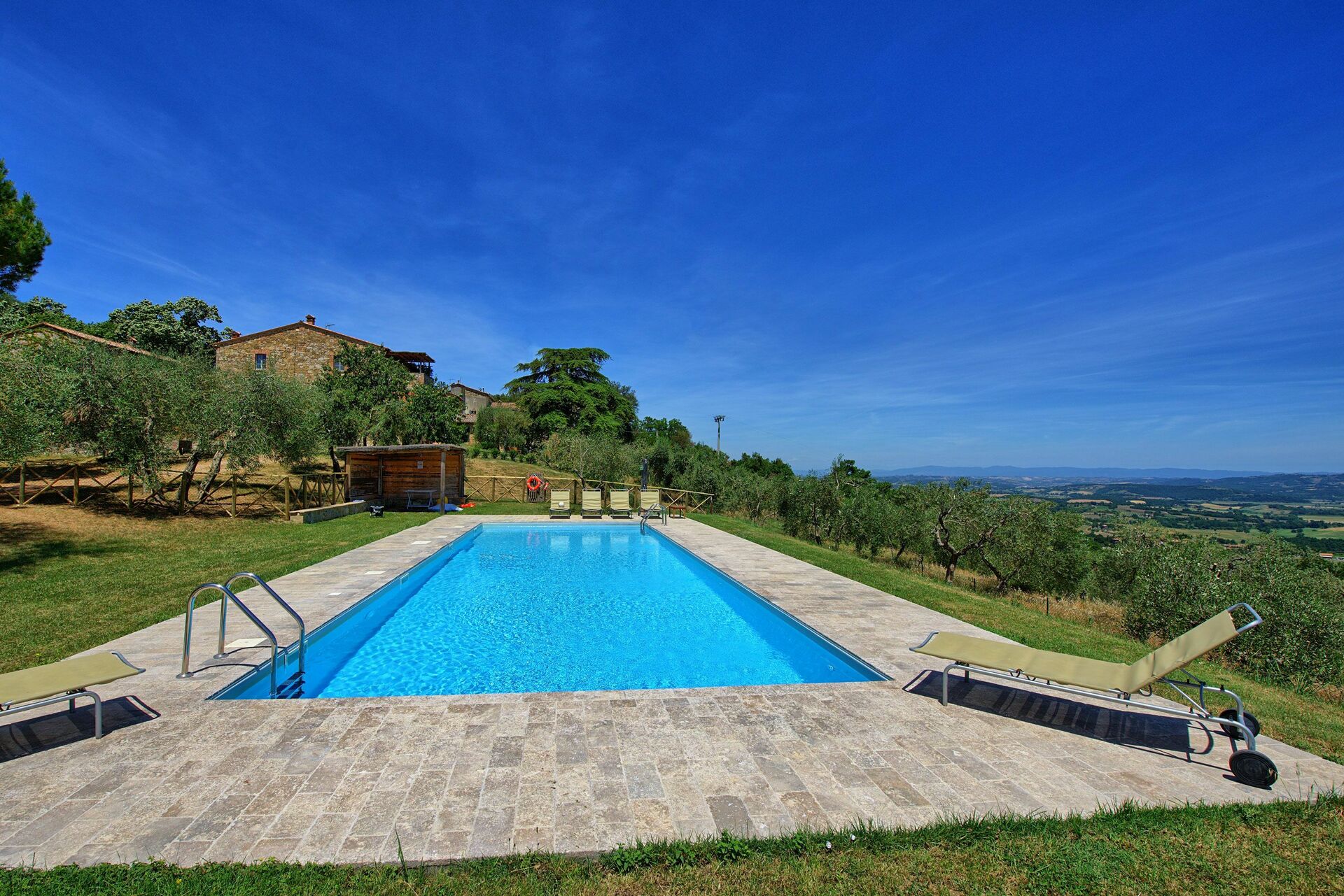 Nydelig feriehus med svømmebasseng i landlige omgivelser på åsene nær byen San Casciano dei Bagni i Toscana.
