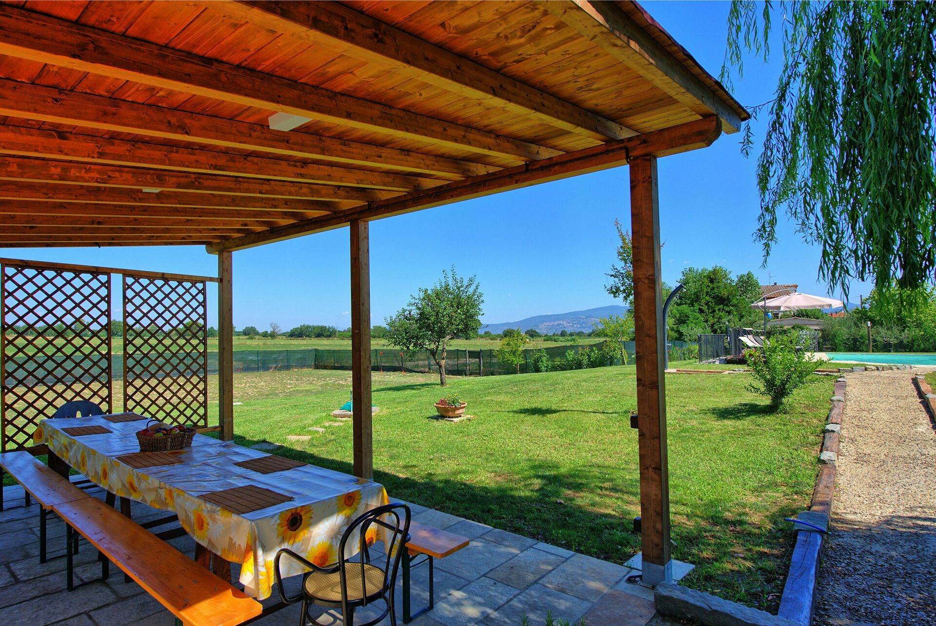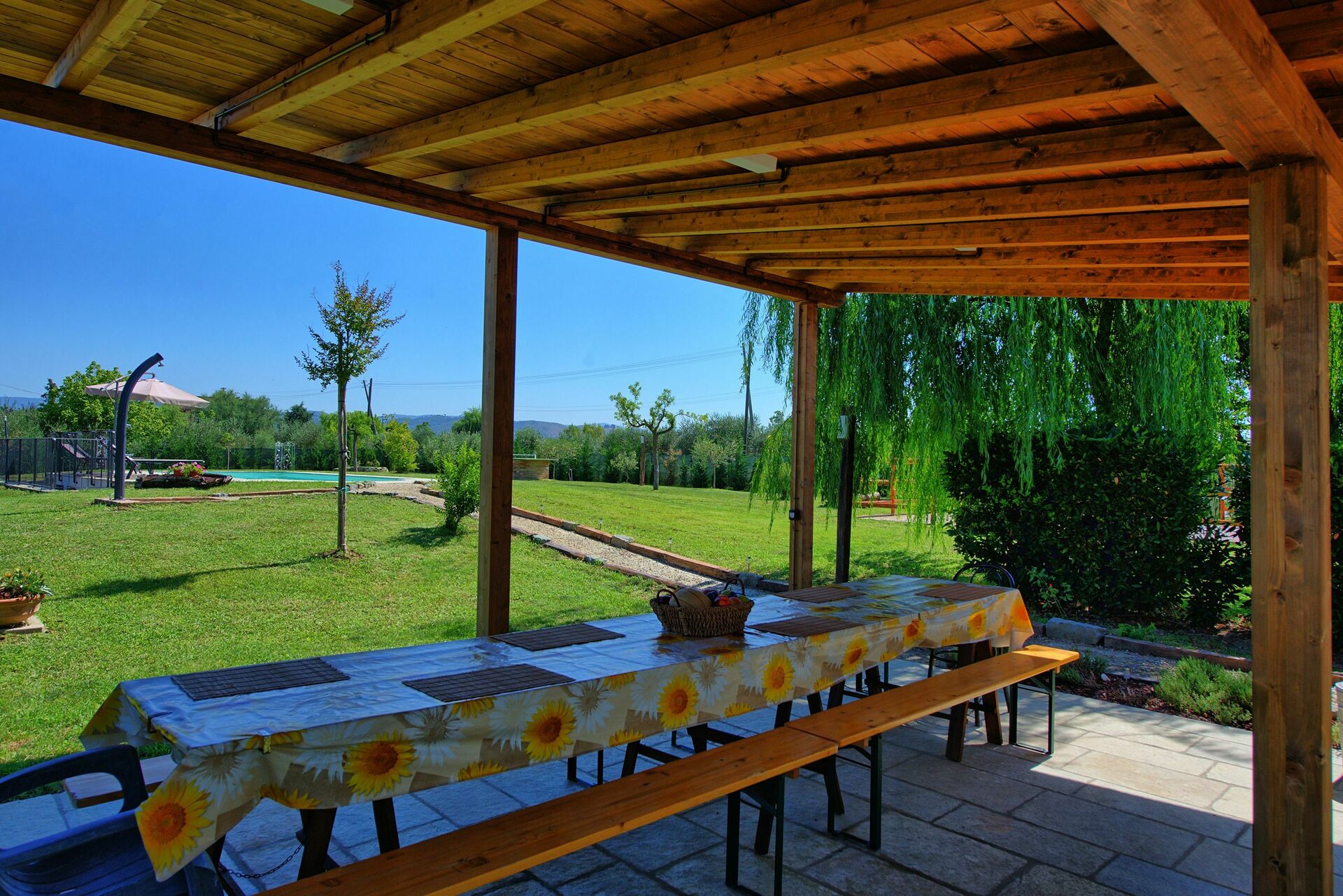 We loved the beautiful house and especially the wonderful garden with swimming pool and barbecue. Wine was harvested in the area and we were allowed to watch in a fattoria how the grapes were pressed and pumped into huge containers. It was a great experience.