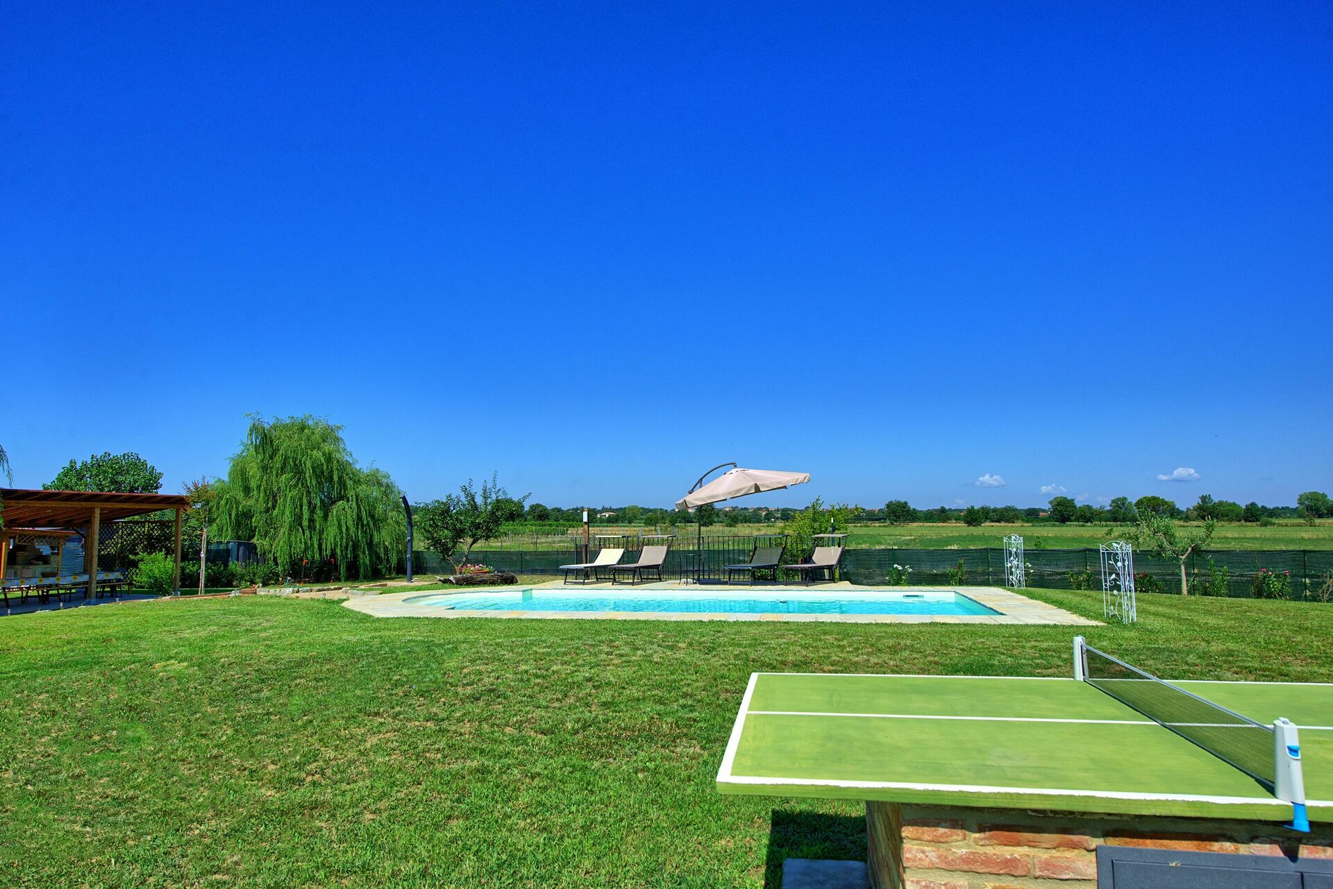Very spacious house. The owners live on the ground floor but the guests can use the garden and the pool for themselves. Airco is good. Pool and BBQ are good. The owners brought us a lot of vegetables from their garden. Pommodori, melons, onions, cucumbers, zucchini and melanzane.