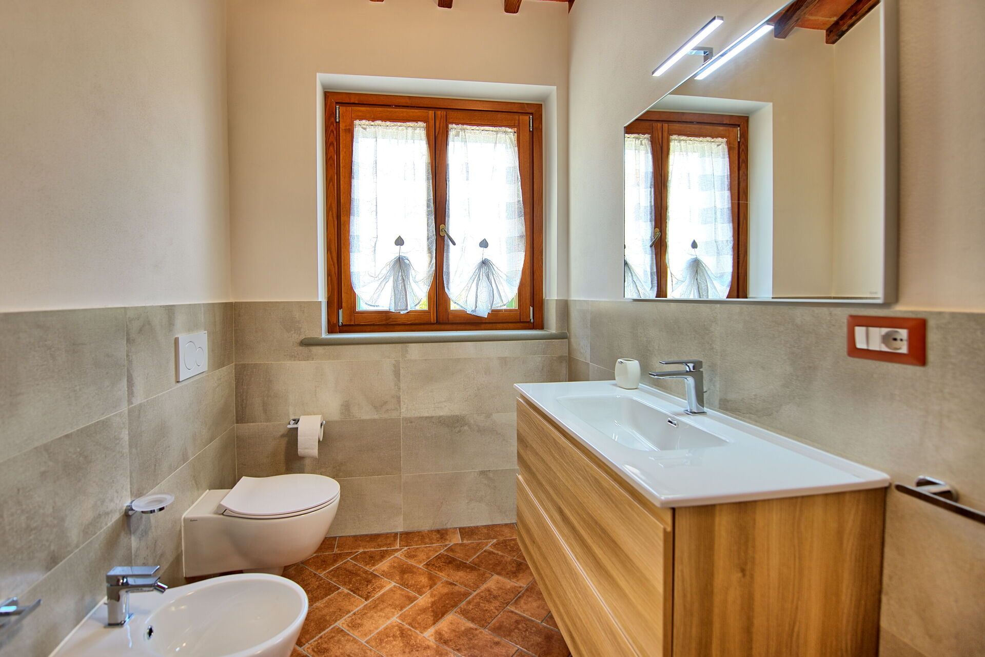 Our stay here was incredible in the peaceful and beautiful Italian countryside. The hosts were friendly and provided us with fresh homegrown tomatoes, melons, basil and olive oil. As per the listing description, the owners live on site but were friendly on arrival, kept to themselves but were really responsive when we accidentally locked ourself out of one of the flats! The kitchens were well equipped, everything was clean and well cared for. The outside space including the pool was beautiful. There were local shops we could drive to within 20 mins to pick up supplies. Would love to return!
