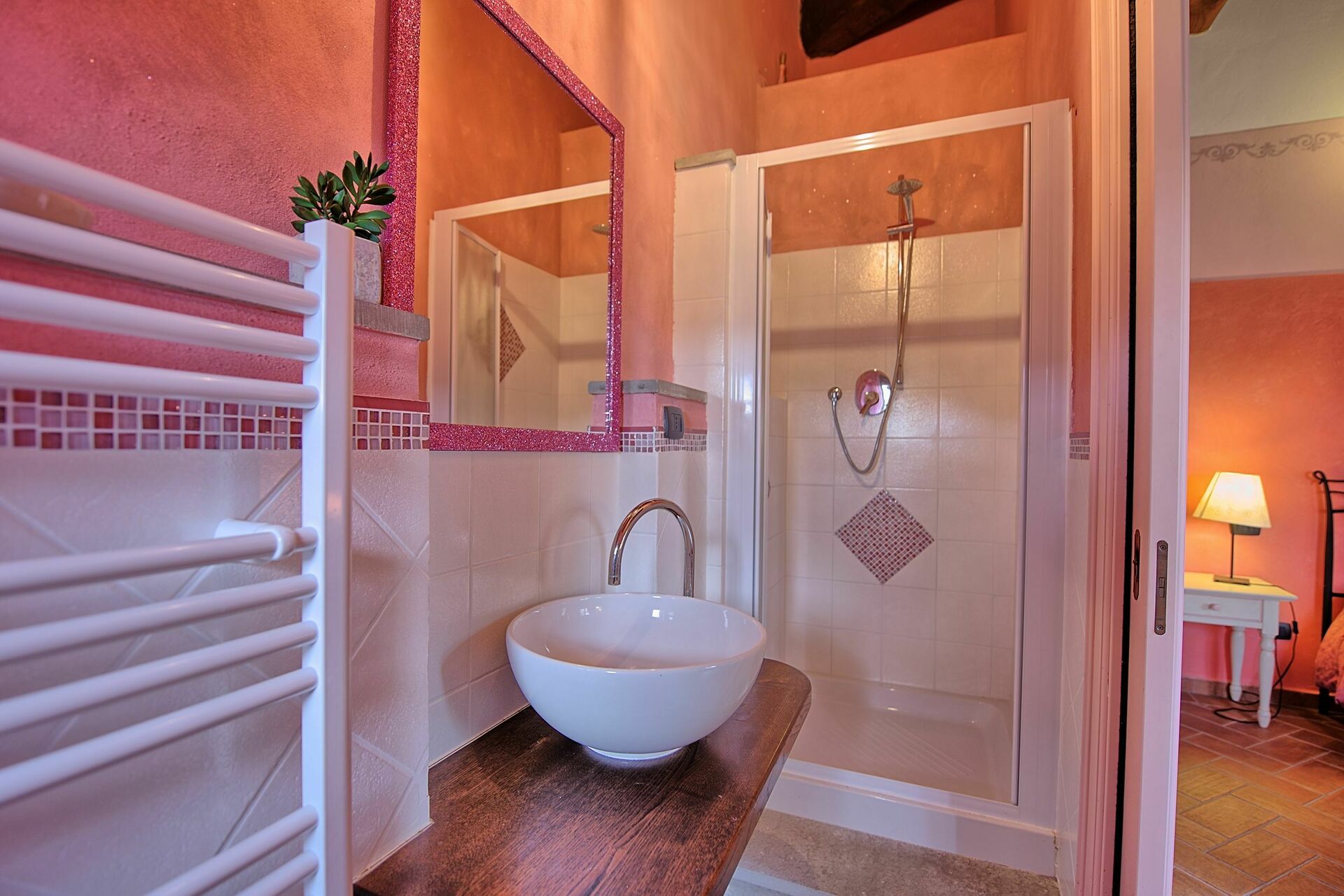 4 trinn nedenfor : dobbelt soverom med eget bad med dusj (ikke bidet), dobbelt soverom, bad med dusj og hydromassasjebad.