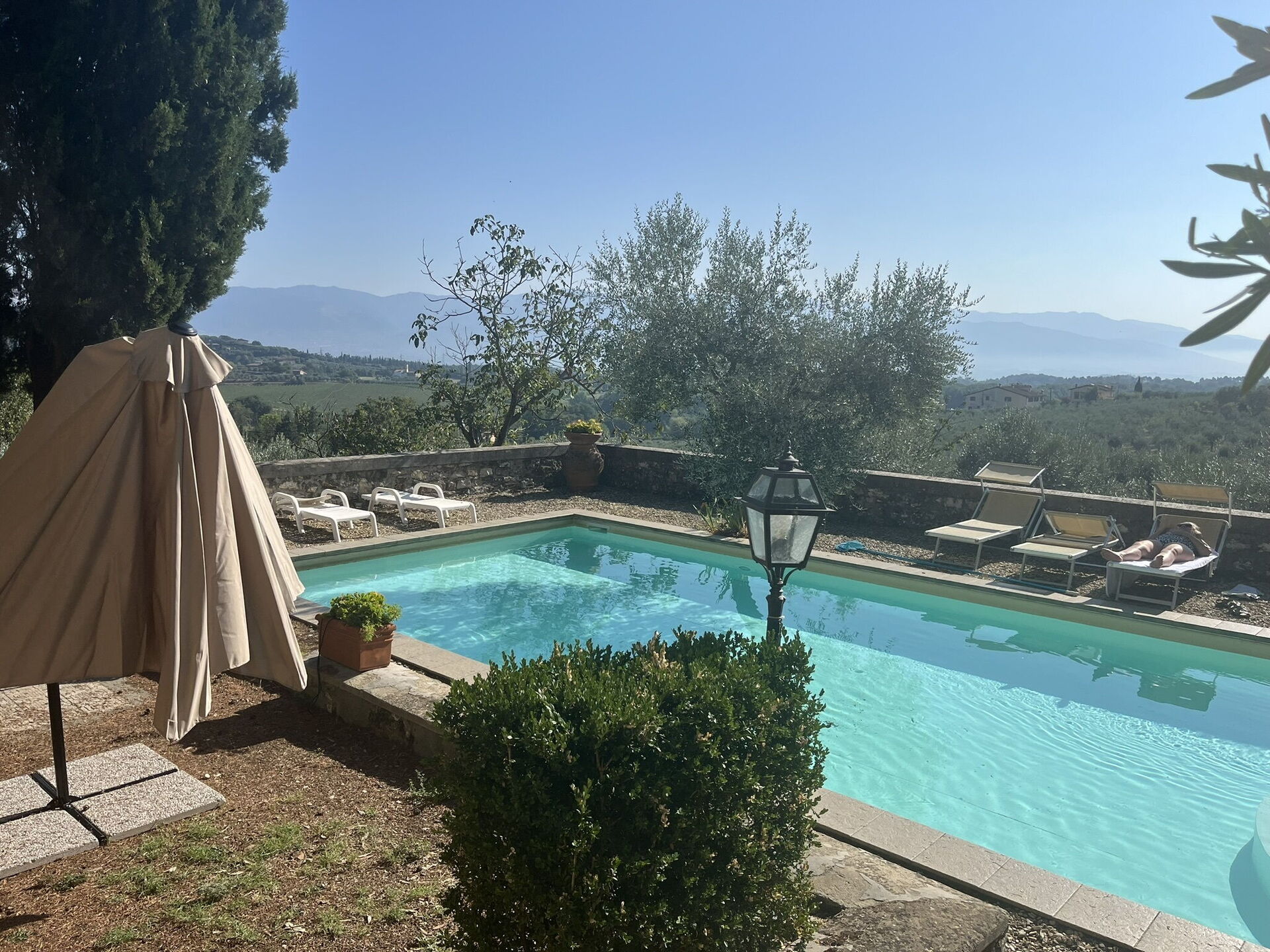 3. The pool itself was rather shallow and surrounded by cypress trees, lovely to look at but regularly needed pine needles removing. This was only undertaken once during our two week stay. We did it the rest of the time. The dirty water led to an ear infection for one of our party.