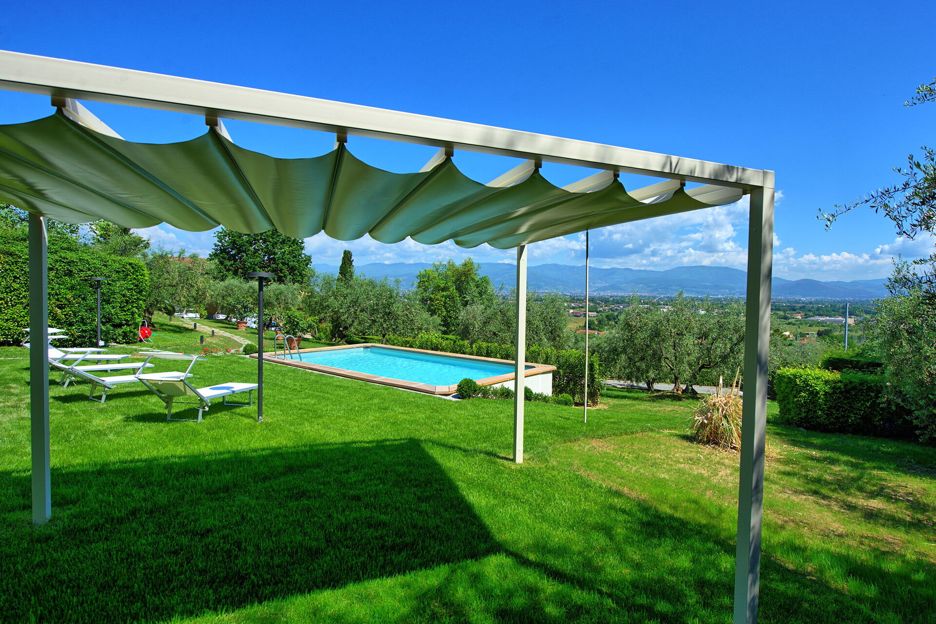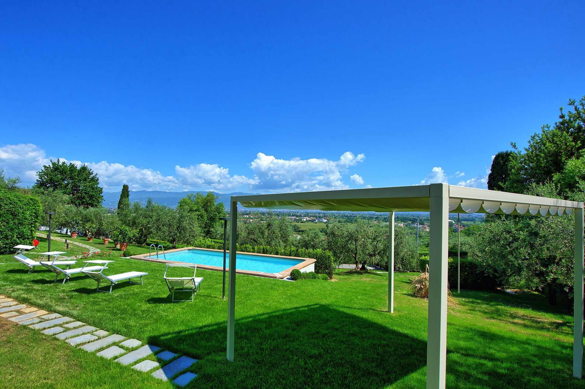 På uteområdet finner man en velstelt hage med et privat, frittstående saltvannsbasseng, solsenger og parasoller – det perfekte stedet for å slappe av eller kjøle seg ned på varme sommerdager. En vinterhage med store vinduer har en grill, bord og stoler for å kunne nyte måltider med utsikt mot den fantastiske omkringliggende landsbygden, med utsikt fra Abetone til Firenze.