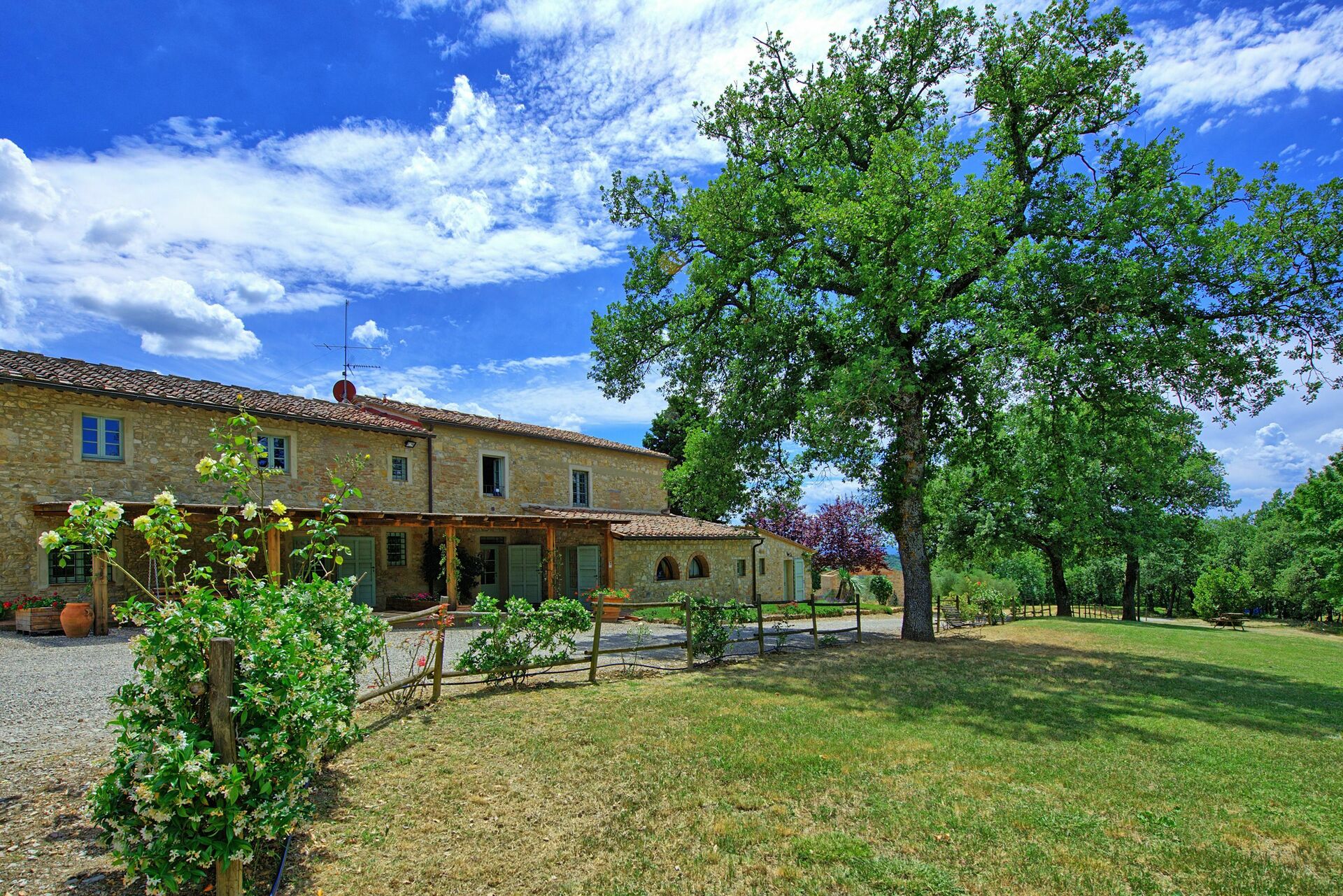 Eiendommen består av 2 komfortable leiligheter som er nyrestaurerte og smakfullt innredet. Vakre vingårder og olivenlunder omgir eiendommen og produserer utmerket Chianti Classico-vin og olivenolje (mulighet for å smake og å kjøpe). Leilighetene ligger blant grønne åser, i gangavstand til den lille byen San Donato som kan tilby gode restauranter, pizzeriaer og diverse butikker.