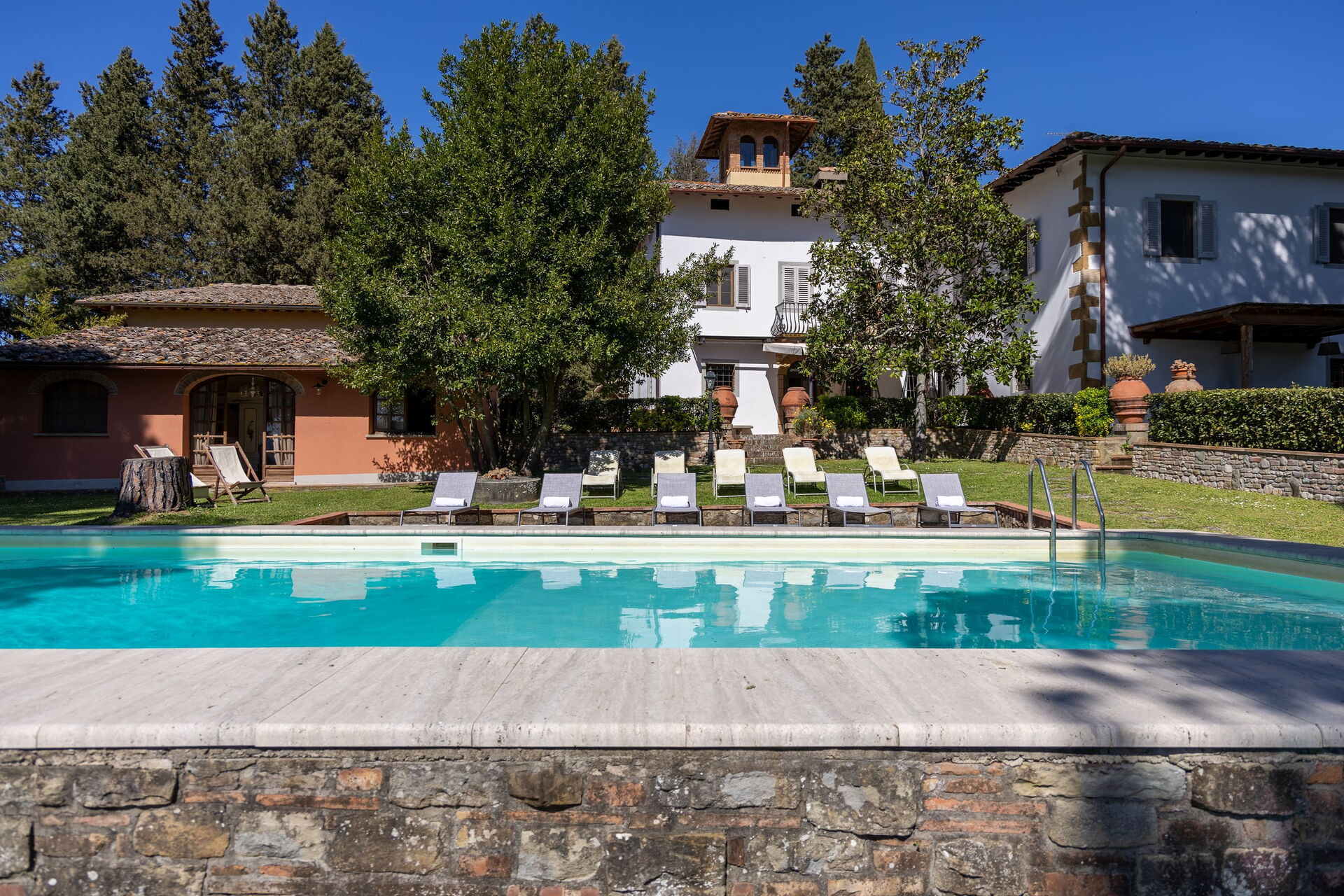 De 8 soverommene er en hyllest til klassisk toskansk stil, med eksklusive møbler og full aircondition. Fordelingen av rom mellom hovedhuset og det private annekset ved bassenget gjør at man får en perfekt balanse mellom sosiale stunder og privatliv. De fleste av rommene har private bad knyttet til seg.