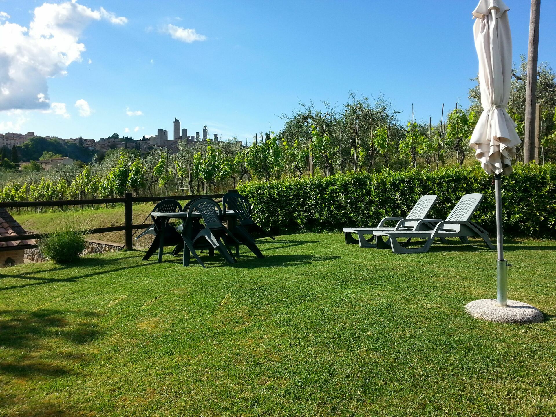 San Gimignano ligger bare 1 km unna og kan enkelt nås til fots via en landevei med flott utsikt.