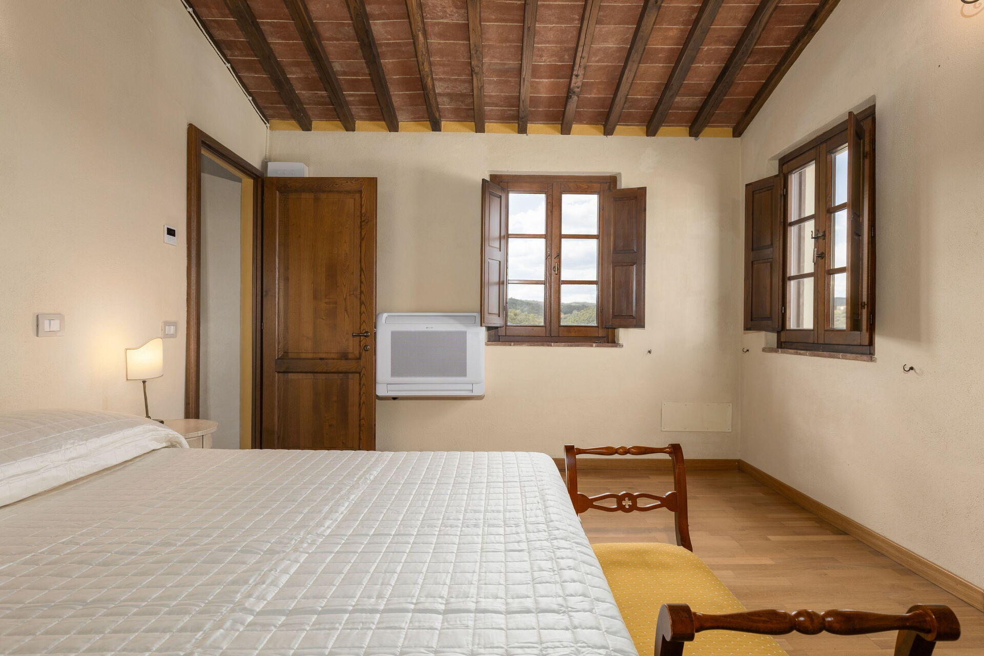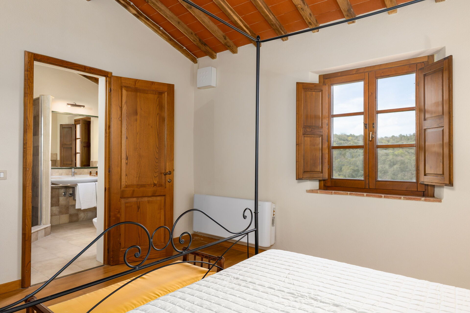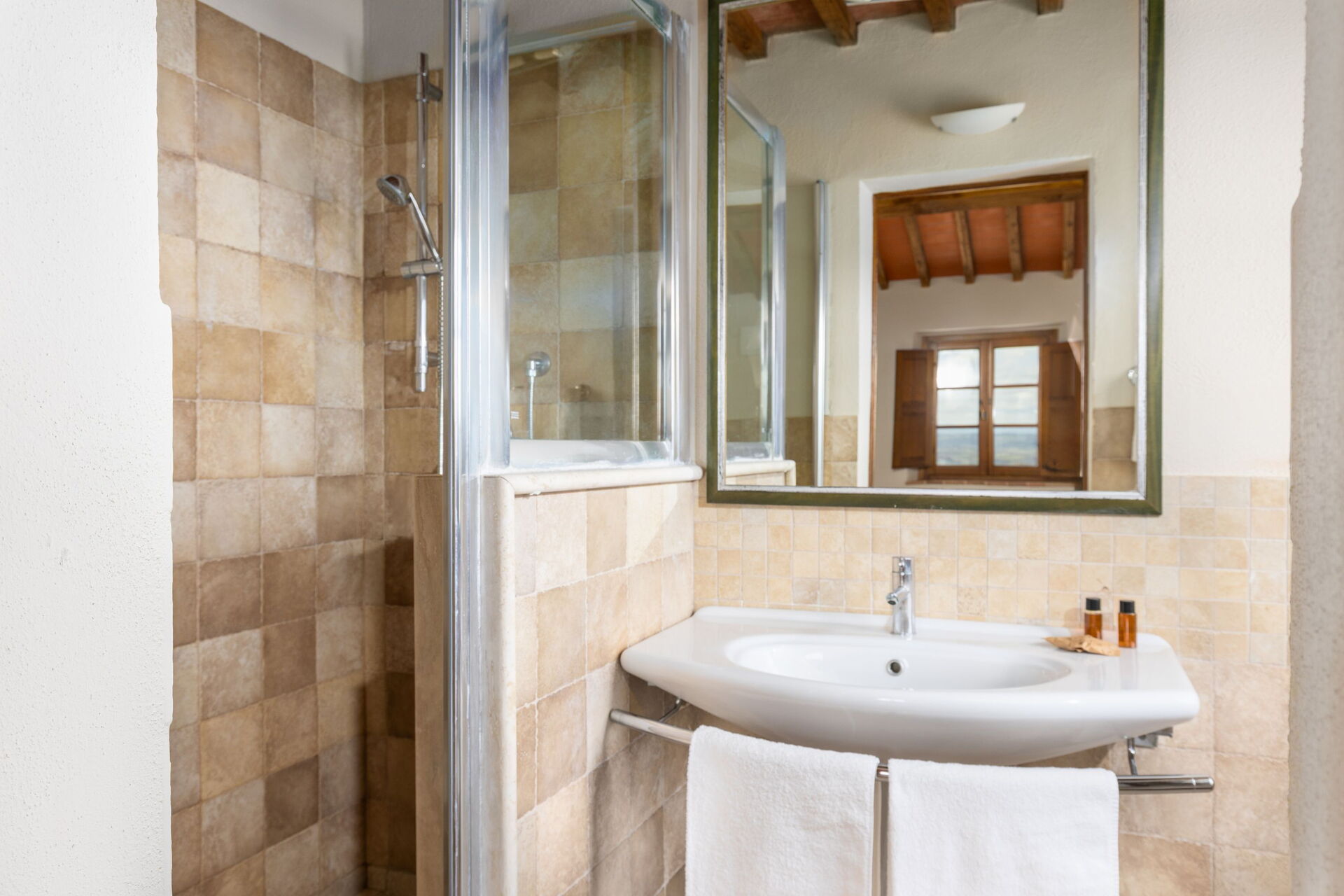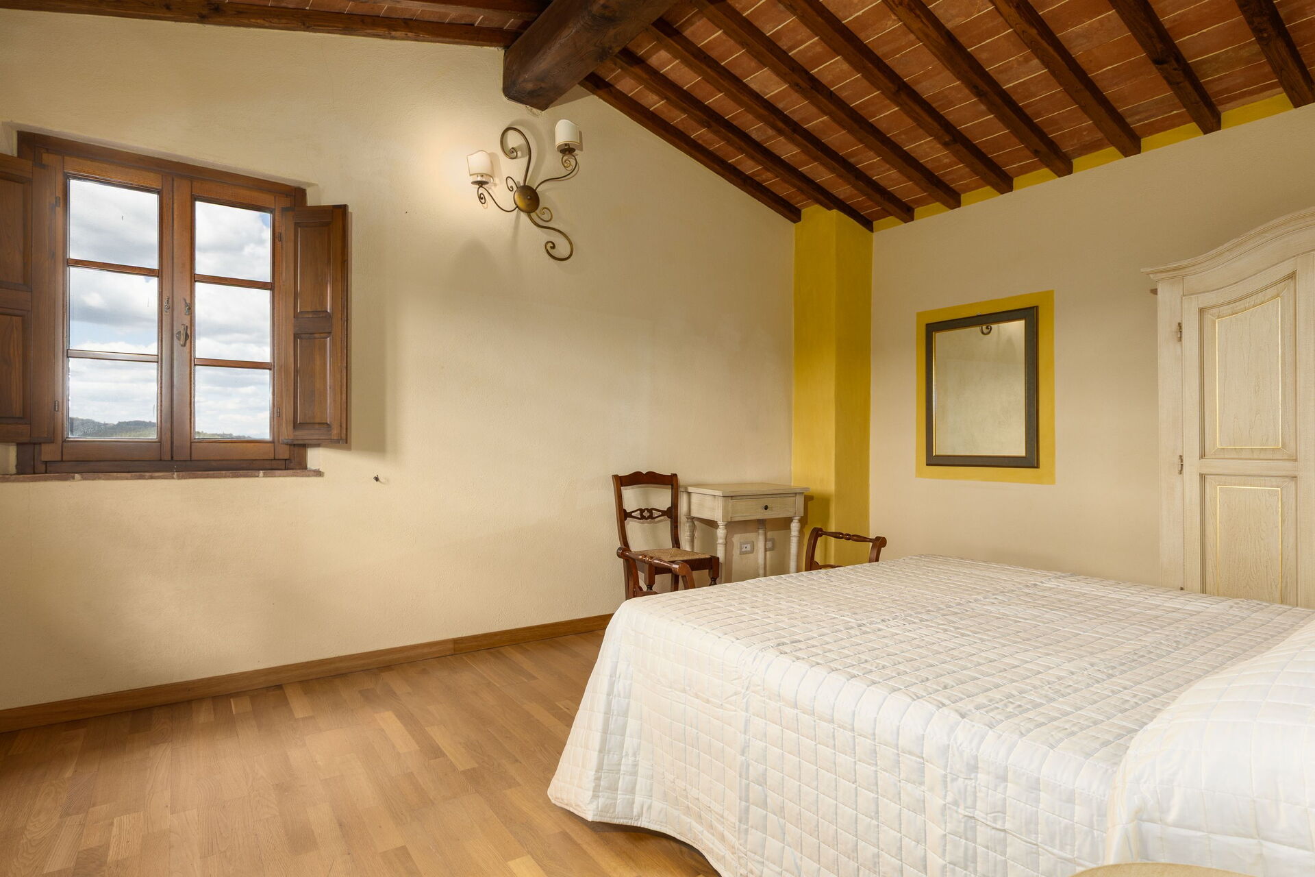 Huset ligger skjermet til på åsen i nærheten den sjarmerende middelalderbyen San Gimignano som er kjent for sine mange tårn. FRa villaen har man panoramautsikt over det omkringliggende landskapet, med olivenlunder, vingårder og bølgende åser. Eiendommen er fullstendig restaurert og har beholdt sitt opprinnelige arkitektoniske særpreg men er også utstyrt med alle moderne bekvemmeligheter.
