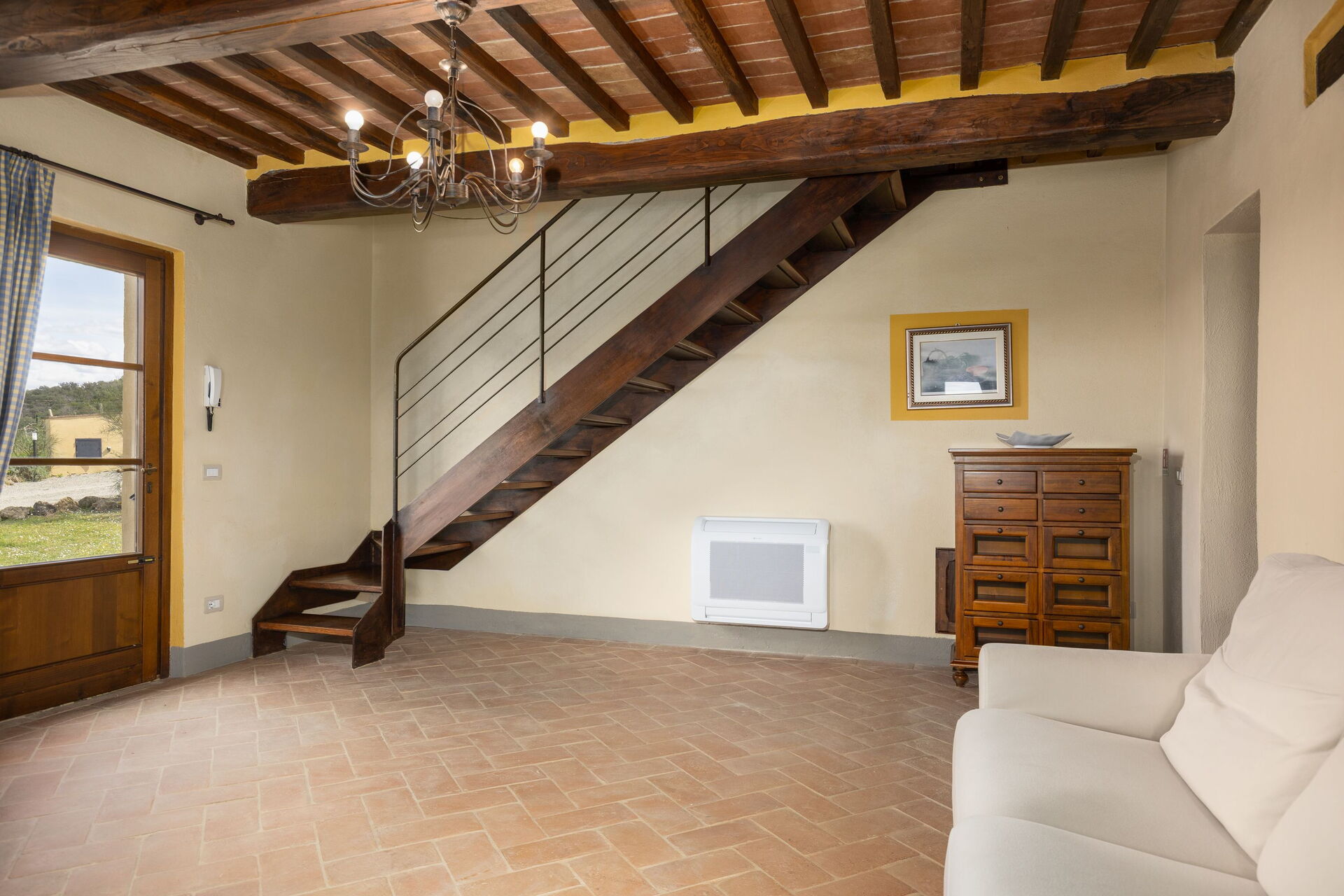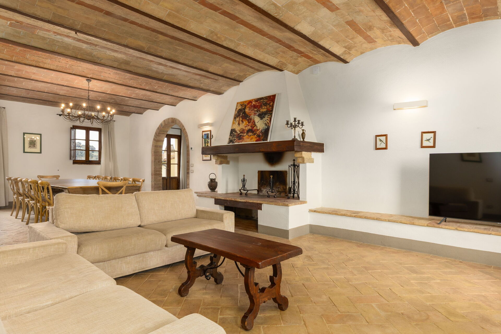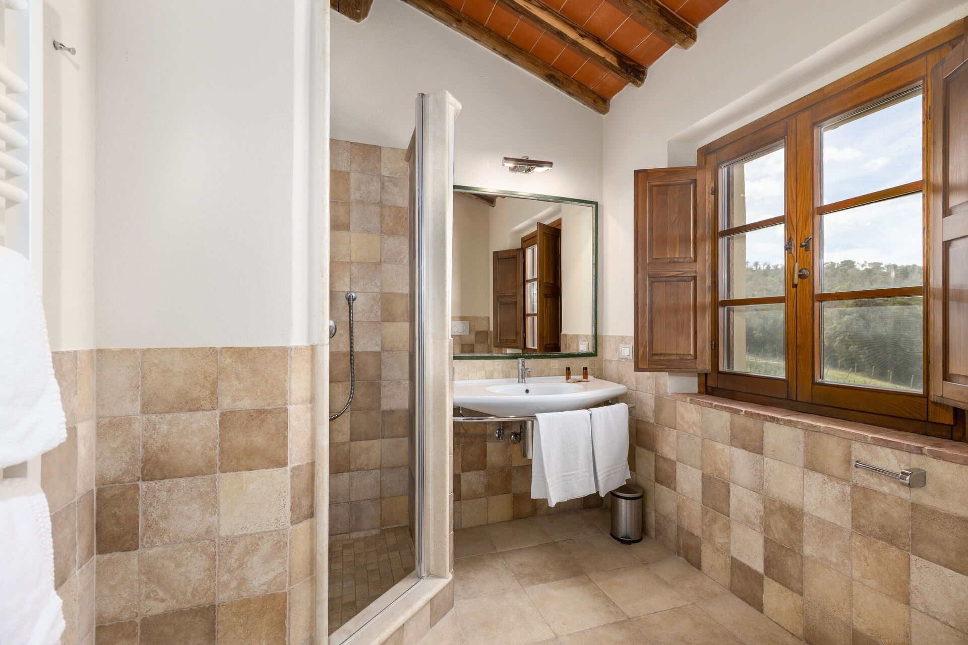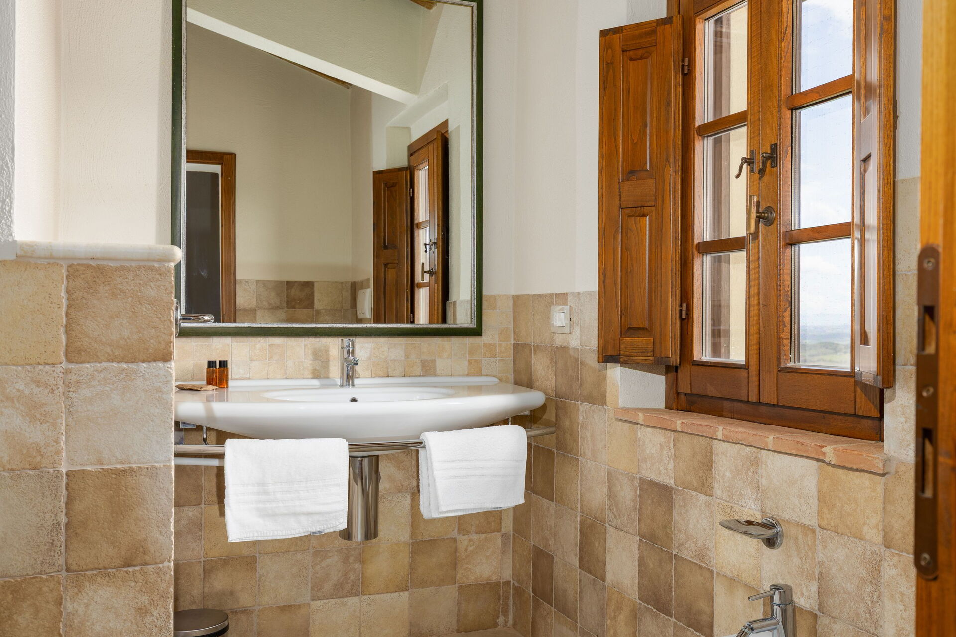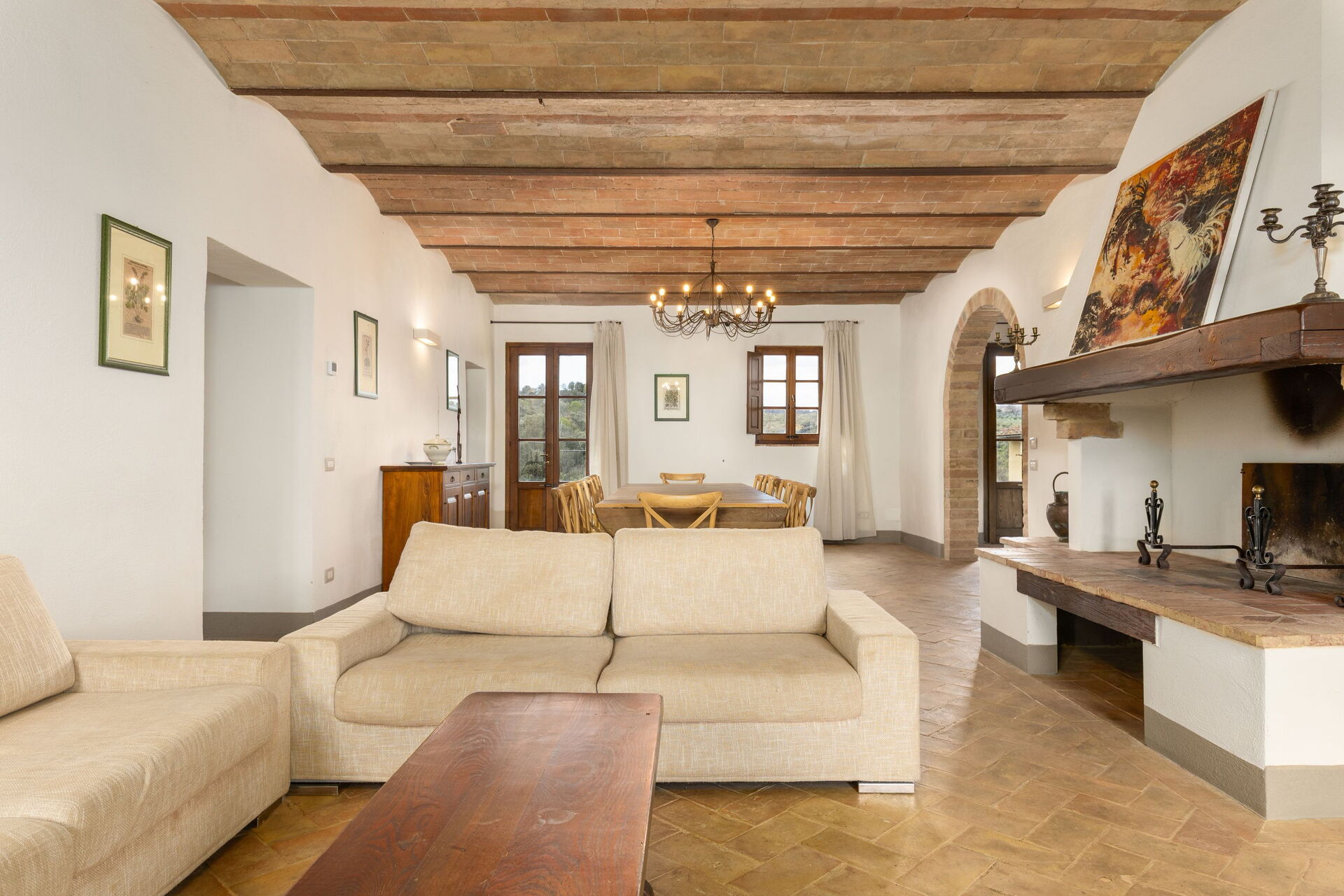 Huset ligger skjermet til på åsen i nærheten den sjarmerende middelalderbyen San Gimignano som er kjent for sine mange tårn. FRa villaen har man panoramautsikt over det omkringliggende landskapet, med olivenlunder, vingårder og bølgende åser. Eiendommen er fullstendig restaurert og har beholdt sitt opprinnelige arkitektoniske særpreg men er også utstyrt med alle moderne bekvemmeligheter.